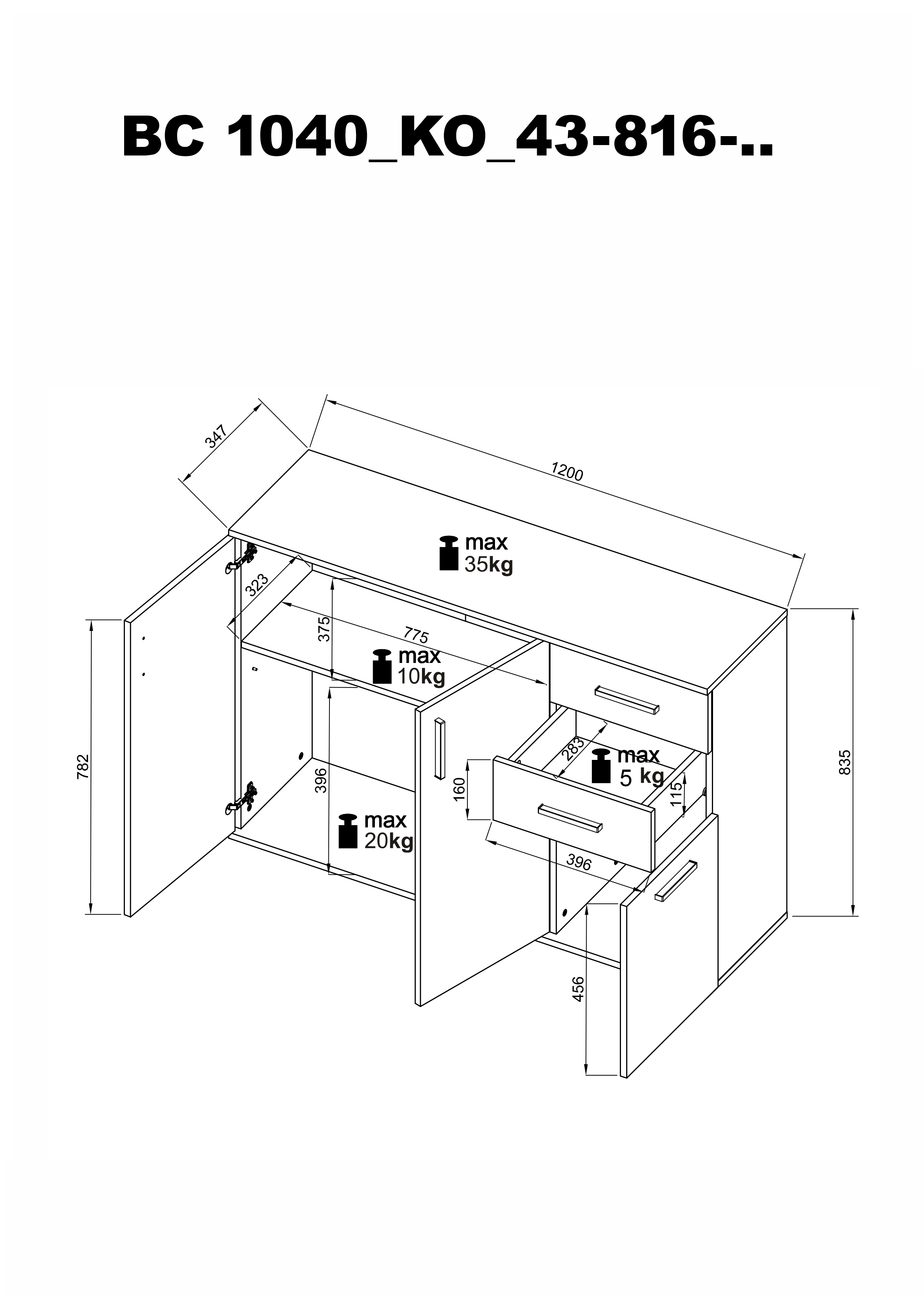| Dimensions : | L/H/P env. 120/84/35 cm | ||