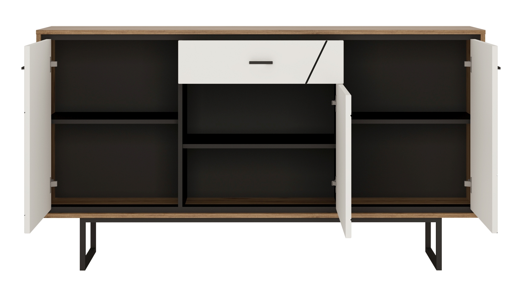 Façade : MDF PVC ton blanc brillant / MDF masse ton noir