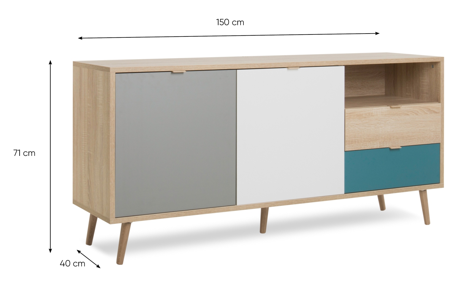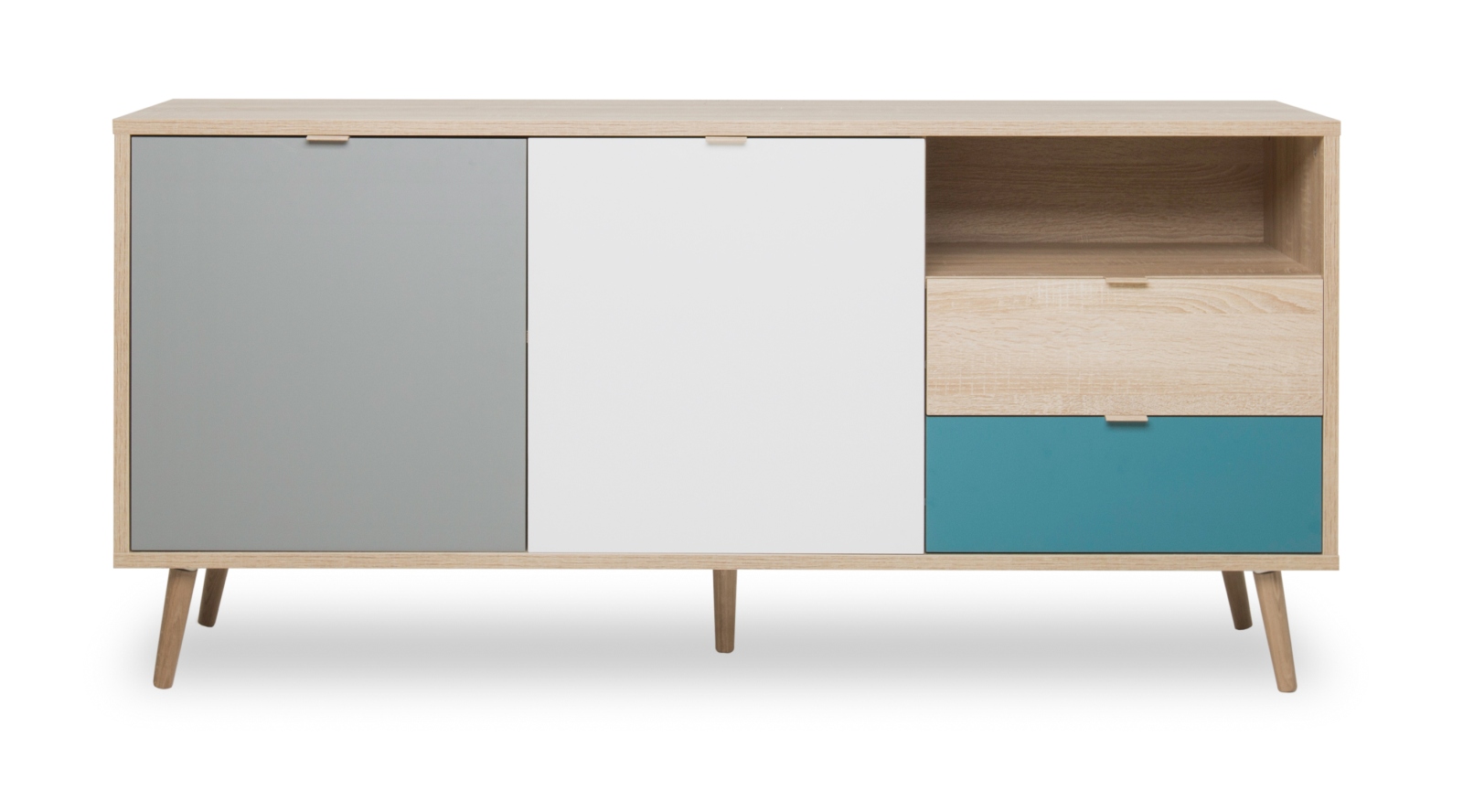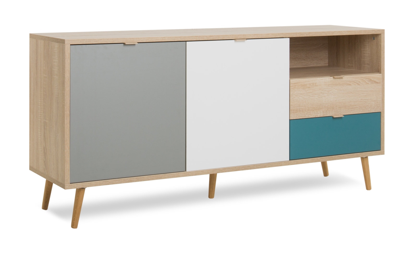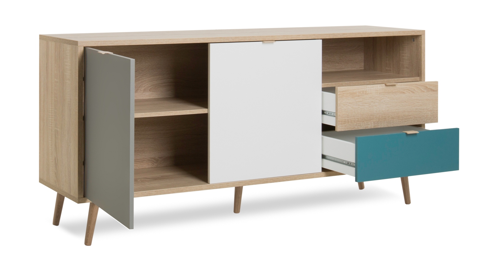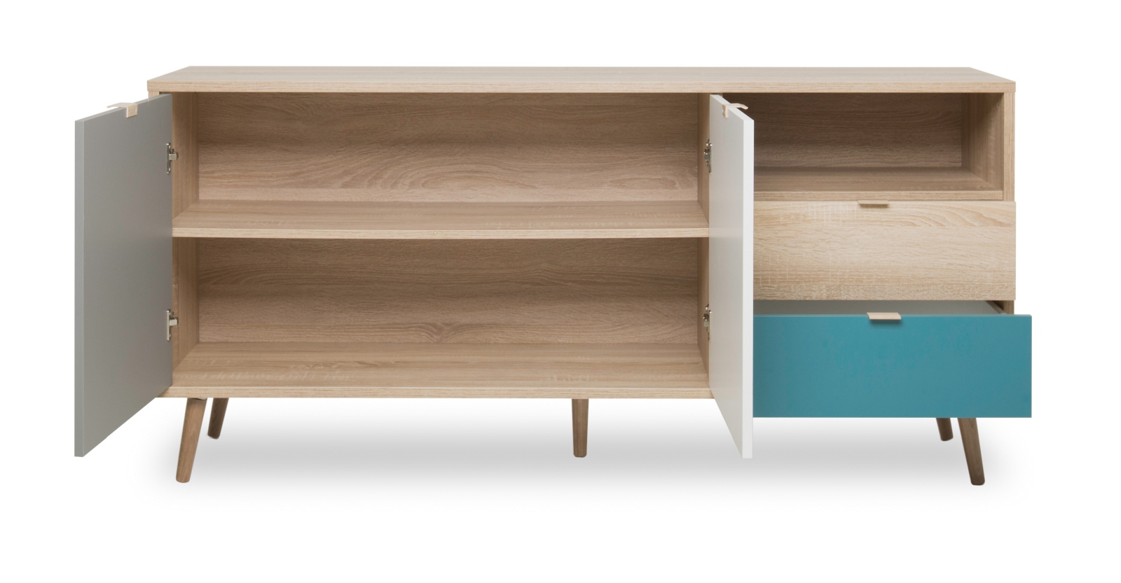 Façade : imitation chêne Sonoma / blanc / bleu pétrole / gris