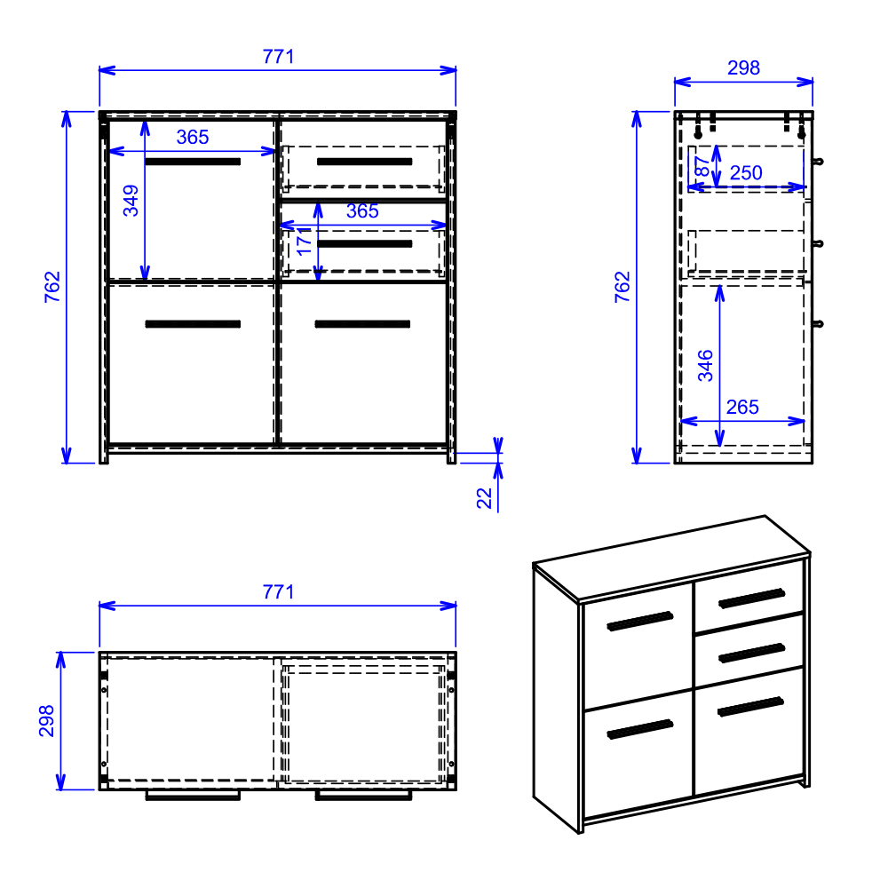 | Équipement Commodes Phono Bureau Étagère: | Portes, Tiroirs | ||