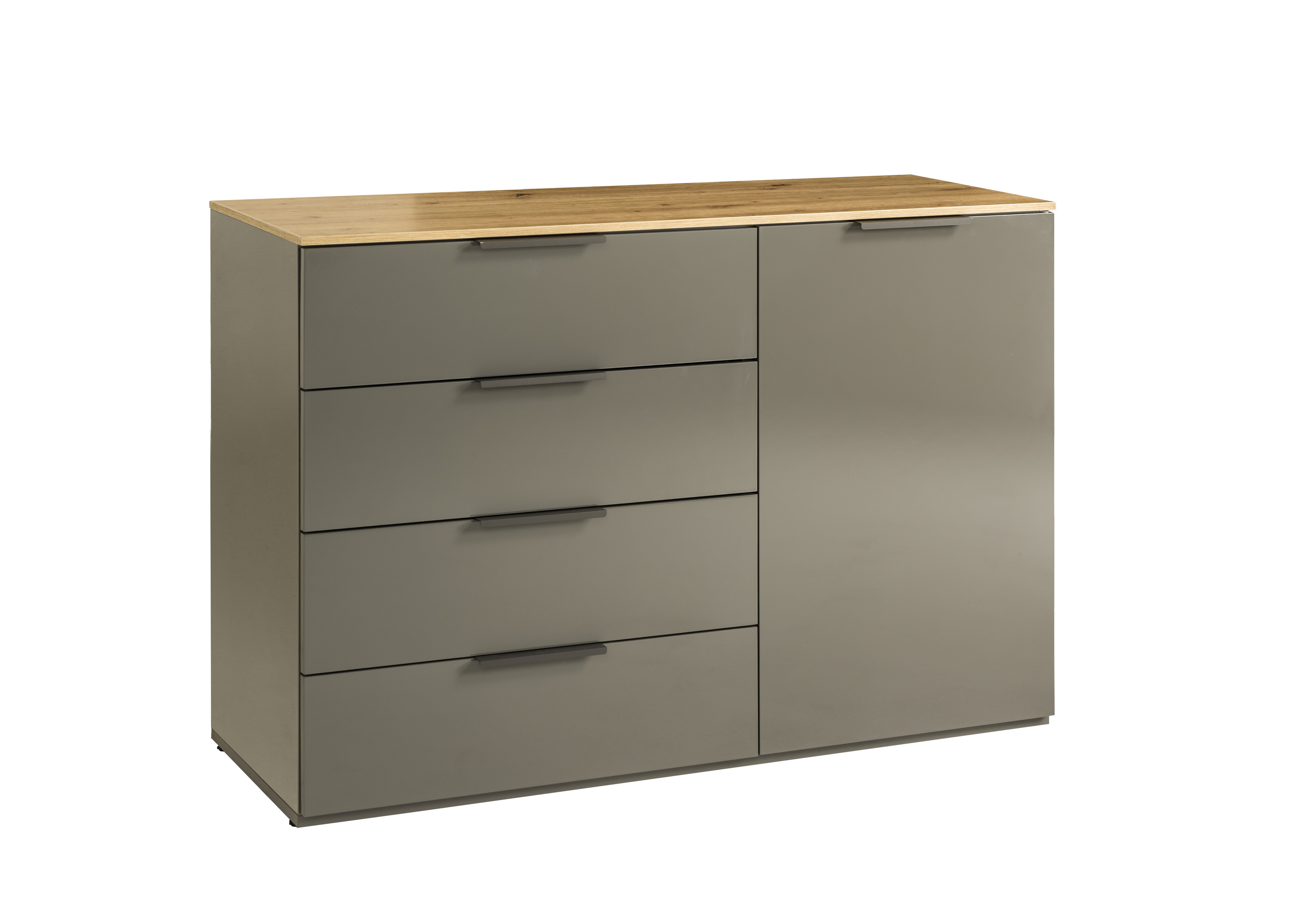 Caisson et façade : décor chêne Artisan et ton gris titane ultra brillant