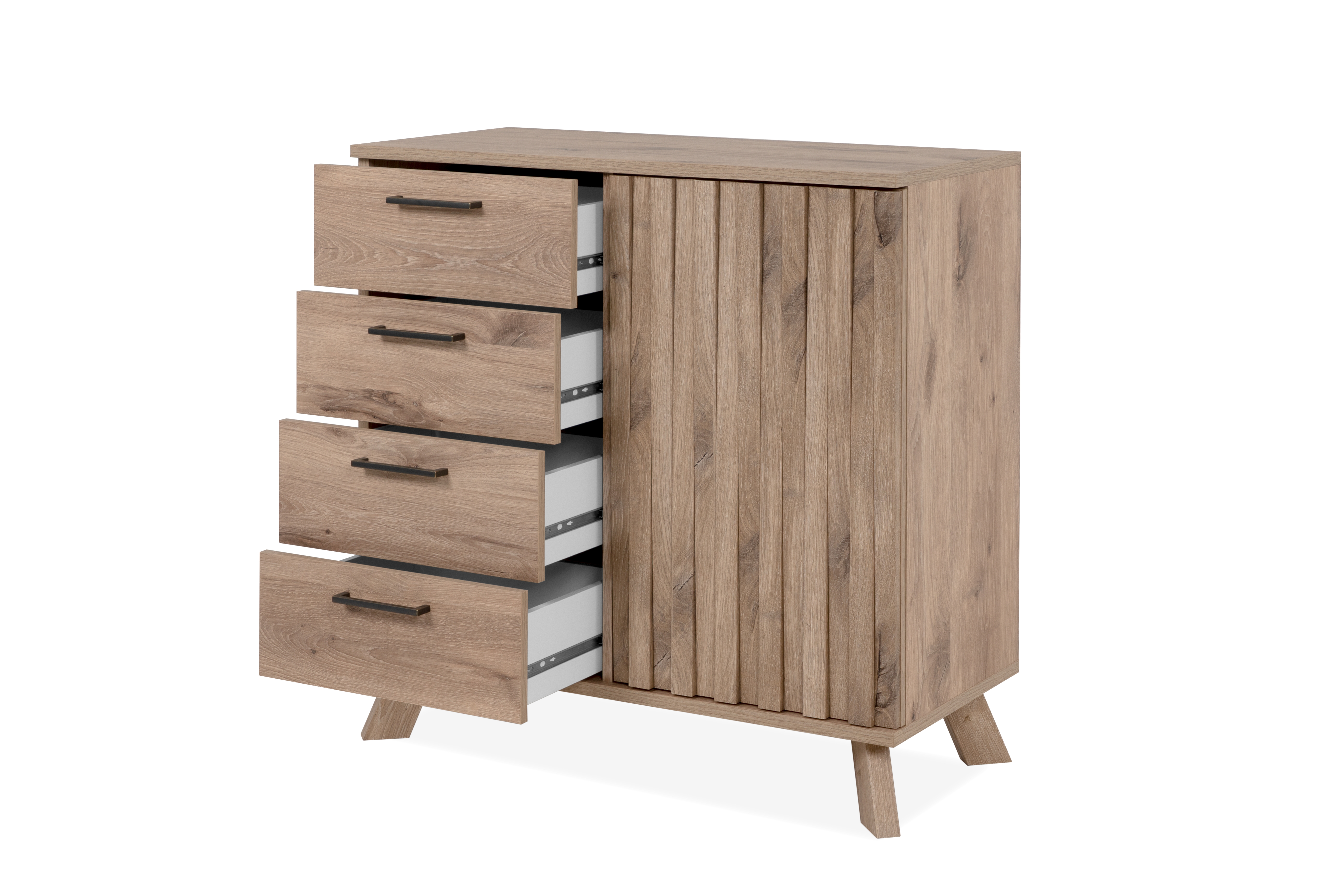 À gauche : 4 tiroirs avec façades lisses