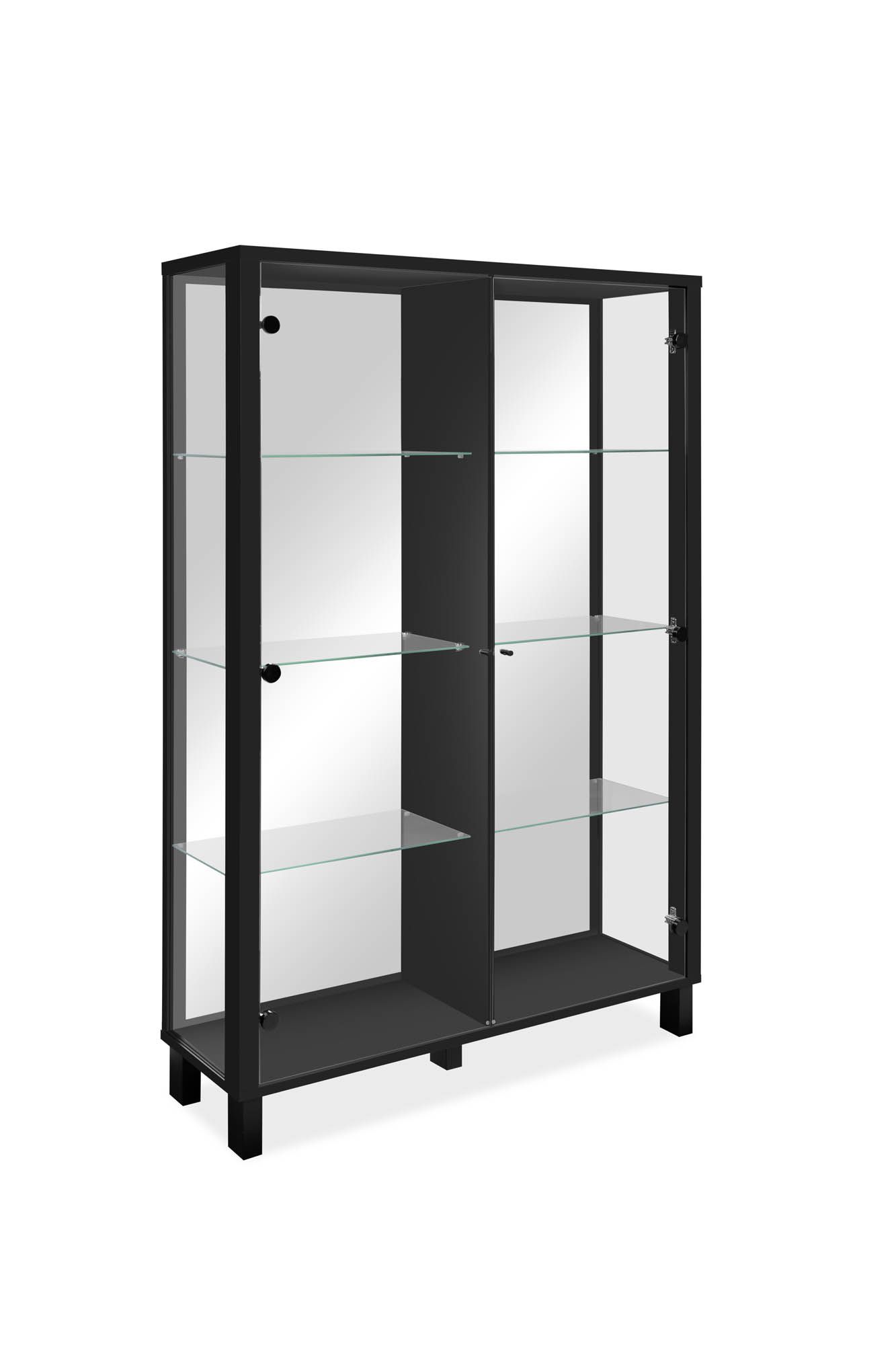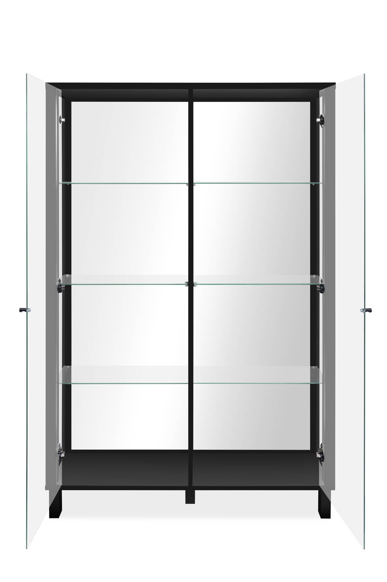 Ton noir avec fond miroir ; parois latérales et portes en verre