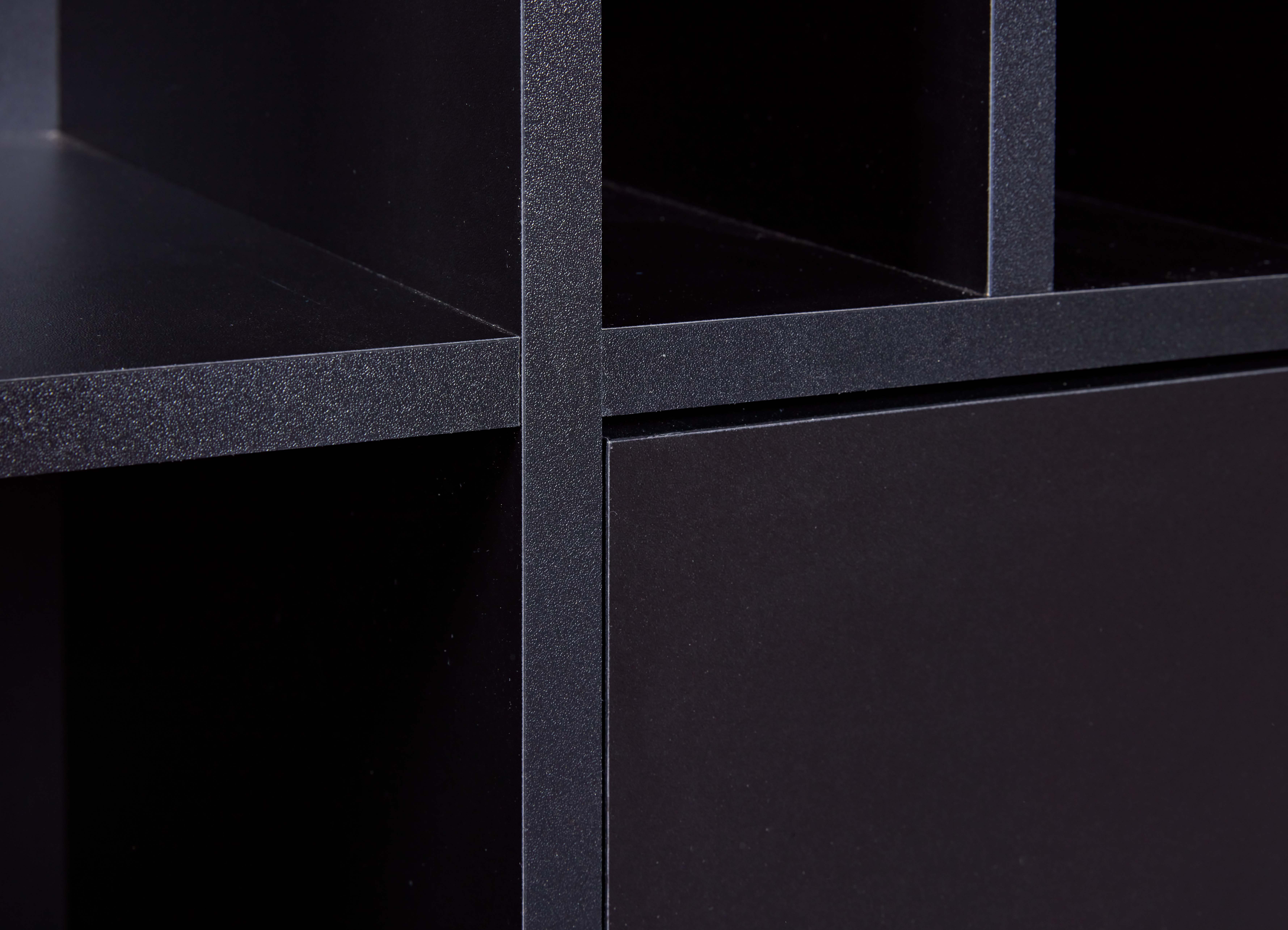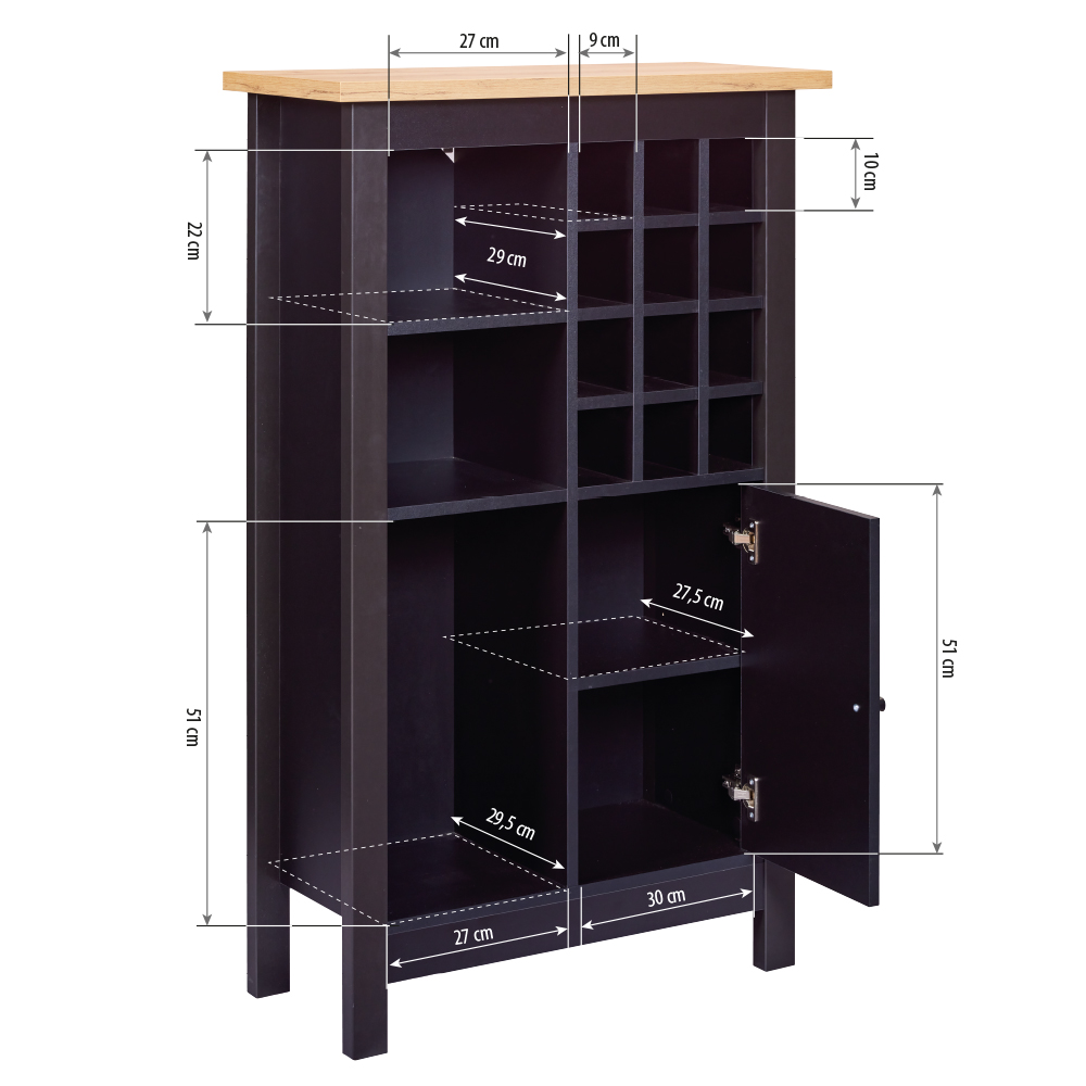 Avec ses dimensions généreuses (76,8 x 33 x 124,4 cm), ce meuble offre un vaste espace pour accueillir votre collection de vins. Son agencement intérieur astucieux comprend 3 grands compartiments ainsi que 12 petits casiers spécialement conçus pour les bouteilles, vous permettant de conserver vos vins toujours à portée de main. Une porte vient compléter l’ensemble et apporte une touche d’élégance au design. Sa finition raffinée dans un ton noir confère au bahut une esthétique séduisante qui s’intègre harmonieusement dans différents styles d’intérieurs.