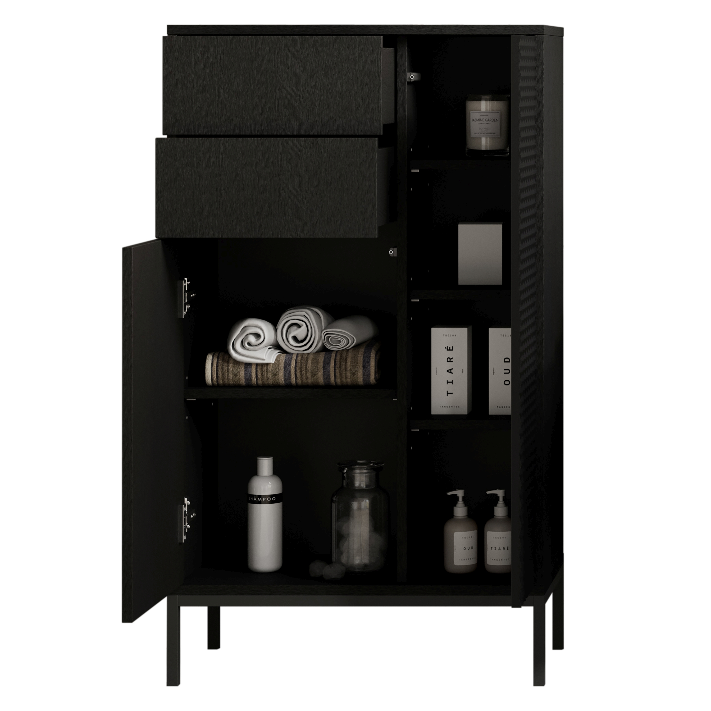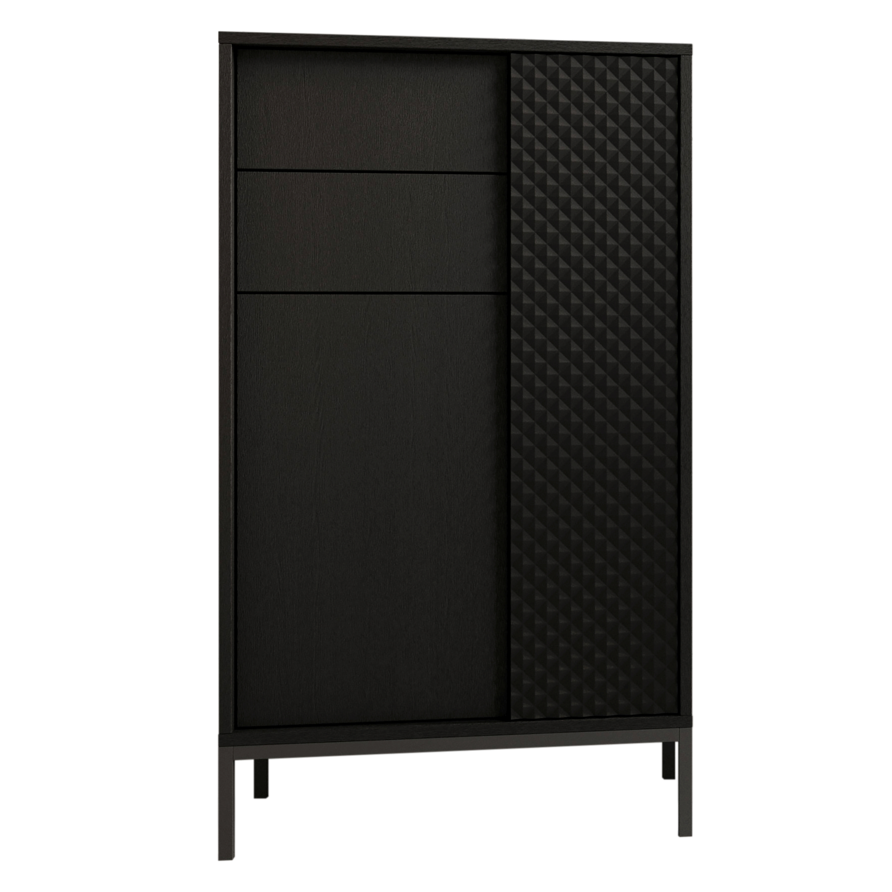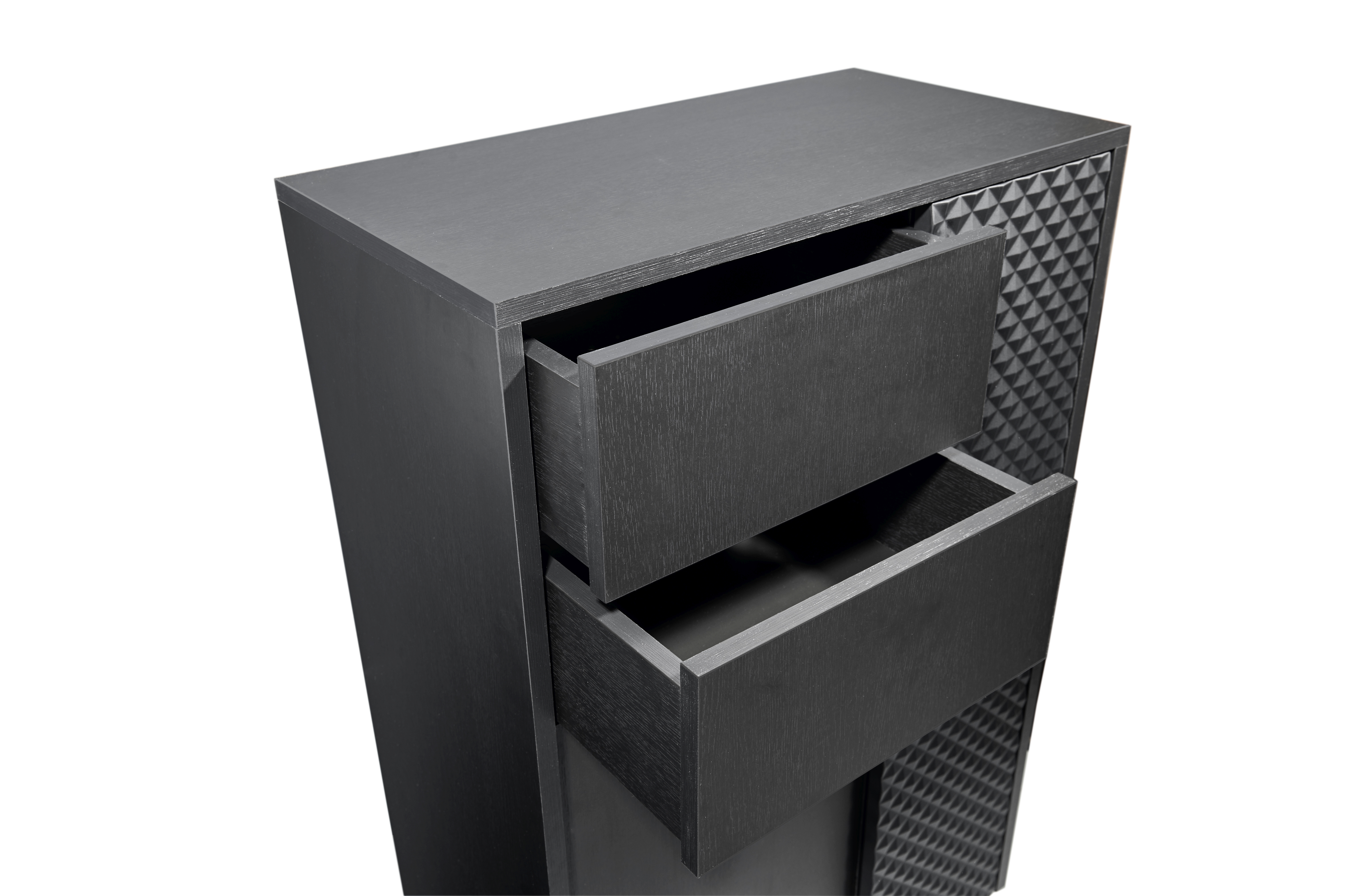 Façade : MDF (panneaux de fibres de bois de densité moyenne) thermoformé ton noir graphite, PPSM