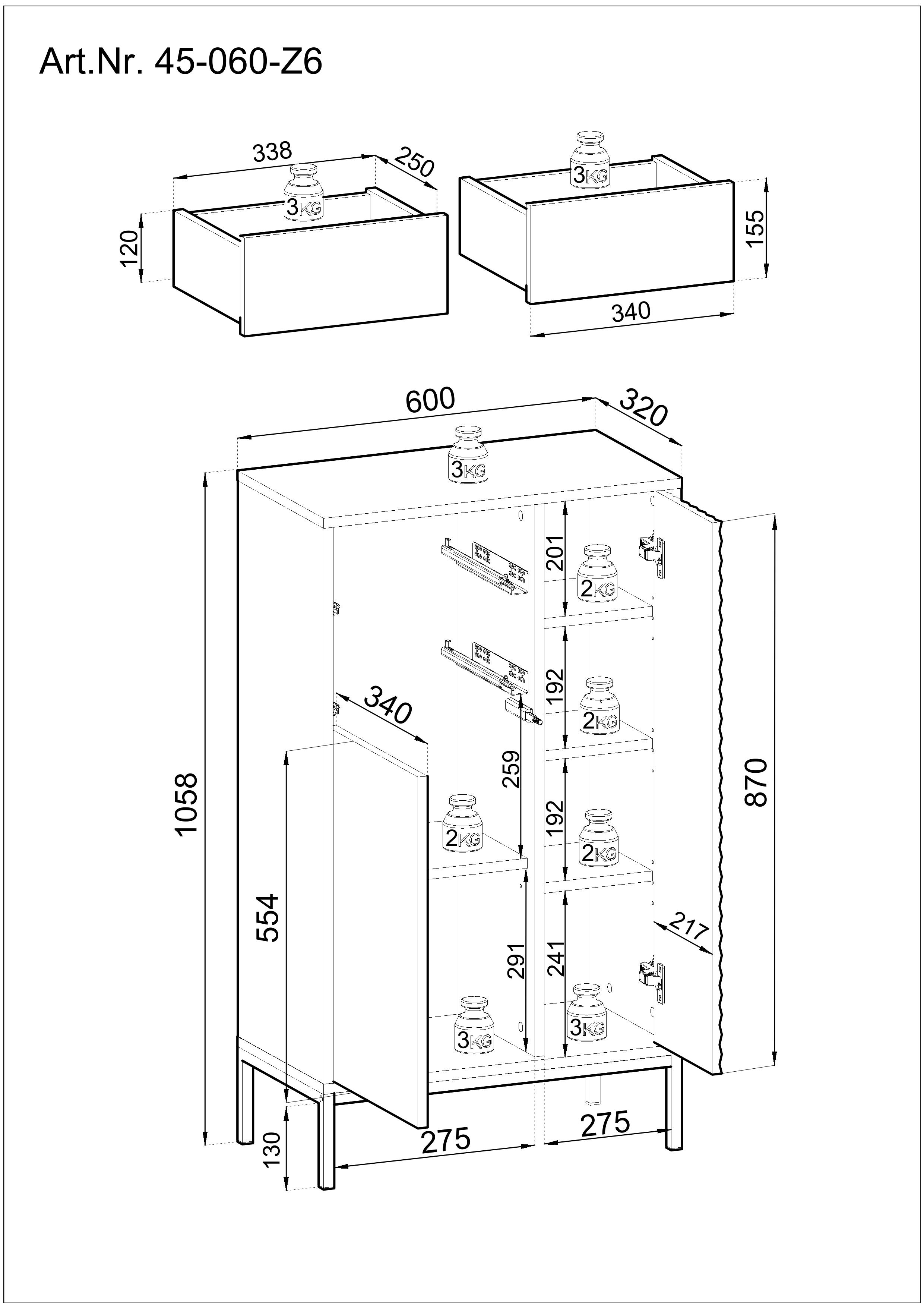 | Dimensions : | L/H/P env. 60/106/32 cm | ||