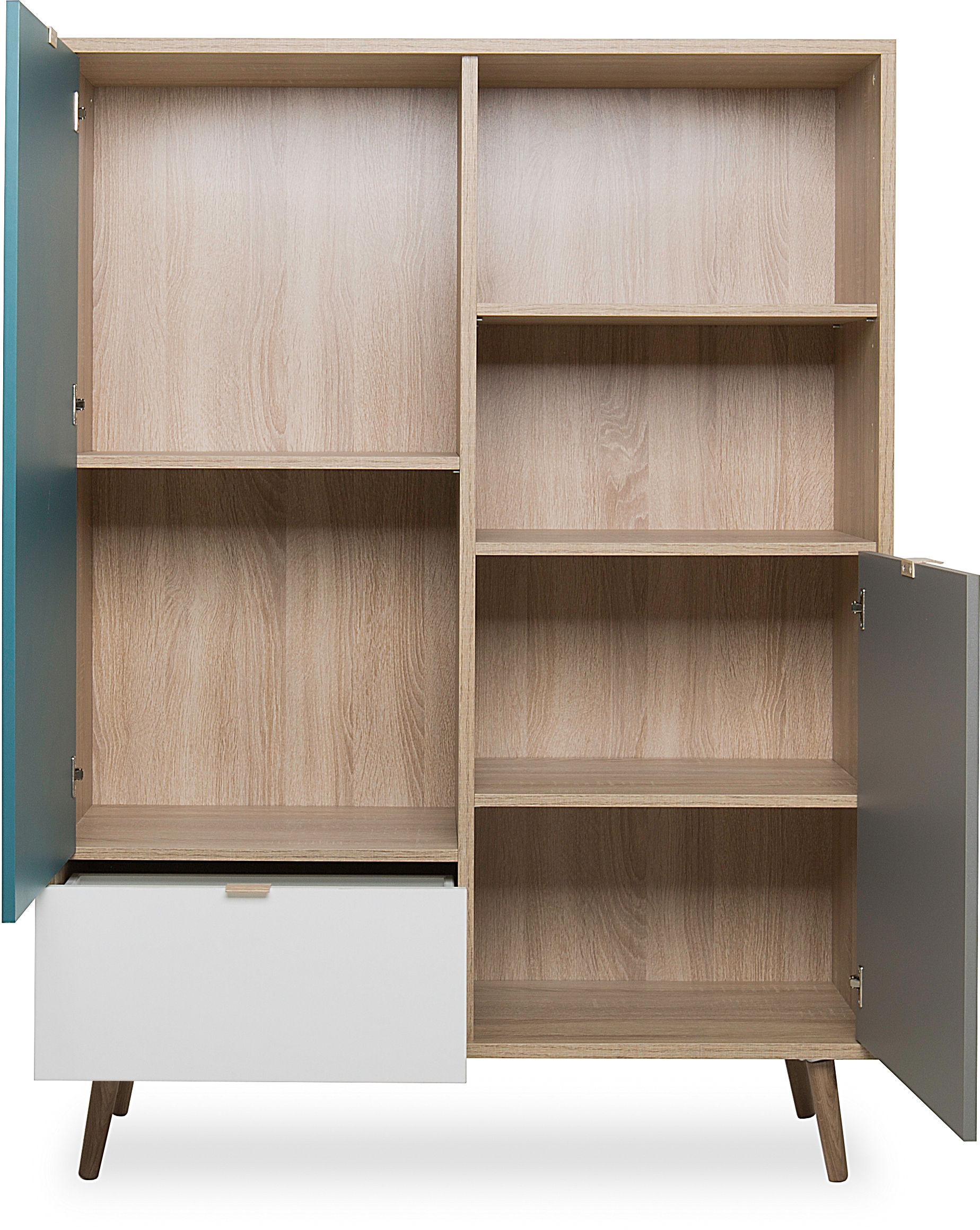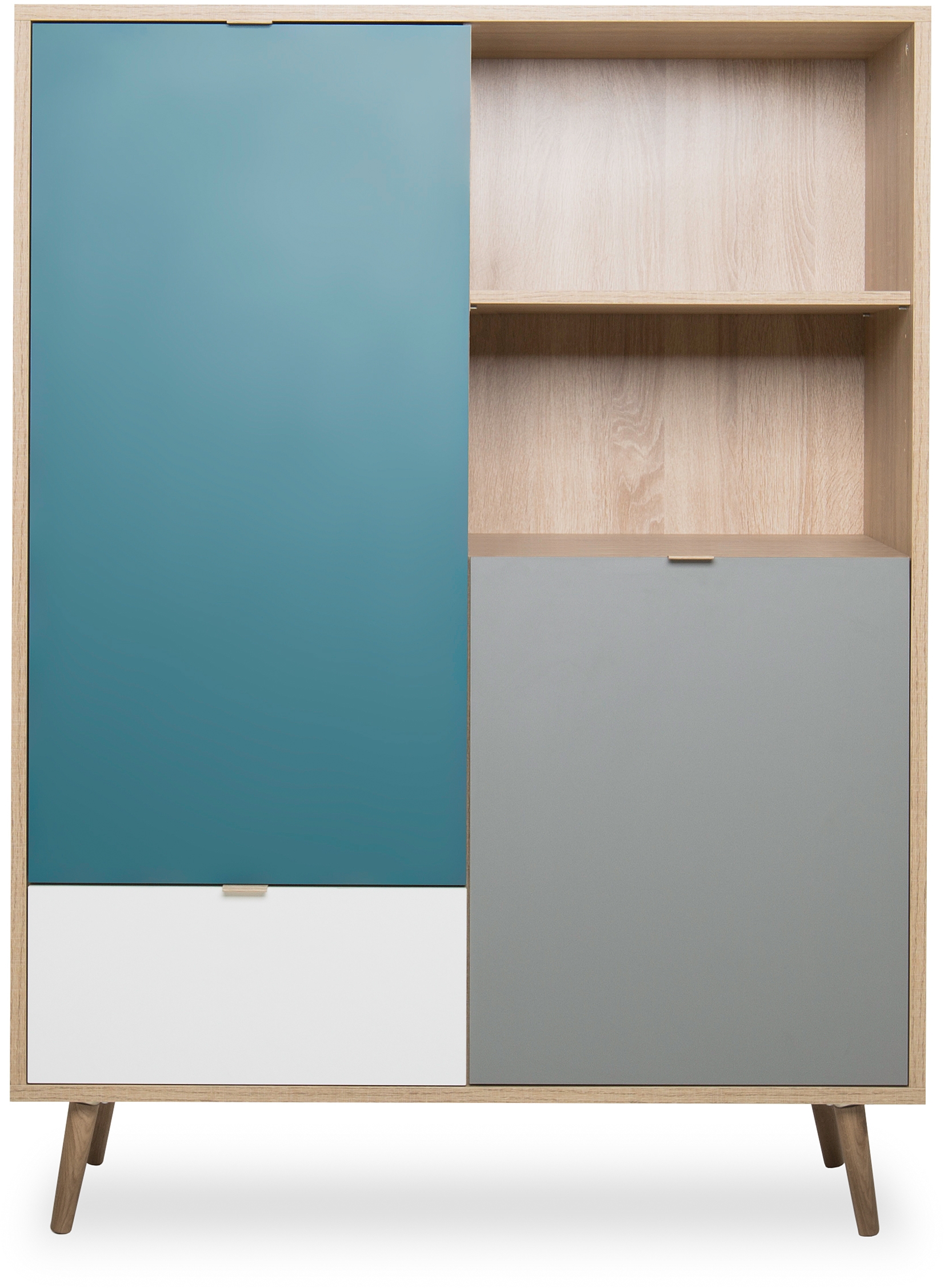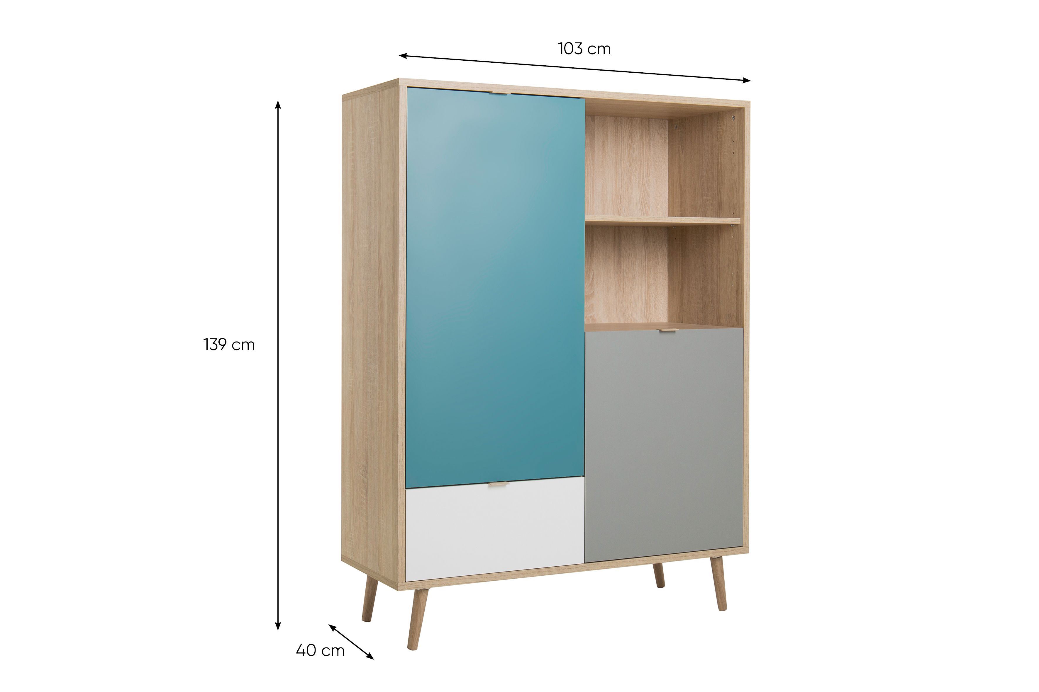 Façade : imitation chêne Sonoma / blanc / bleu pétrole / gris