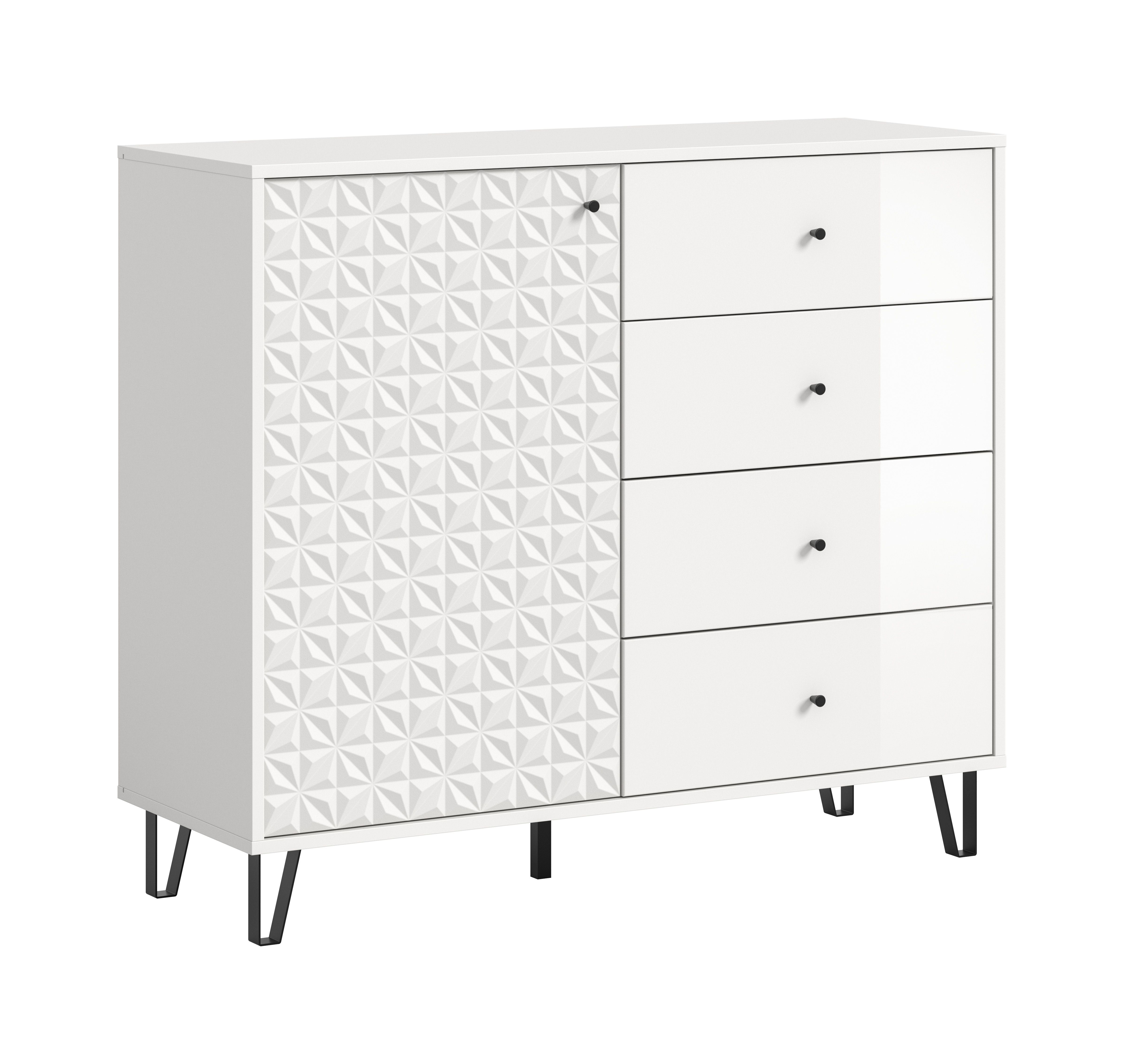 - 1 porte, 2 étagères réglables en hauteur, 3 compartiments, 4 tiroirs