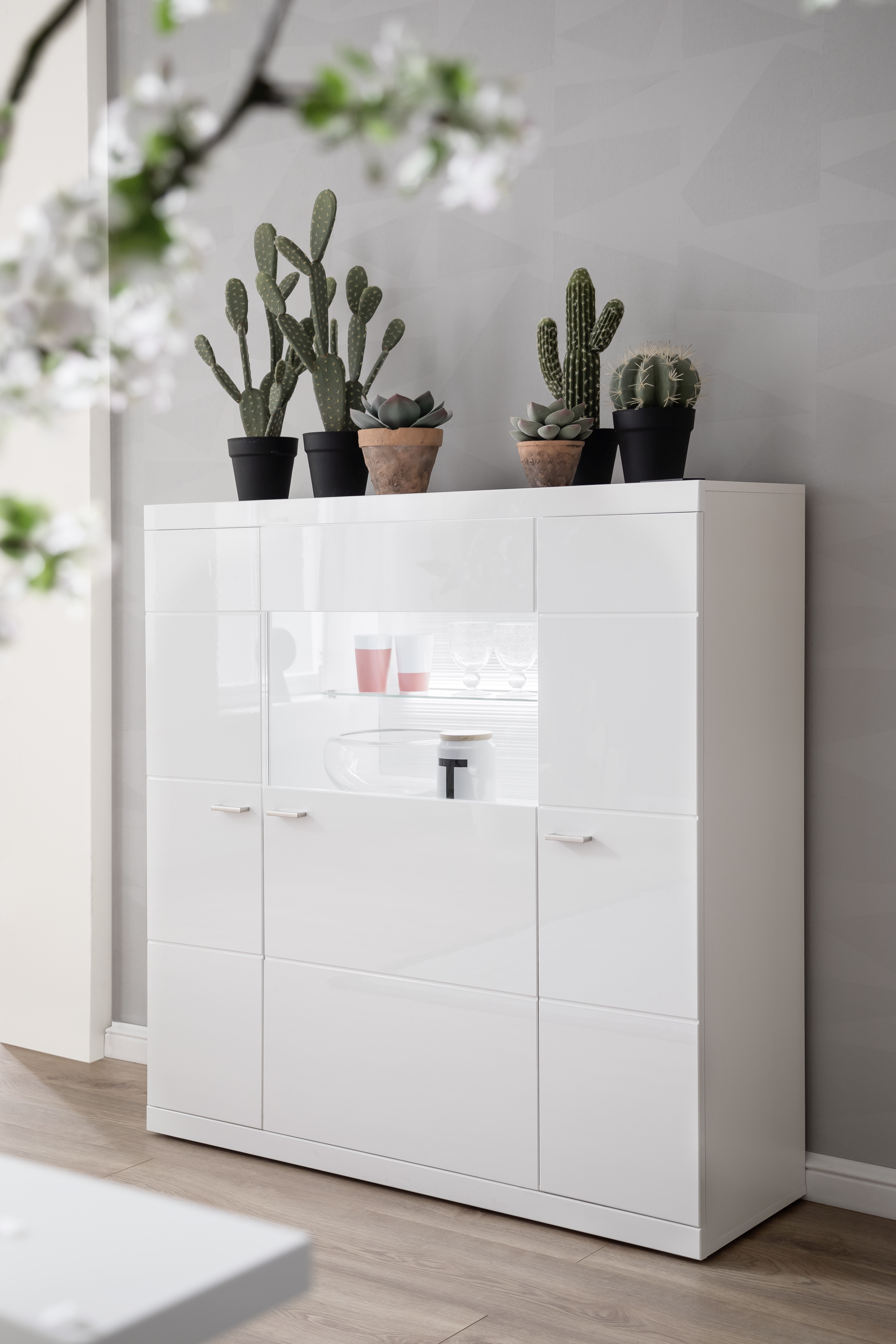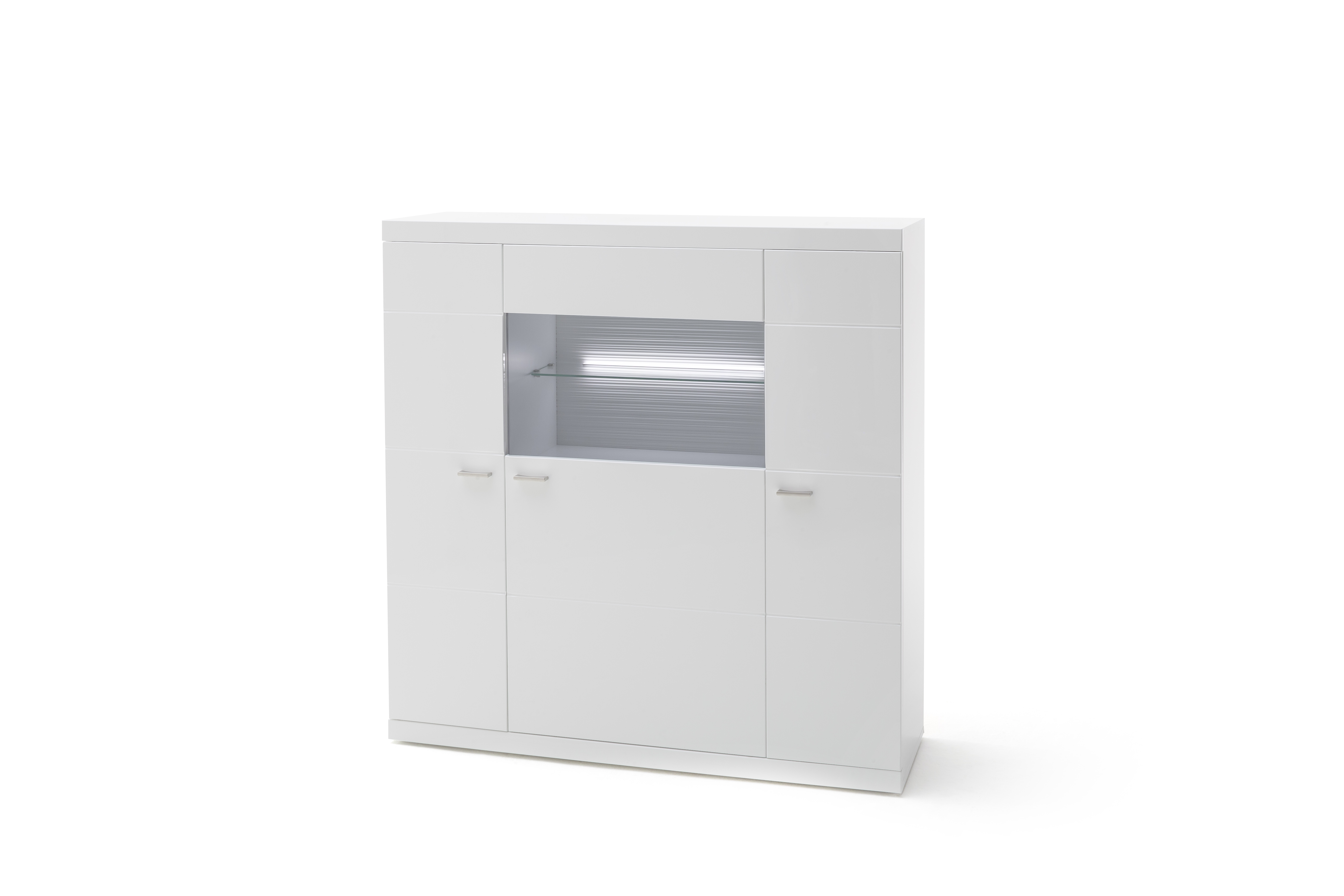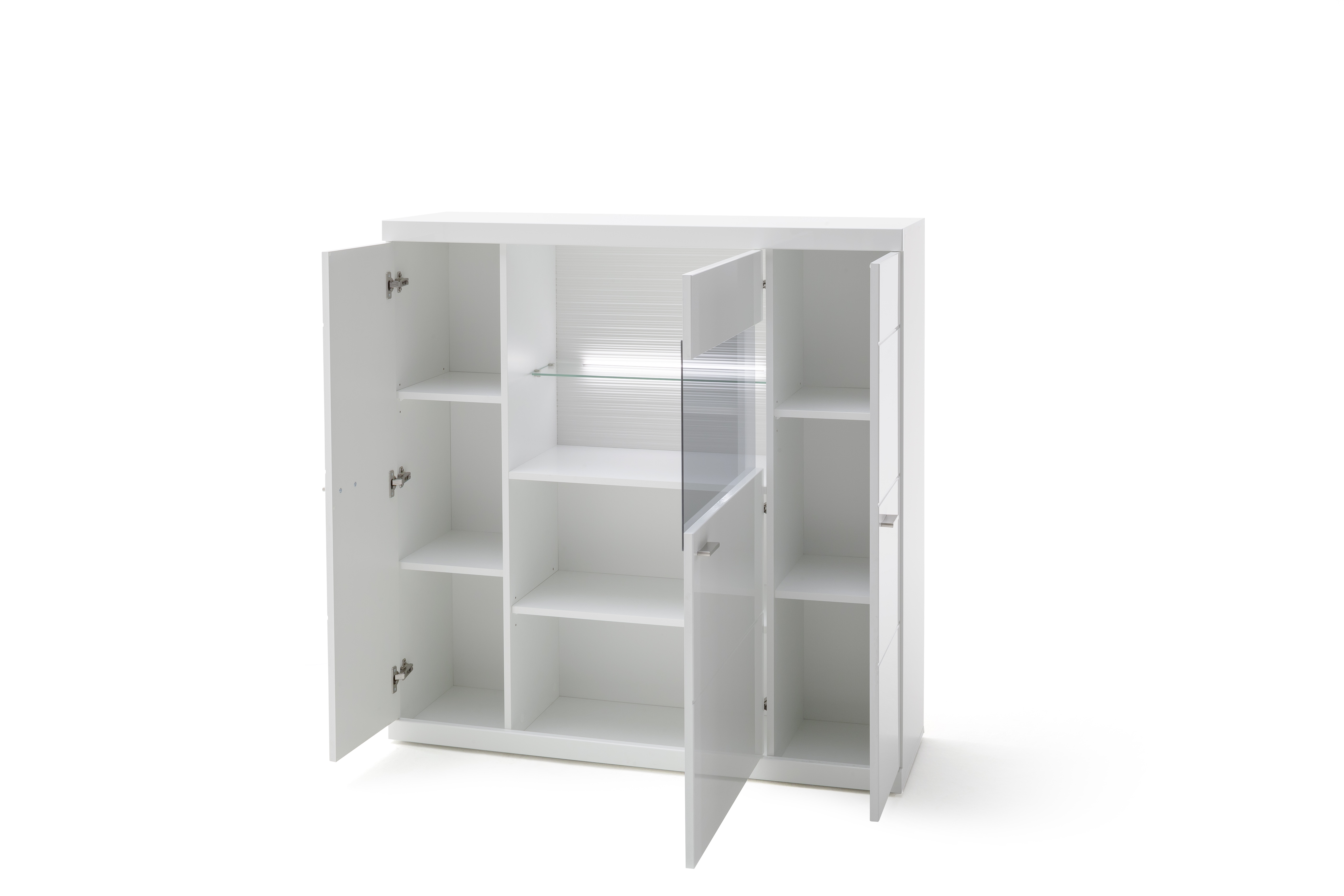 Façade : MDF (panneau de fibre de bois de densité moyenne) thermoformé ton blanc ultra brillant / intérieur : décor bois mélaminé ton blanc / verre