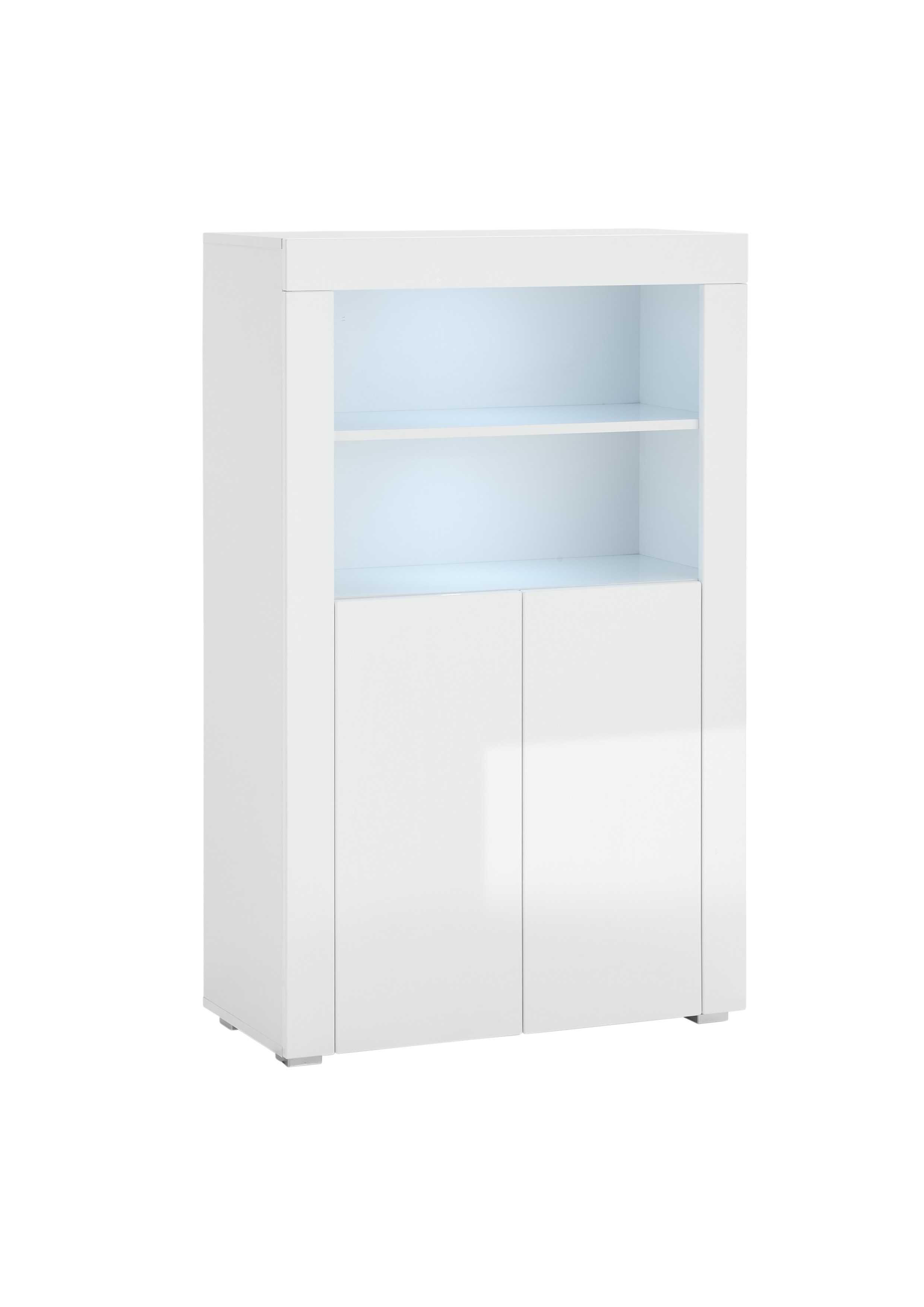 Façade : PVC ton blanc ultra brillant thermoformé / MDF (panneau de fibres de bois de densité moyenne) pelliculé