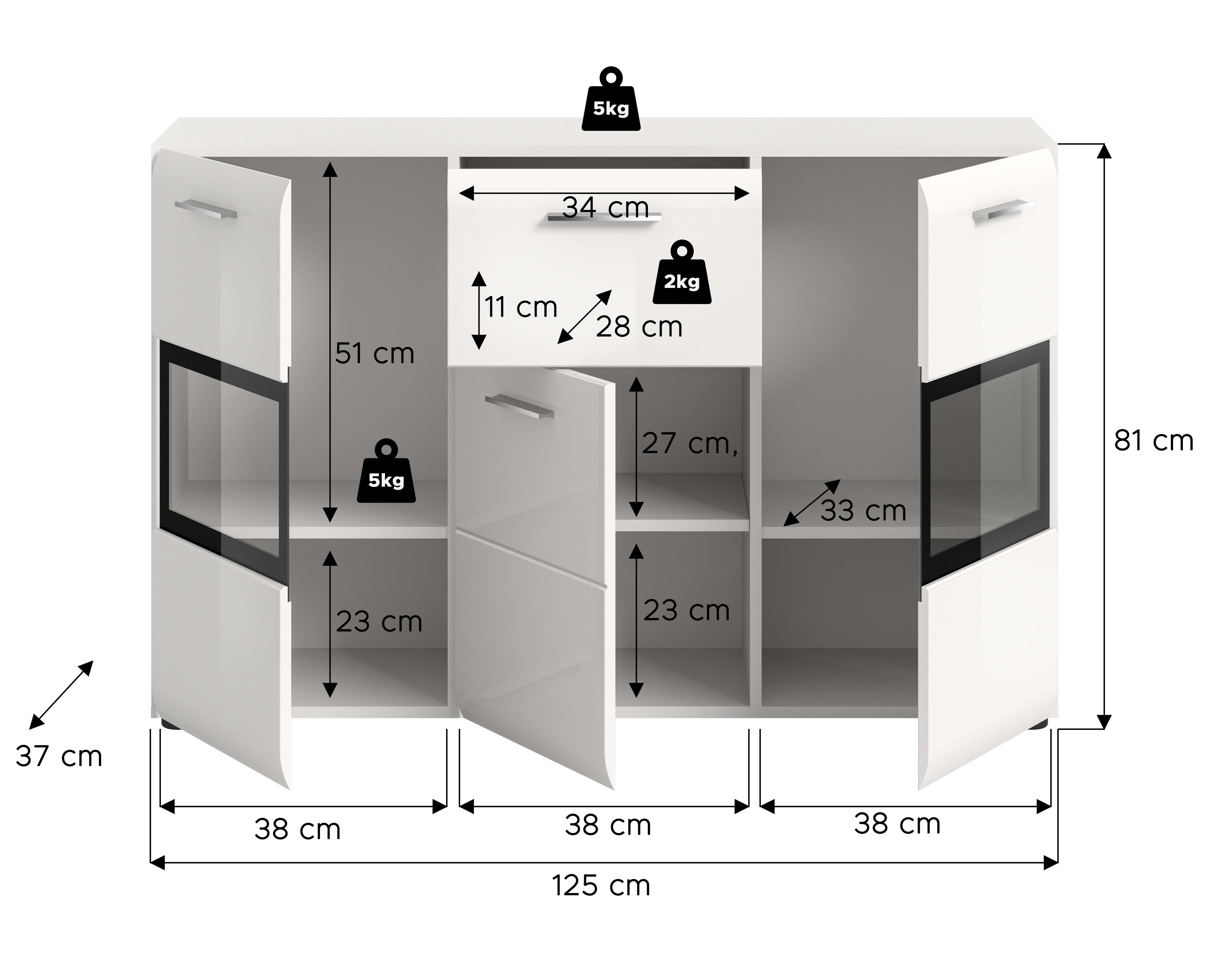 | Dimensions : | L/H/P env. 125/81/37 cm | ||