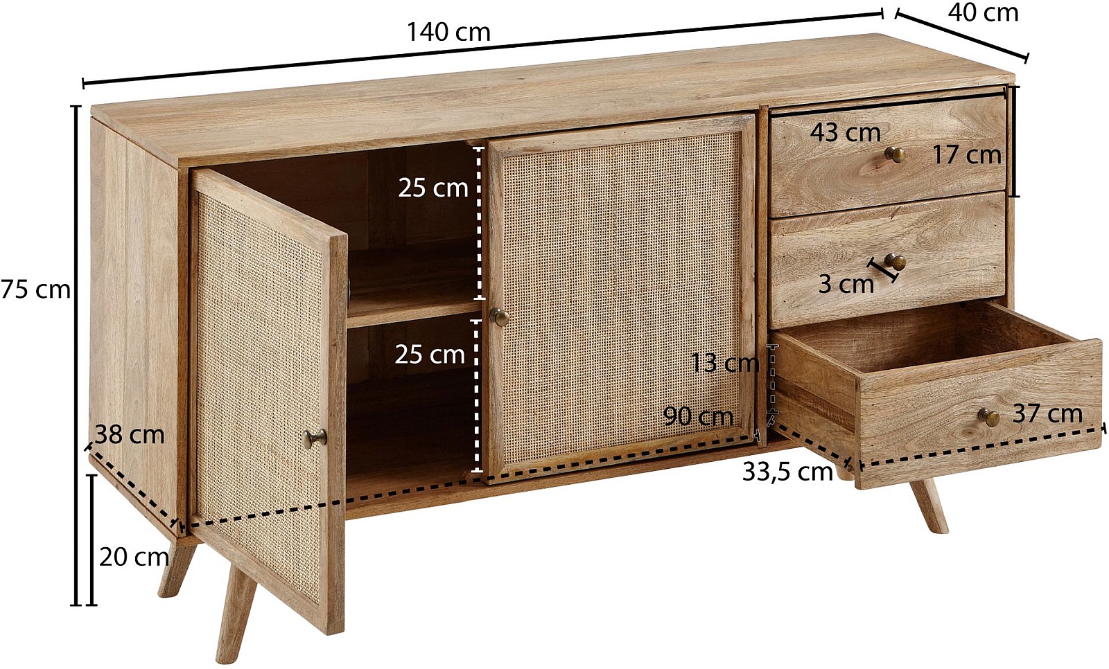 DIMENSIONS ✔ Largeur : 140 cm // Hauteur : 75 cm // Profondeur : 40 cm //Du sol au bord inférieur du meuble : 20 cm // Autres dimensions dans le descriptif ou sur le visuel d'accompagnement.