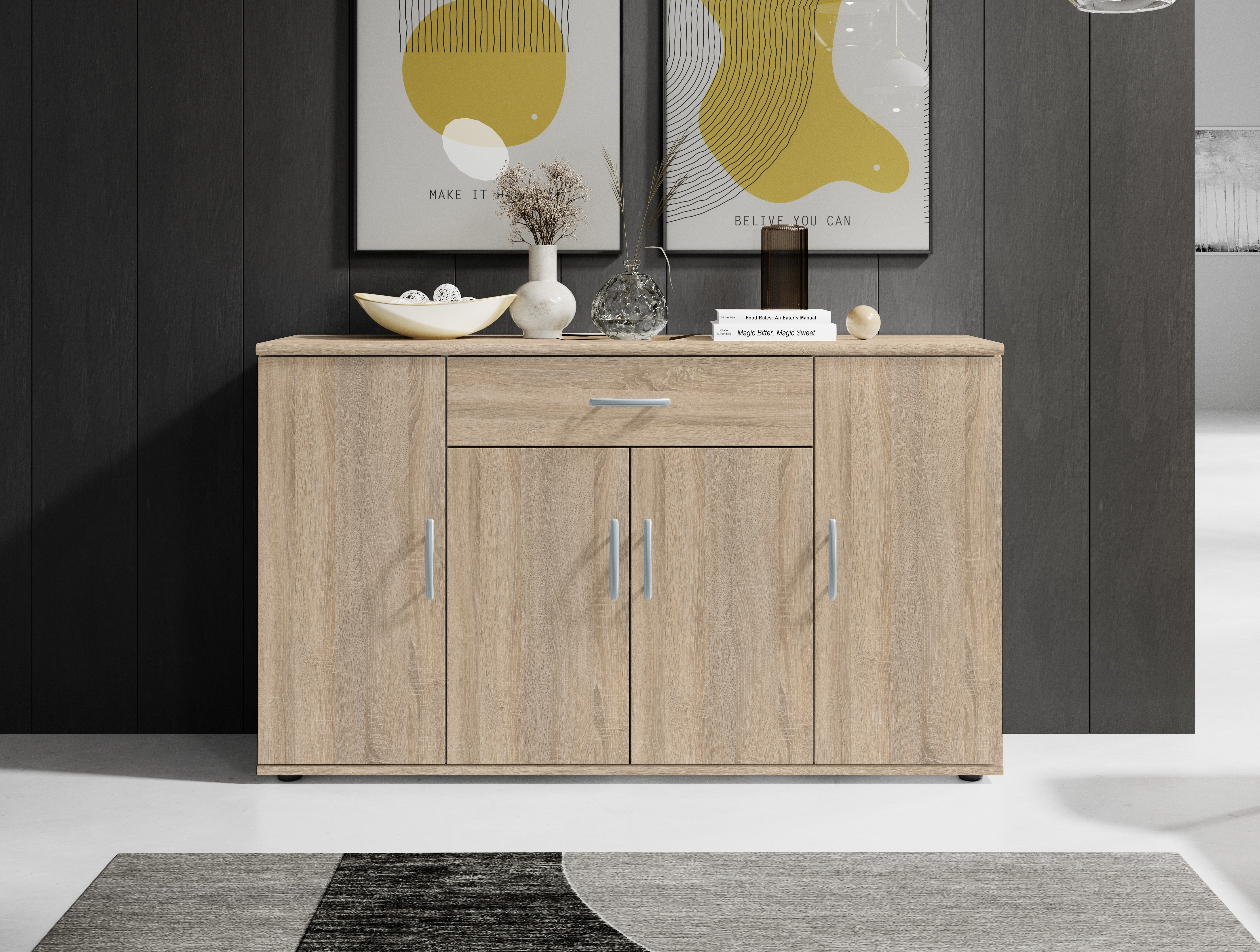 Caisson : décor chêne Sonoma, panneau de particules surfacé mélaminé (PPSM)