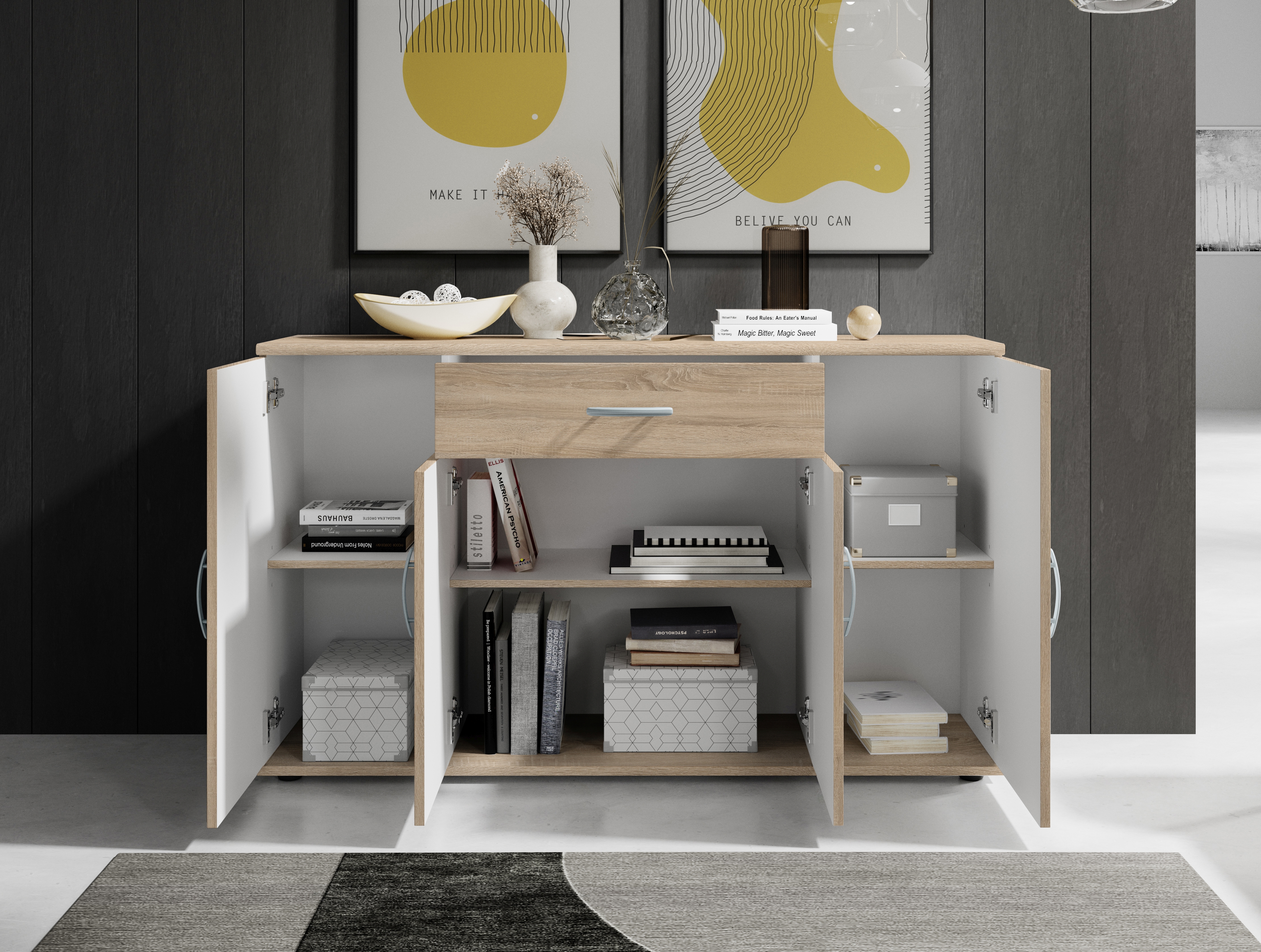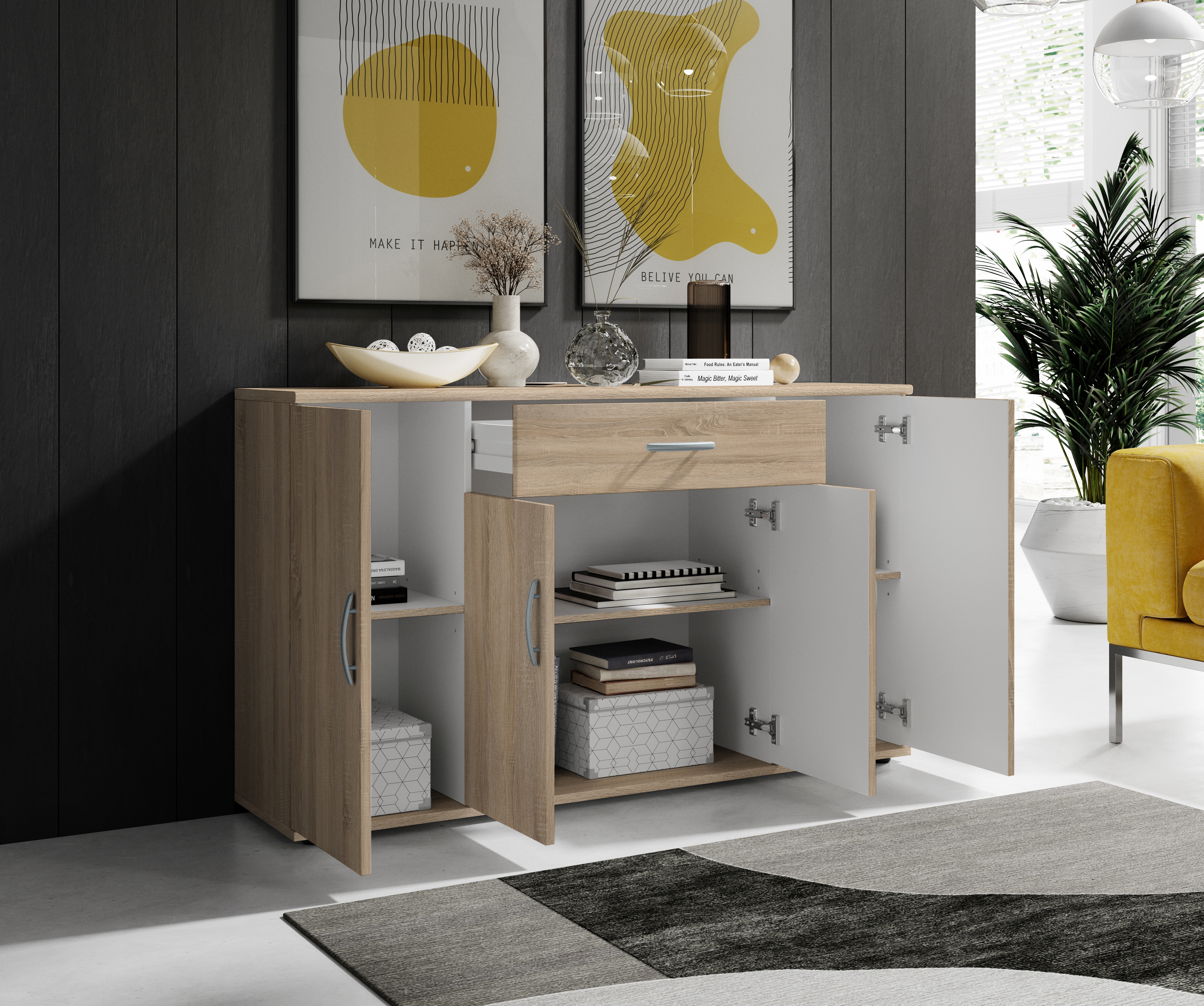 | Équipement Commodes Phono Bureau Étagère: | Portes, Tiroirs | ||