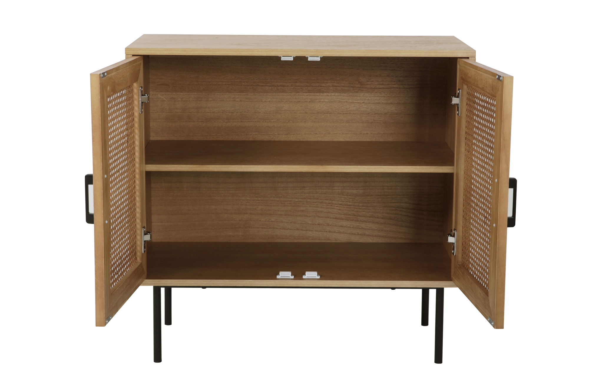 Ce bahut ton naturel avec façade en cannage fera entrer une touche chic et rétro dans votre intérieur. Derrière les deux portes, ce buffet offre un bel espace de rangement pour vos effets personnels. Le bahut est très polyvalent et peut s'utiliser dans le salon, la salle à manger, la chambre à coucher, mais aussi le couloir ou l'entrée tout en conférant à chaque pièce un charme particulier.