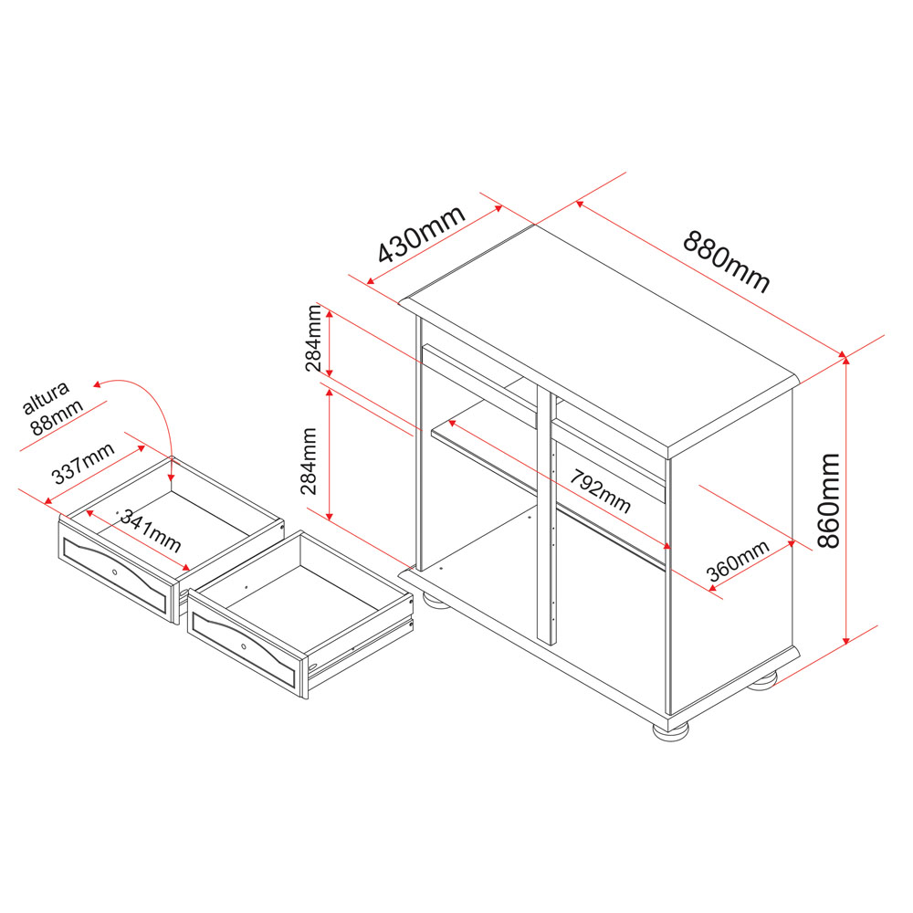 | Nombre de tiroirs: | 2 | ||