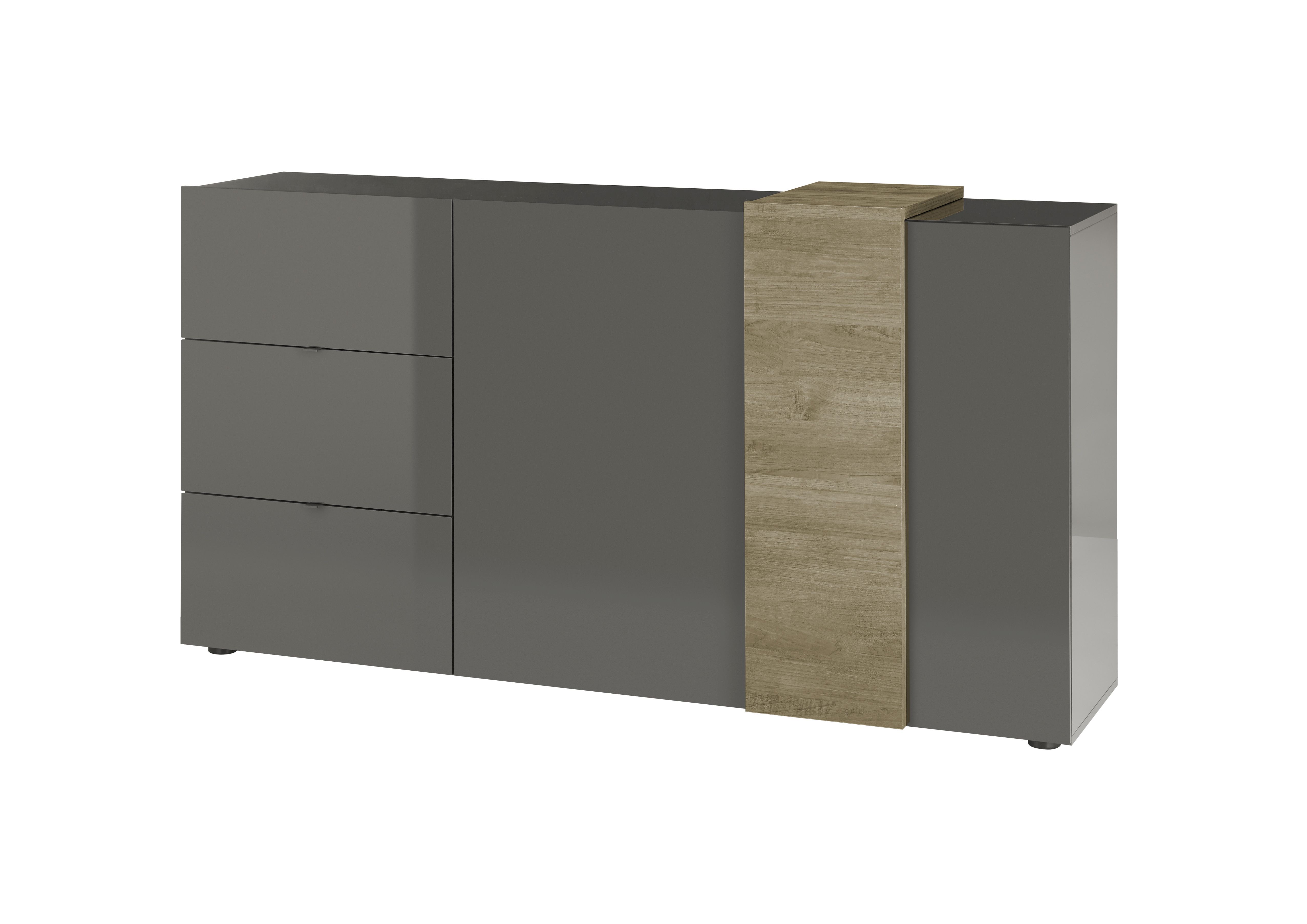 Façade et caisson : ton gris foncé ultra brillant avec contrastes décor bois Mercure