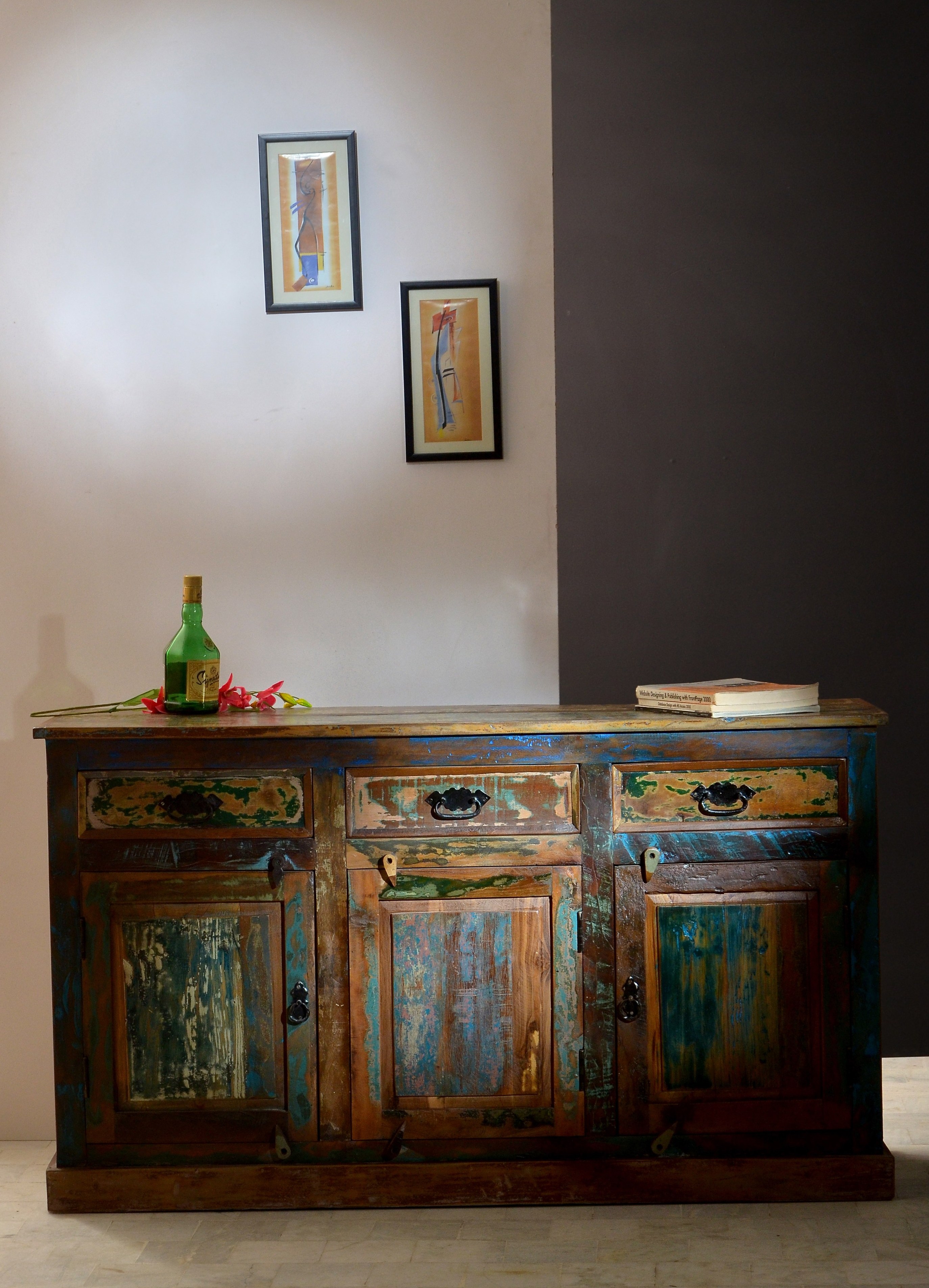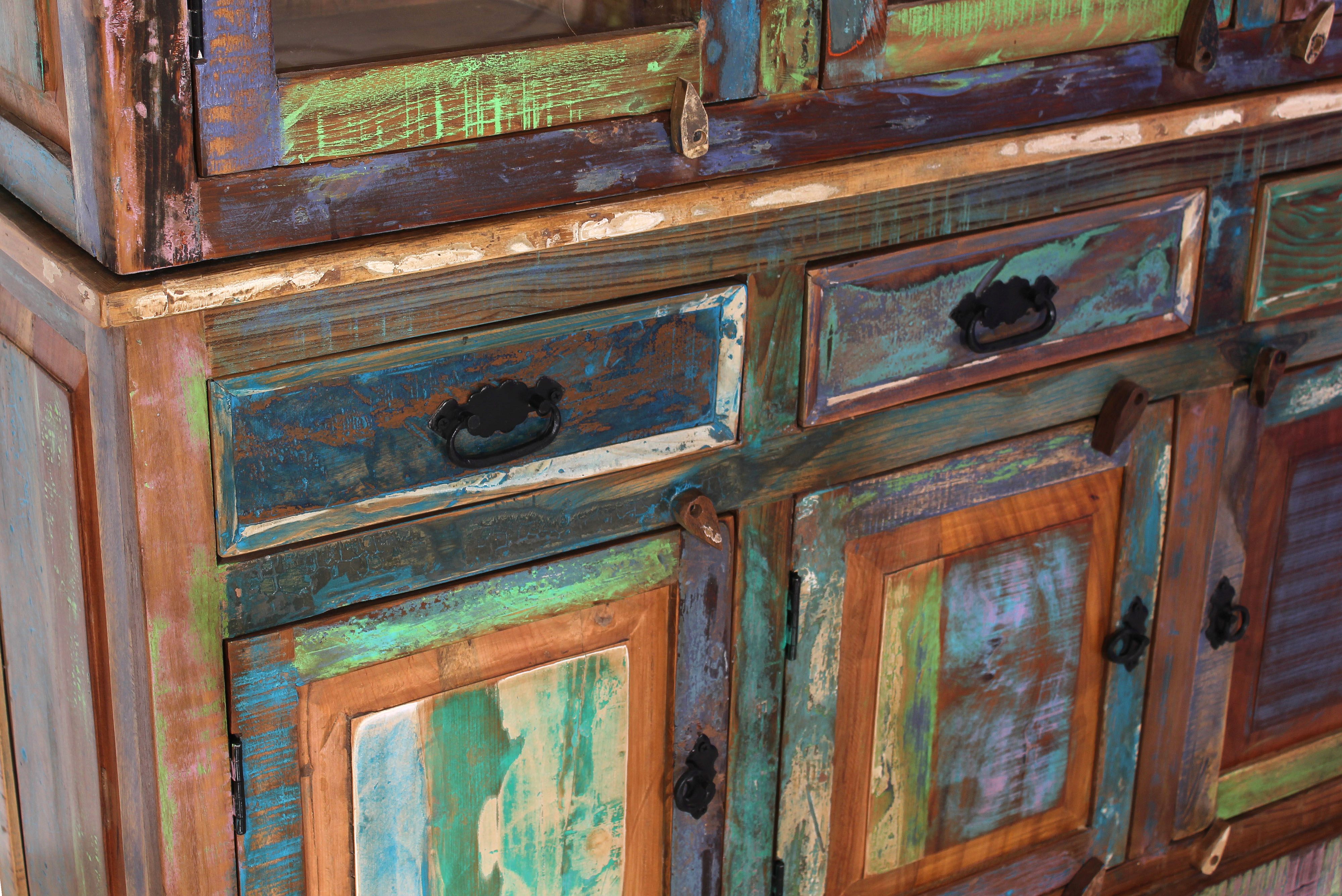 Vieux bois véritable massif (Inde) laqué ton multicolore