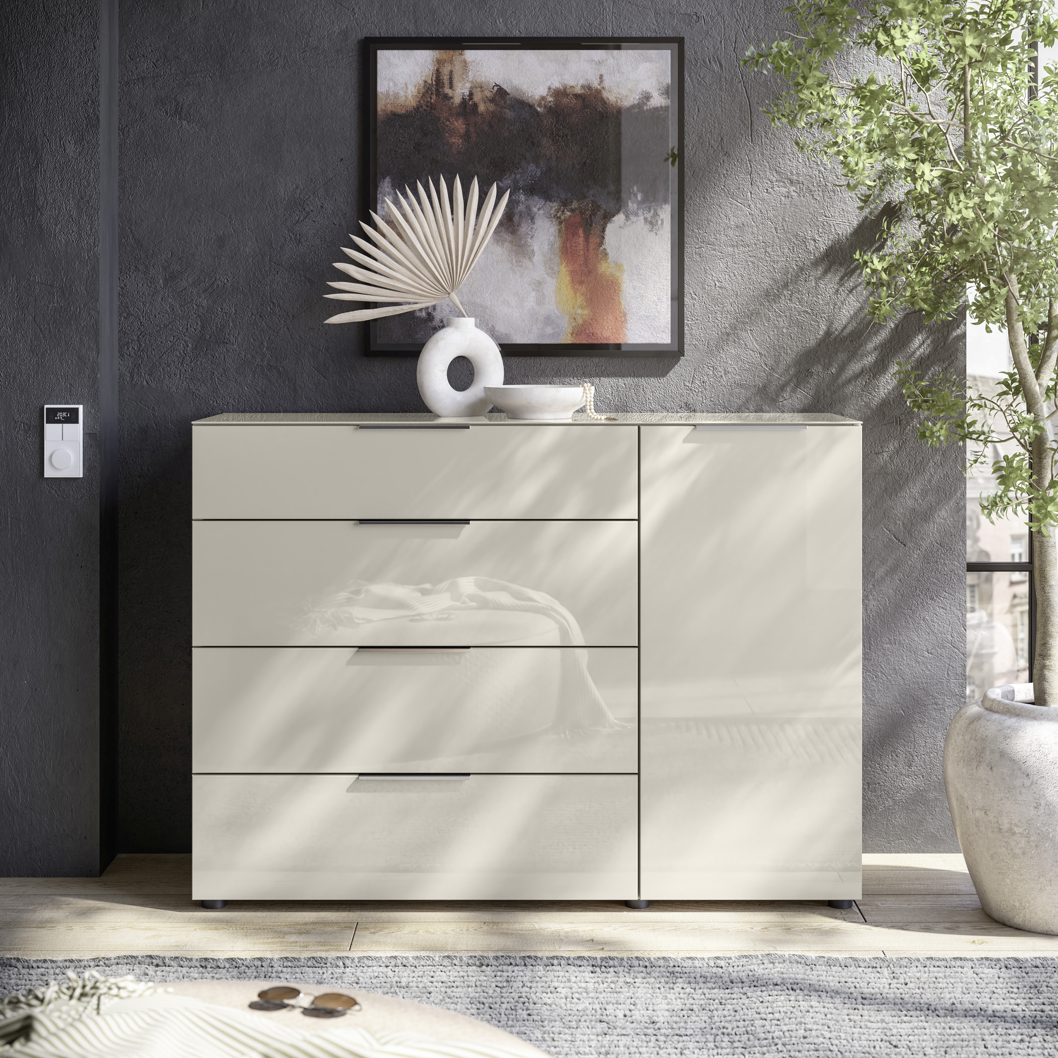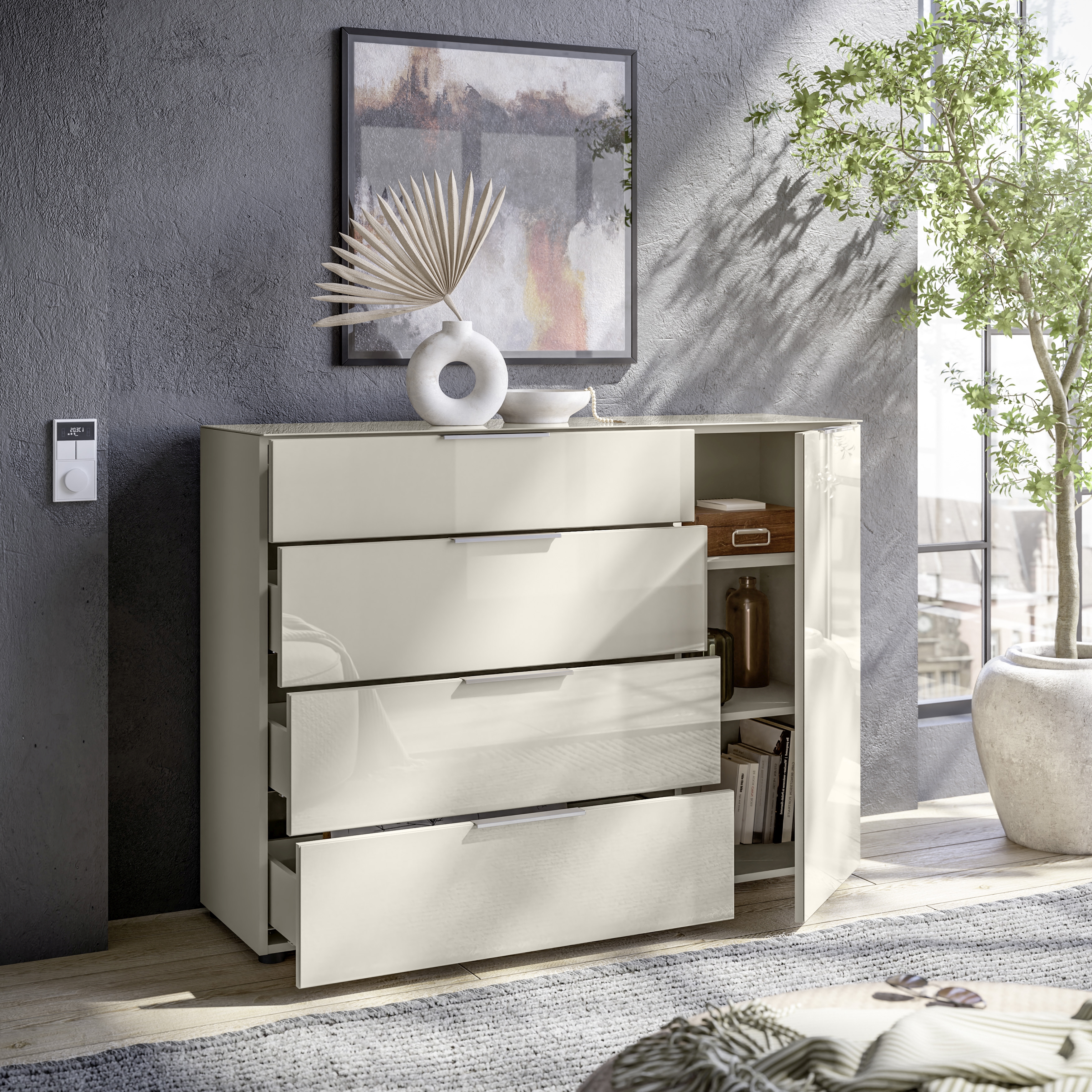 4 tiroirs avec fermeture amortie et coulisses inférieures