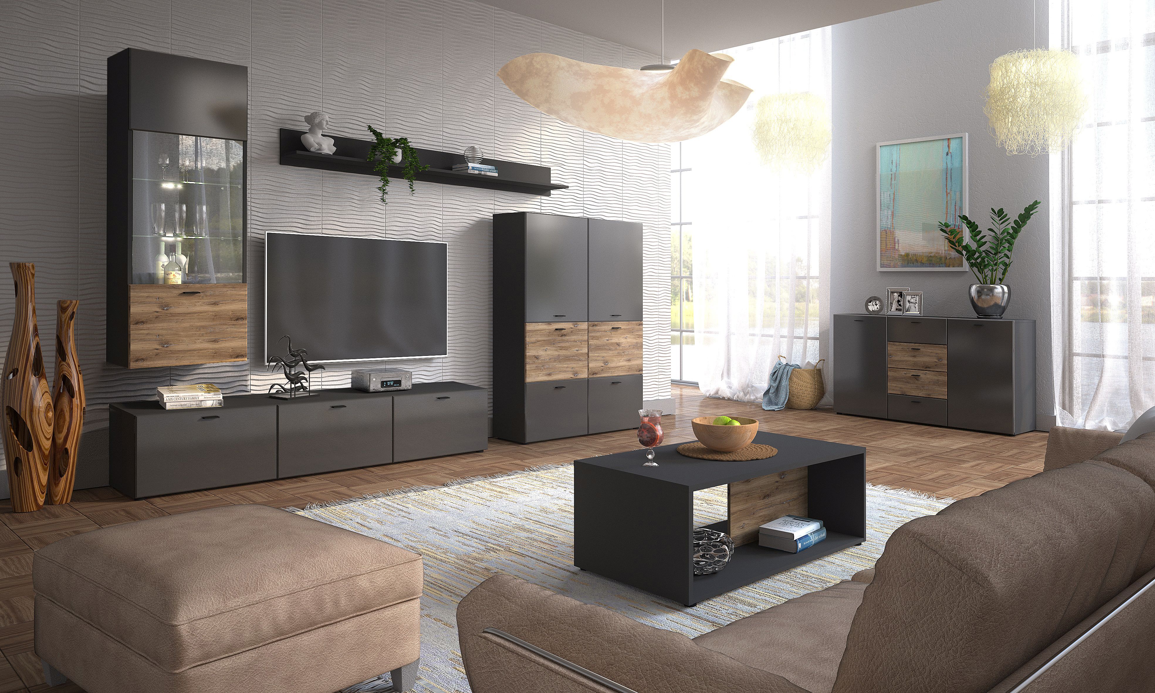 Façade : ton gris super mat avec contrastes décor chêne de Flagstaff