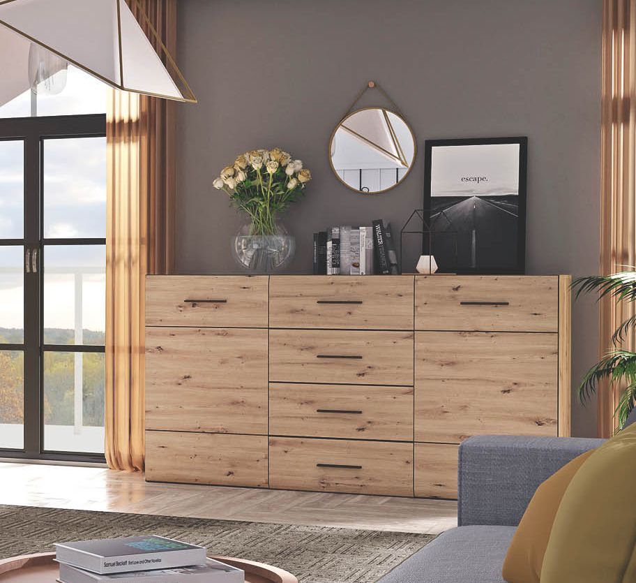 Caisson et façade : décor chêne Artisan et contrastes ton noir