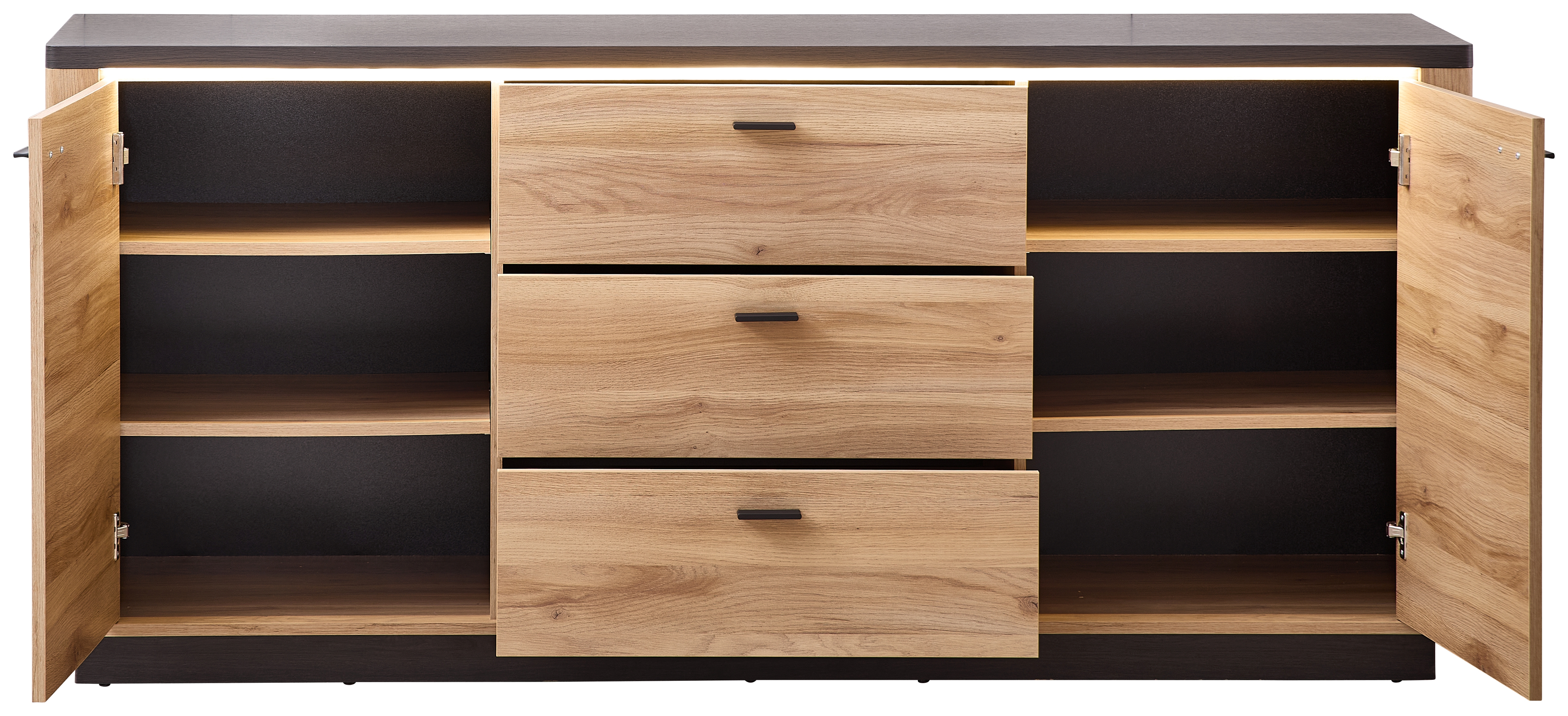 Caisson : décor chêne Mauvella avec contrastes décor chêne carbone foncé