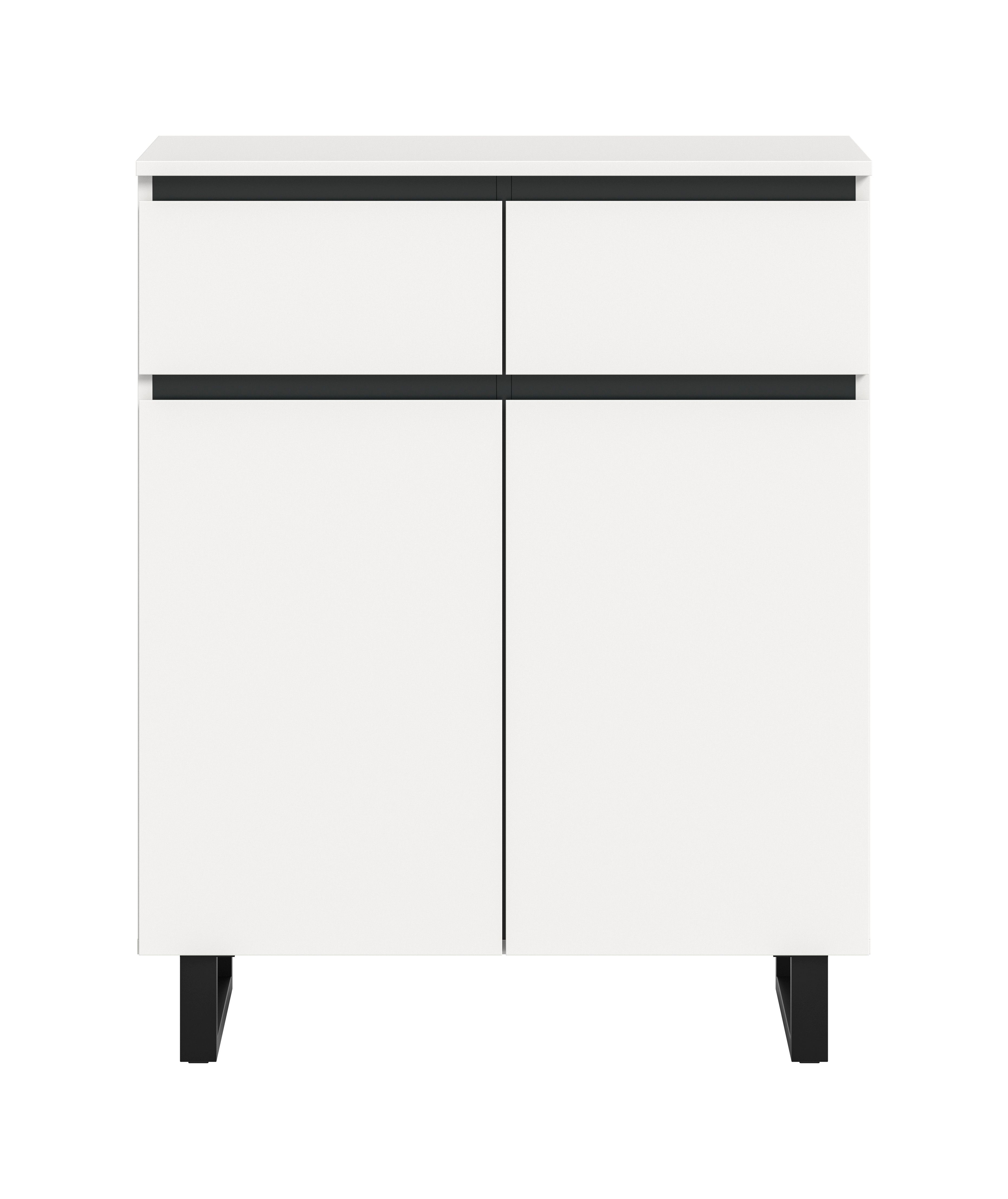 - 2 portes, 2 tablettes amovibles réglables en hauteur, 4 compartiments, 2 tiroirs