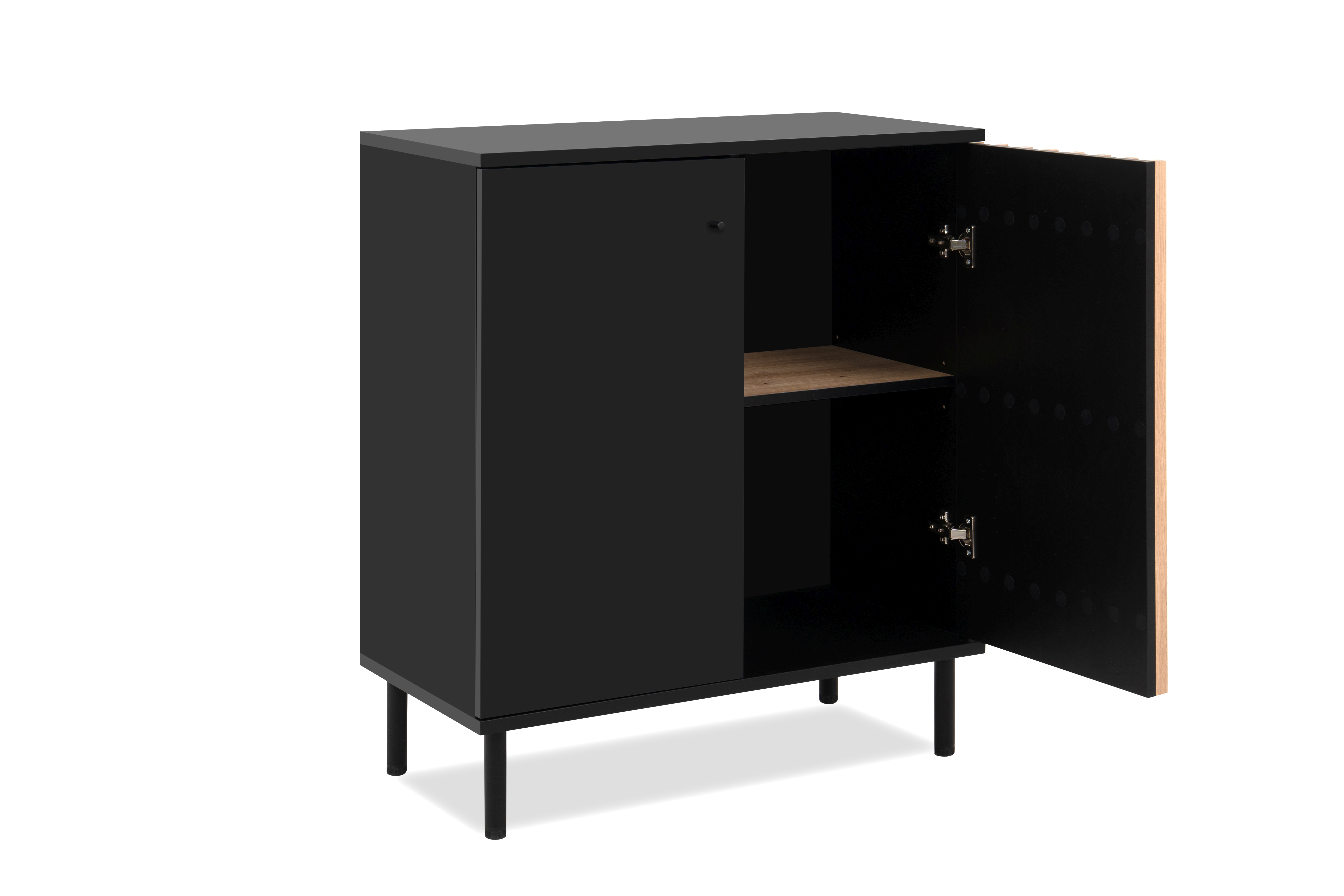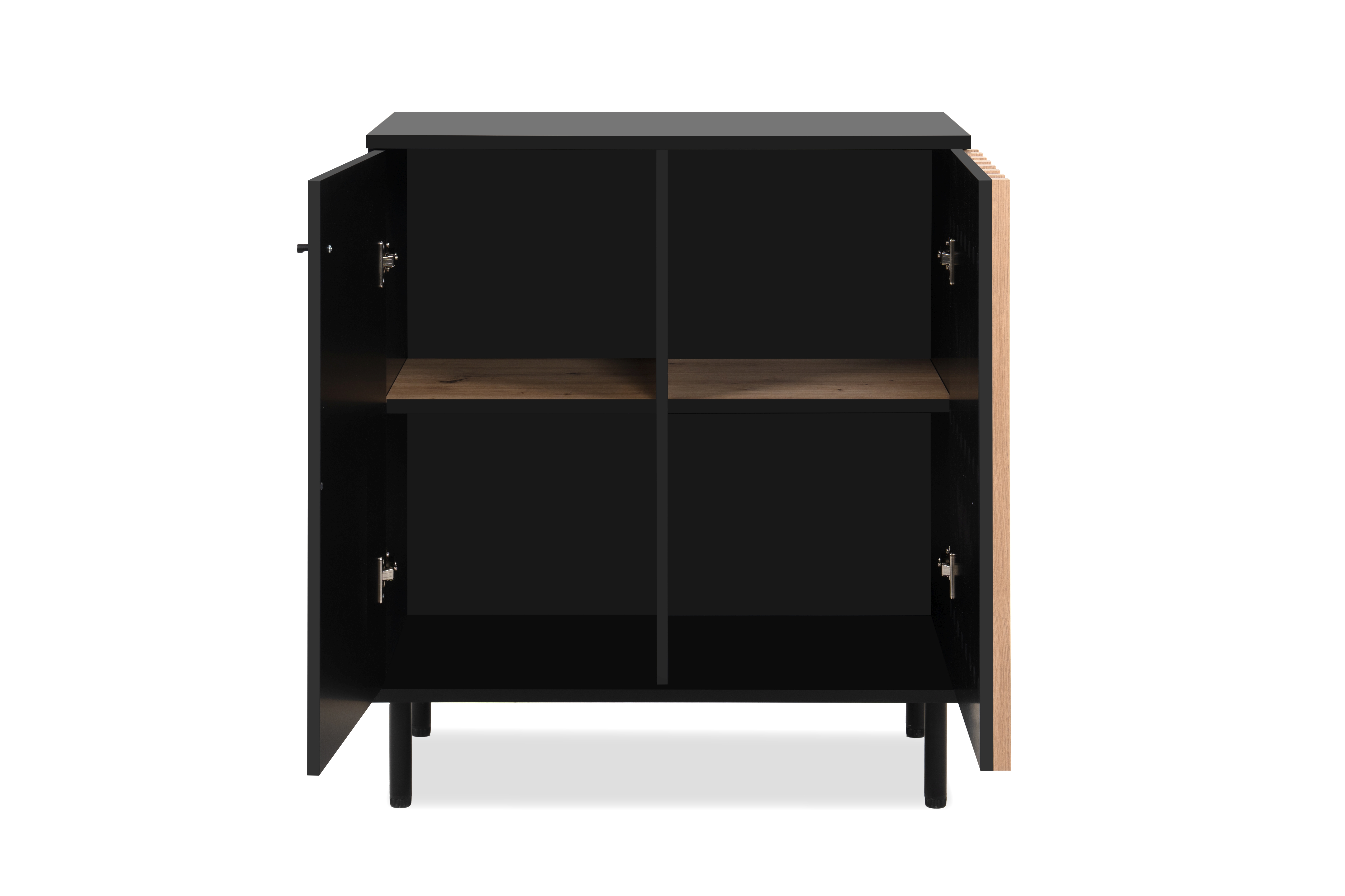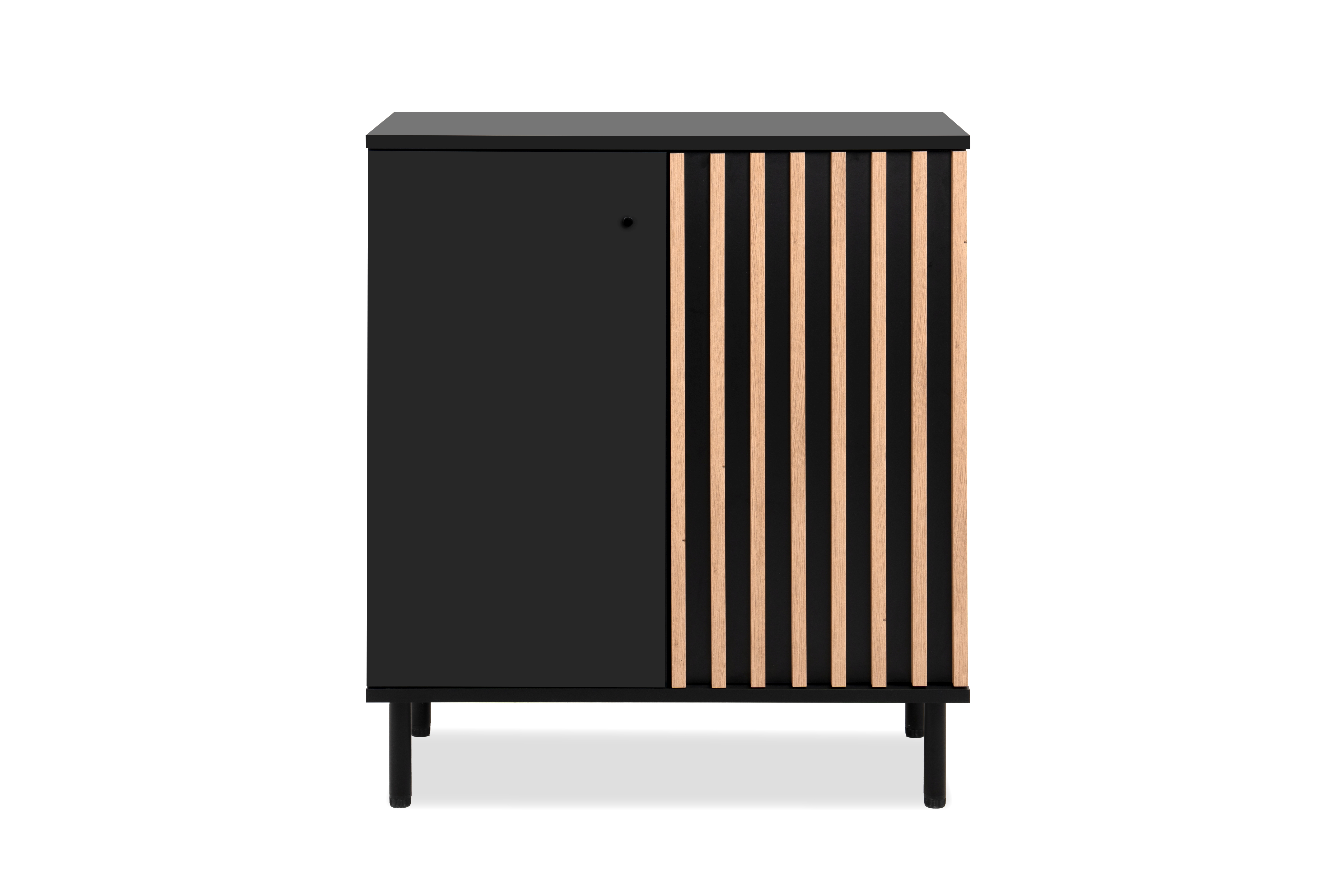 Façade : ton noir (avec traitement anti-traces de doigts) et lamelles décor chêne Artisan (aspect 3D)