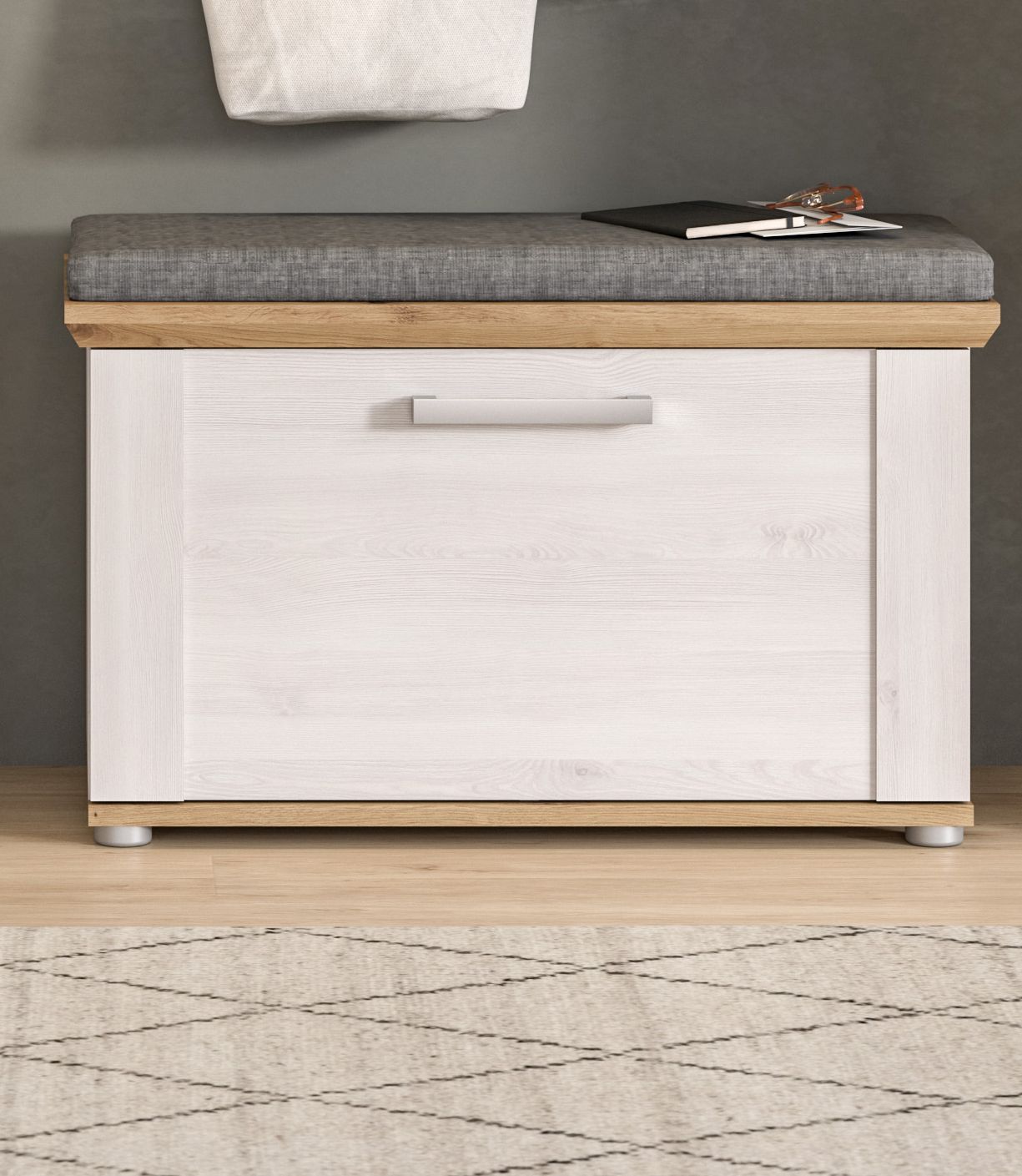 - Utilisation : ce banc est prévu pour l’utilisation dans l’entrée ou le couloir en guise de solution pratique et esthétique pour offrir une assise confortable et compléter l’aménagement existant ; il dispose également d’un espace de rangement supplémentaire.