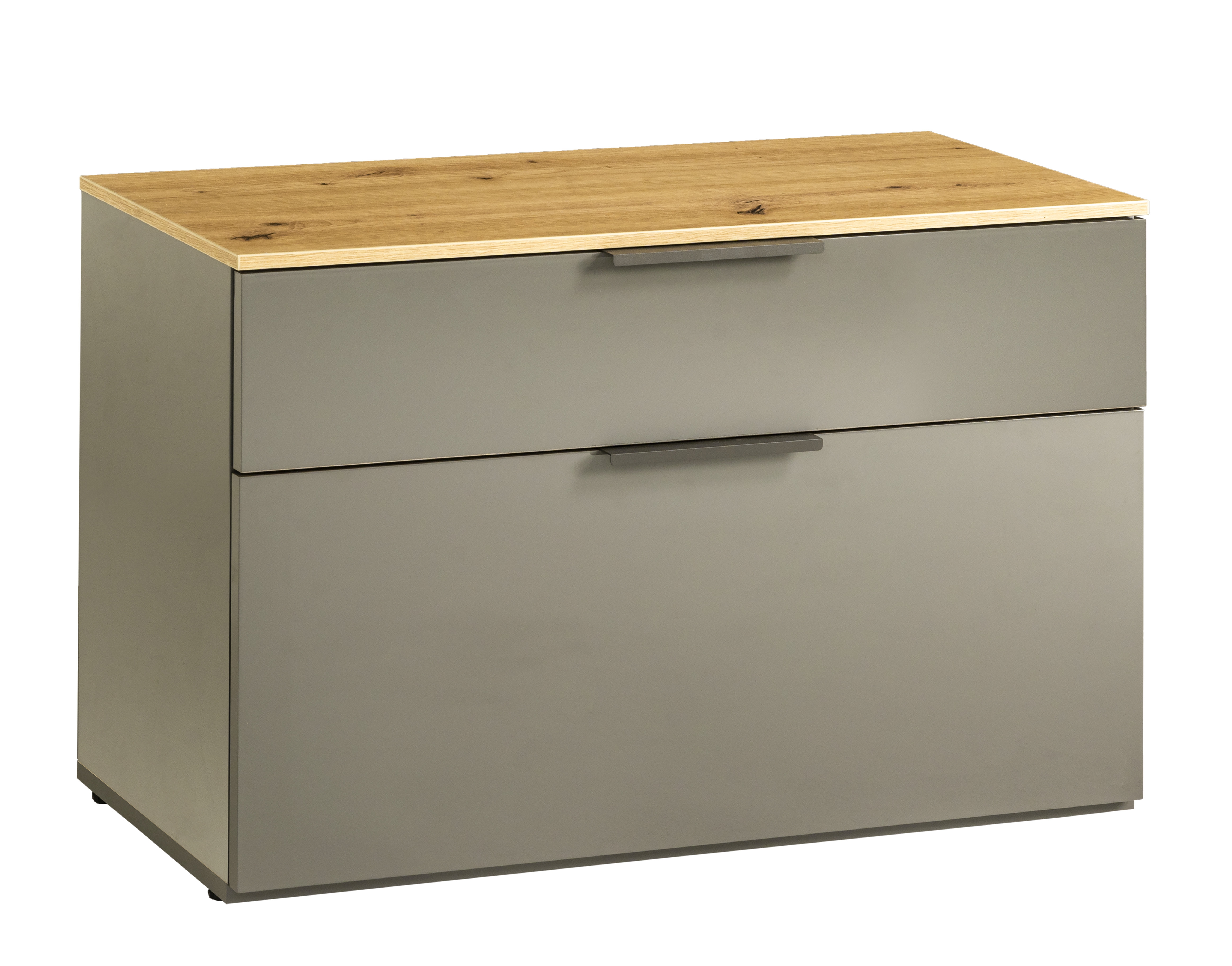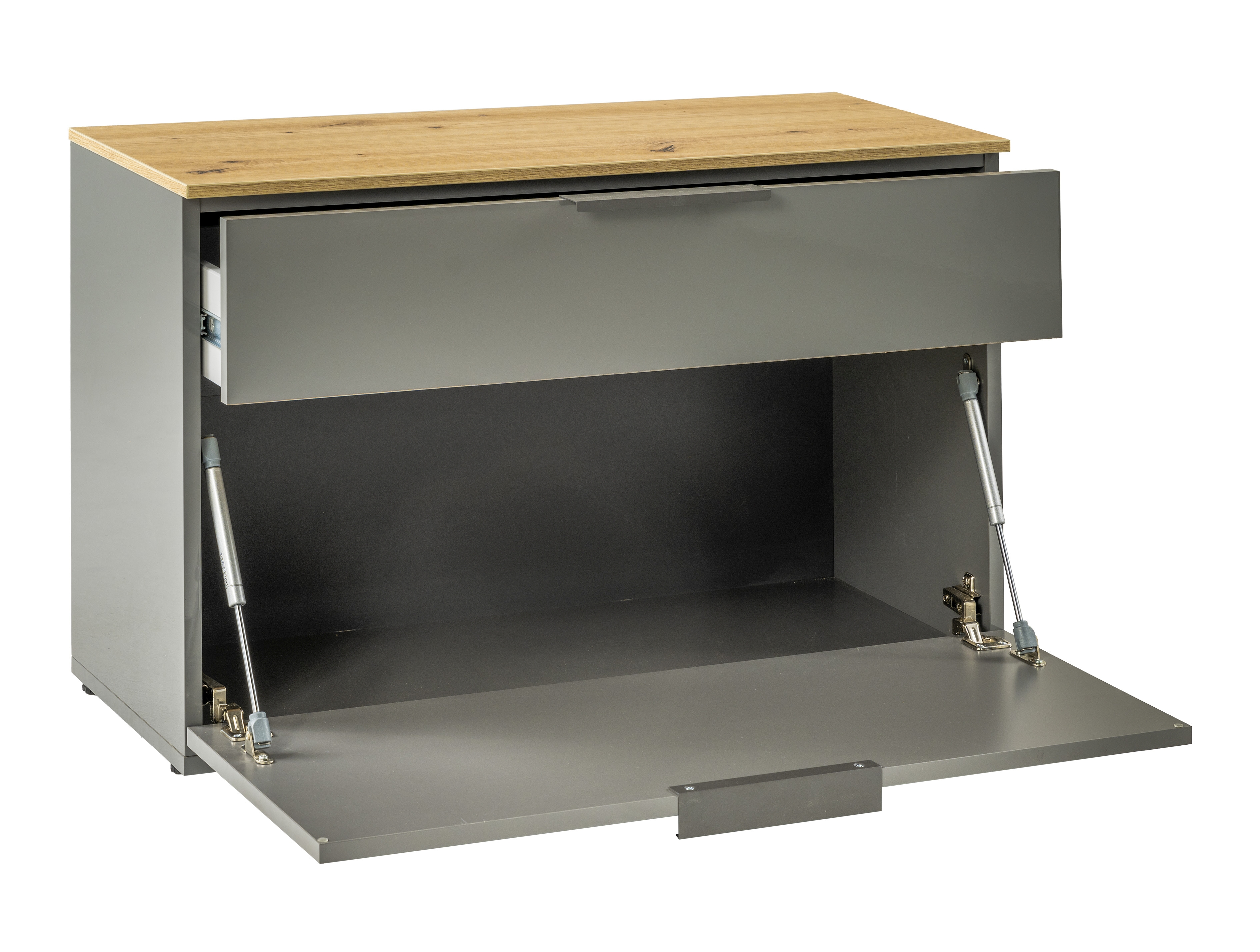Caisson et façade : décor chêne Artisan et ton gris titane ultra brillant