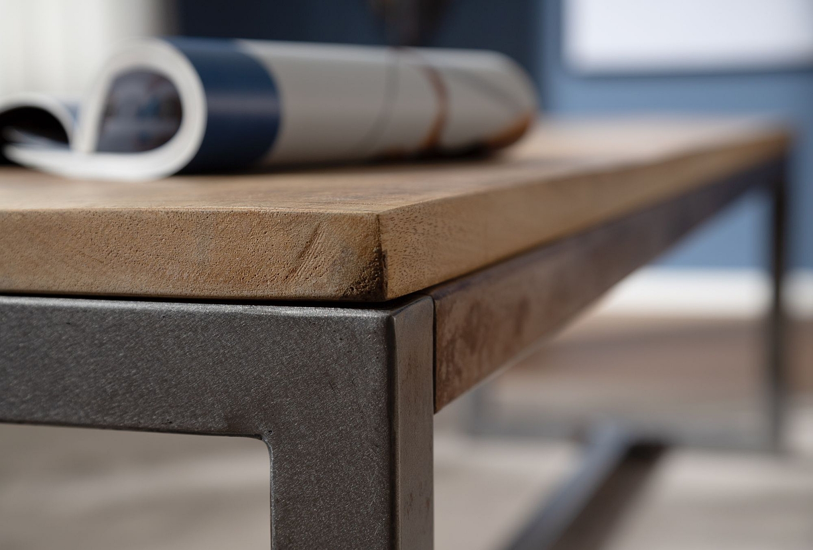 COMPOSITION ✔ La surface d'assise est en bois de manguier massif recouvert d'un vernis transparent protecteur. Le piètement est en fer.