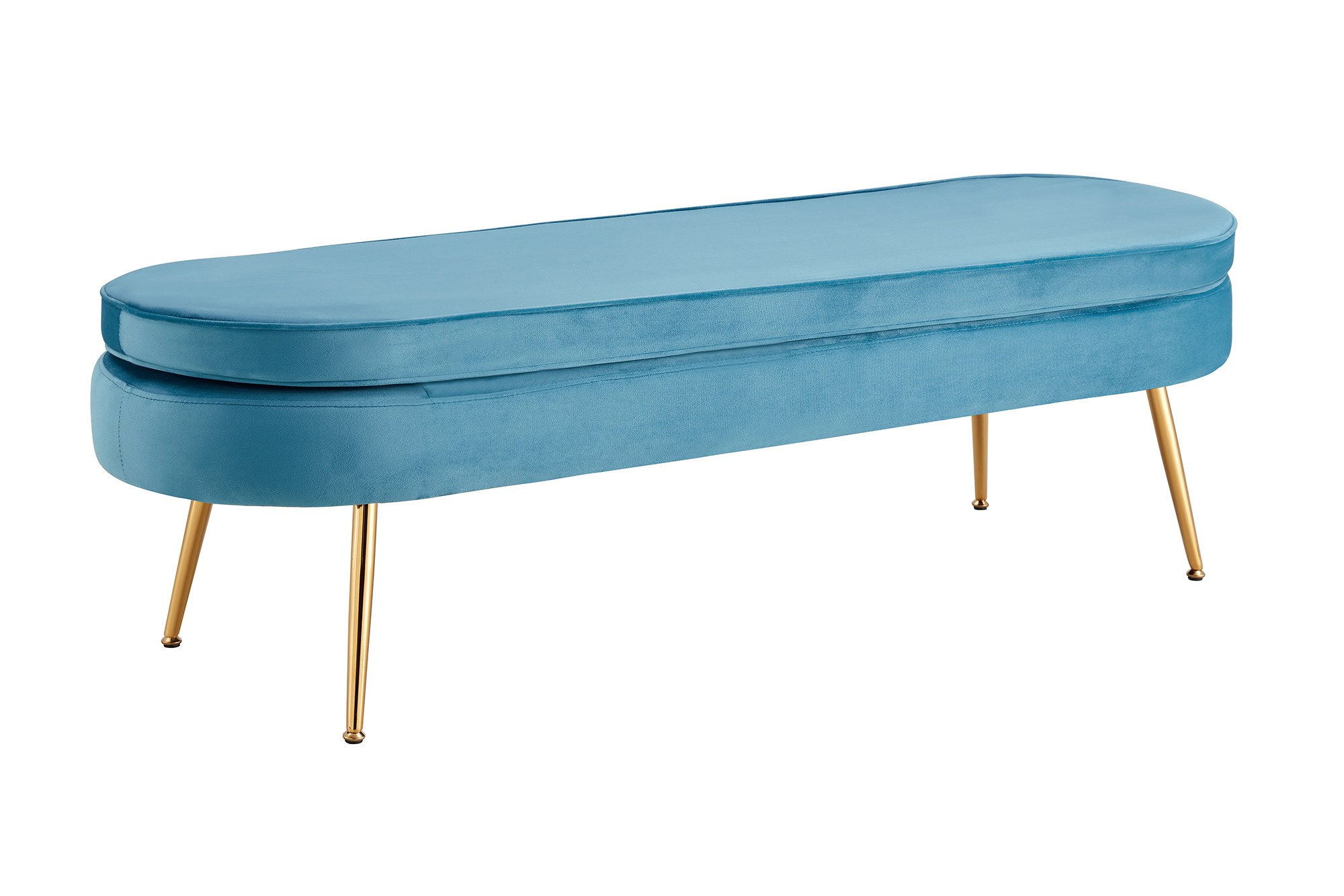 Glamour, élégant et pratique, ce banc-pouf est recouvert d’un tissu d’aspect velours très élégant. La structure à 4 pieds en métal doré assure non seulement une bonne stabilité, mais offre également un superbe contraste avec le revêtement du pouf. Grâce à son assise rembourrée, ce meuble est idéal comme siège supplémentaire ou en guise de repose-pied devant un canapé. Mais ce pouf peut également être utilisé seul, ce qui le met parfaitement en valeur. Sa forme ovale lui donne un look tout en douceur. Ce banc-pouf est un véritable bijou qui ne manquera pas d’attirer le regard dans votre intérieur.