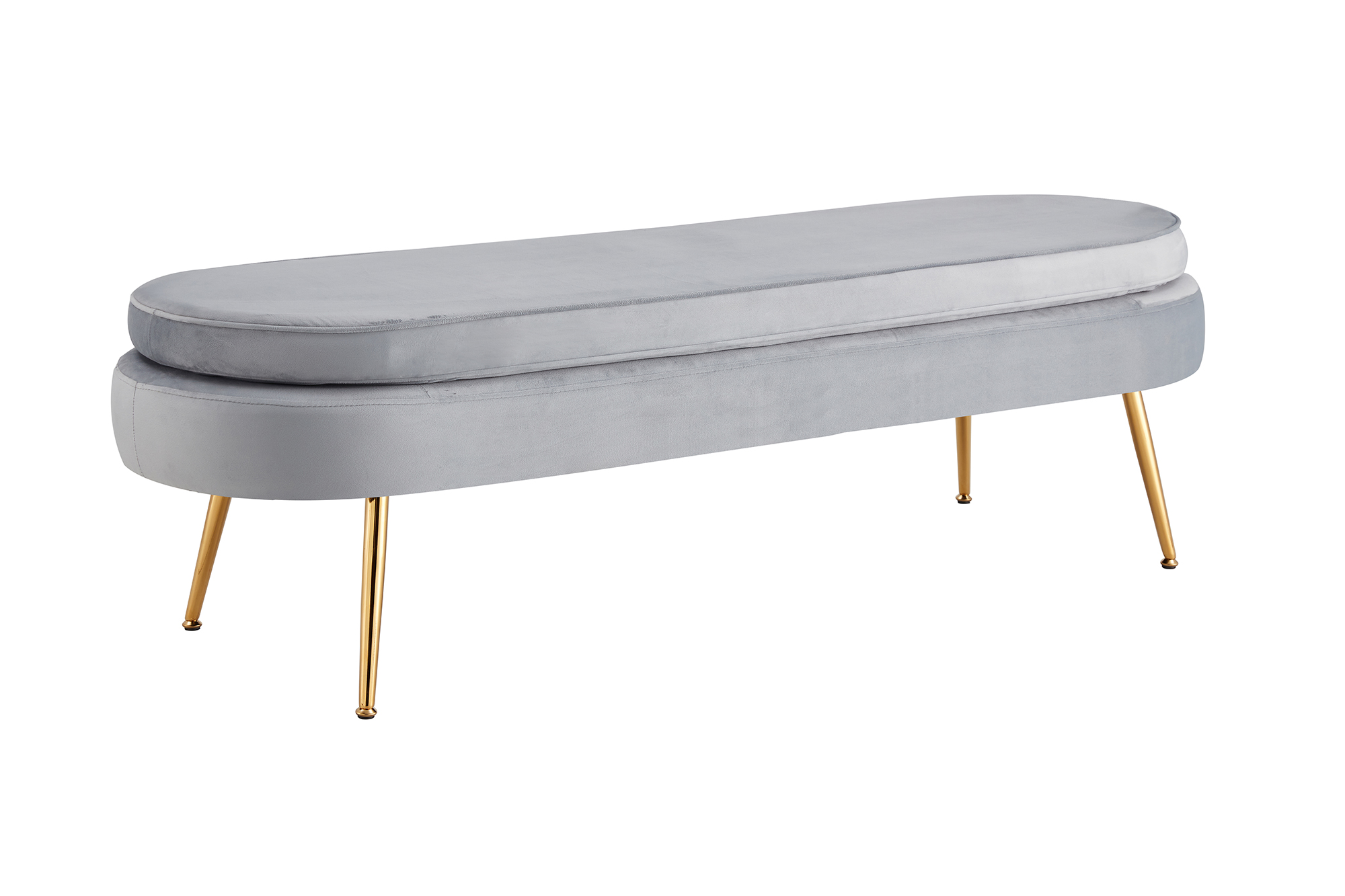Glamour, élégant et pratique, ce banc-pouf est recouvert d’un tissu d’aspect velours très élégant. La structure à 4 pieds en métal doré assure non seulement une bonne stabilité, mais offre également un superbe contraste avec le revêtement du pouf. Grâce à son assise rembourrée, ce meuble est idéal comme siège supplémentaire ou en guise de repose-pied devant un canapé. Mais ce pouf peut également être utilisé seul, ce qui le met parfaitement en valeur. Sa forme ovale lui donne un look tout en douceur. Ce banc-pouf est un véritable bijou qui ne manquera pas d’attirer le regard dans votre intérieur.