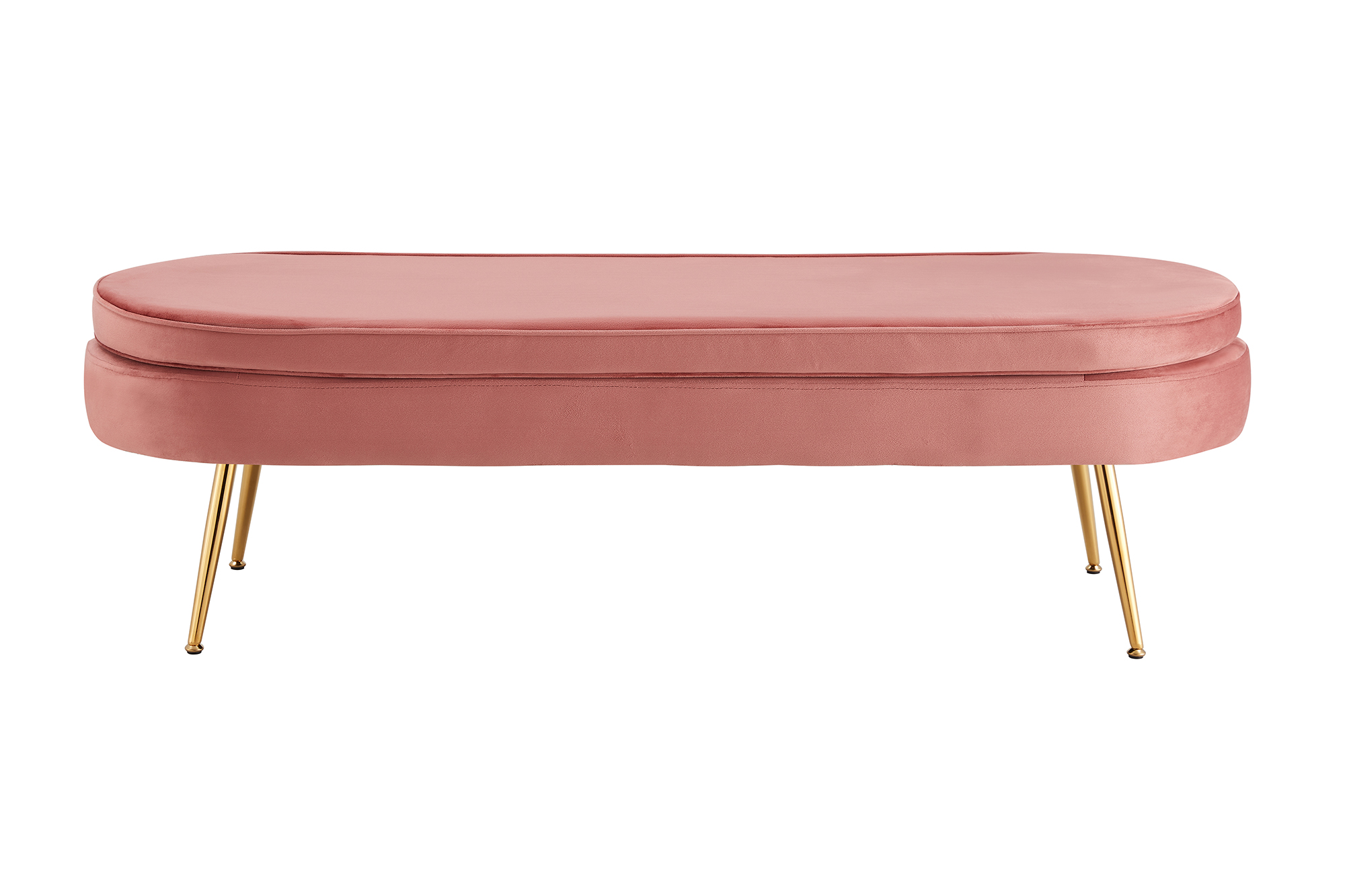 Glamour, élégant et pratique, ce banc-pouf est recouvert d’un tissu d’aspect velours très élégant. La structure à 4 pieds en métal doré assure non seulement une bonne stabilité, mais offre également un superbe contraste avec le revêtement du pouf. Grâce à son assise rembourrée, ce meuble est idéal comme siège supplémentaire ou en guise de repose-pied devant un canapé. Mais ce pouf peut également être utilisé seul, ce qui le met parfaitement en valeur. Sa forme ovale lui donne un look tout en douceur. Ce banc-pouf est un véritable bijou qui ne manquera pas d’attirer le regard dans votre intérieur.