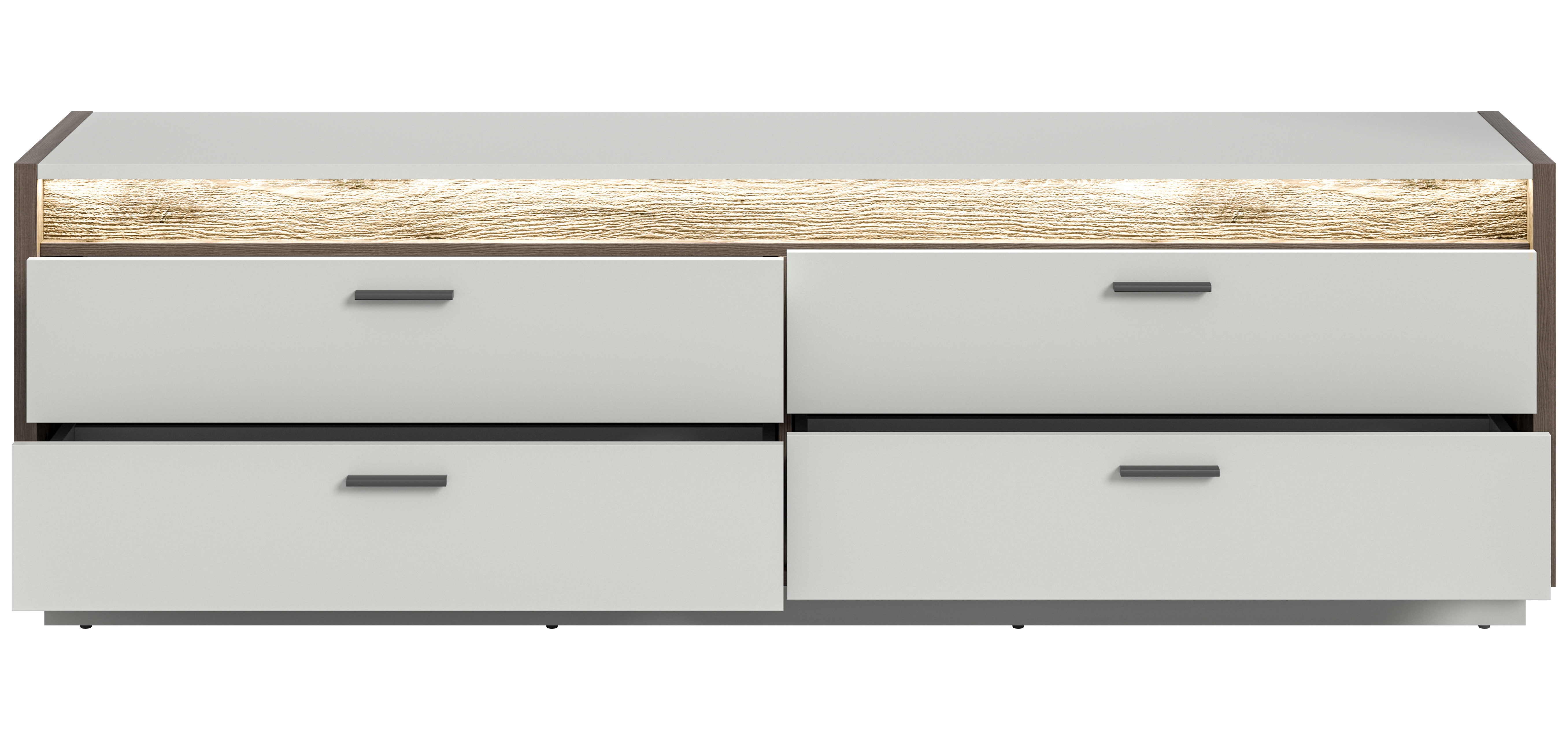 - Design/style : banc TV moderne décor chêne Nox foncé et ton gris clair dans un design tendance ; son élégante combinaison de couleurs crée une atmosphère chaleureuse et conviviale.