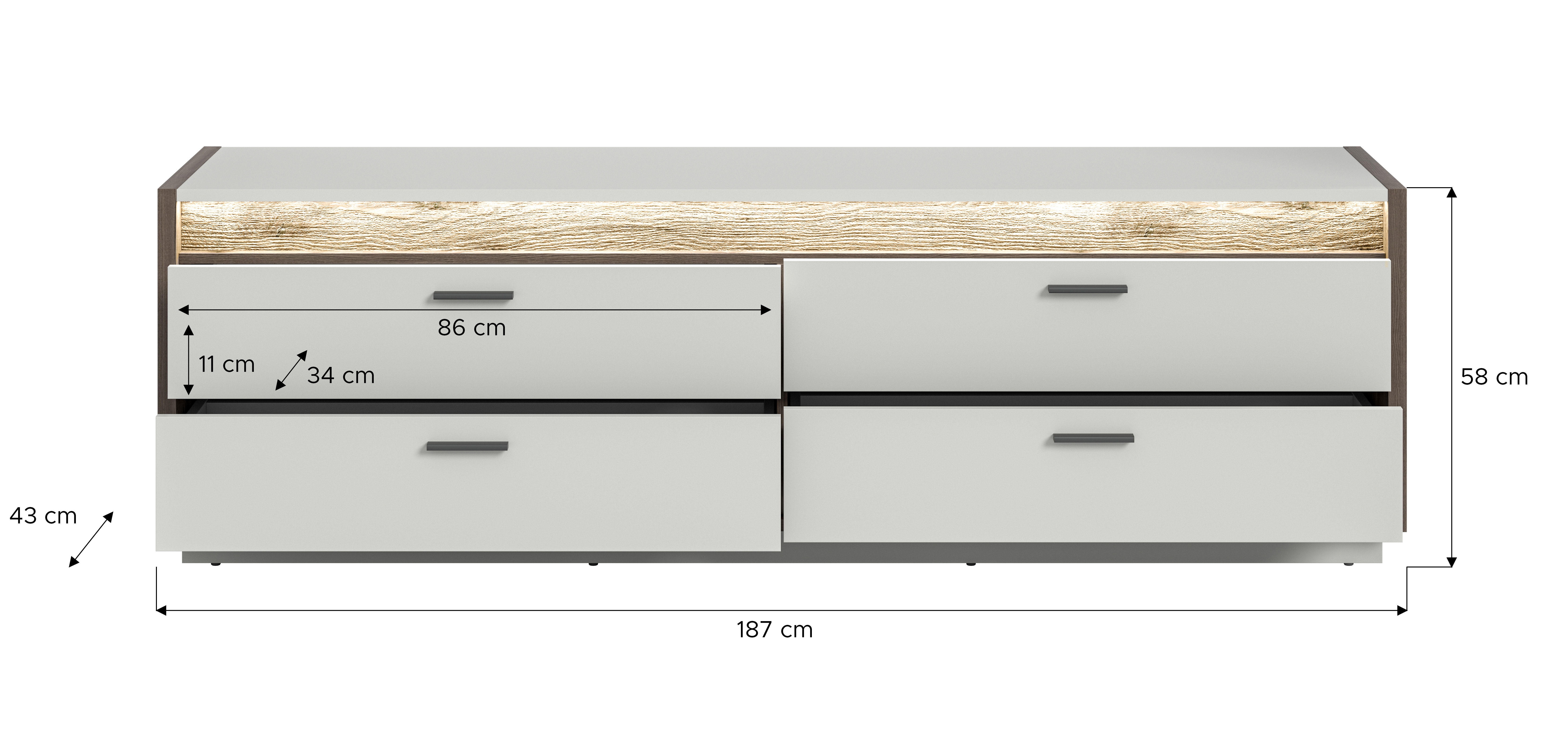 | Dimensions : | L/H/P env. 187/58/43 cm | ||