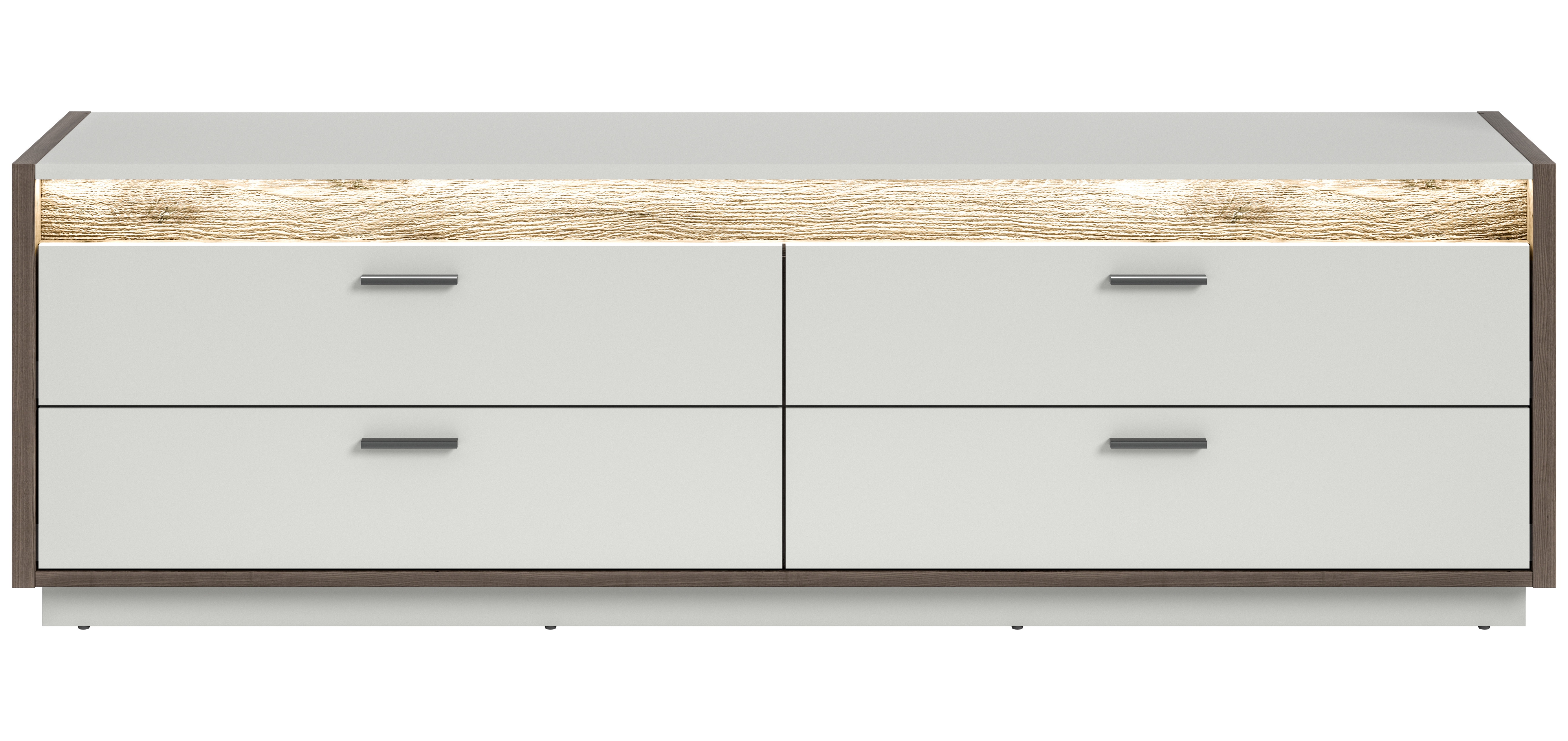 Découvrez ce meuble TV tendance décor chêne Nox foncé et ton gris clair aux dimensions généreuses (187x58x43 cm) : grâce à lui, votre salon s’enrichira d’un meuble stylé et fonctionnel. Avec son éclairage de façade dimmable intégré, il vous permettra de créer une ambiance agréable et vous offrira un espace de rangement suffisant pour vos appareils multimédias. Avec cet élégant banc TV conférez à votre salon une touche luxueuse et profitez de ses avantages pratiques.