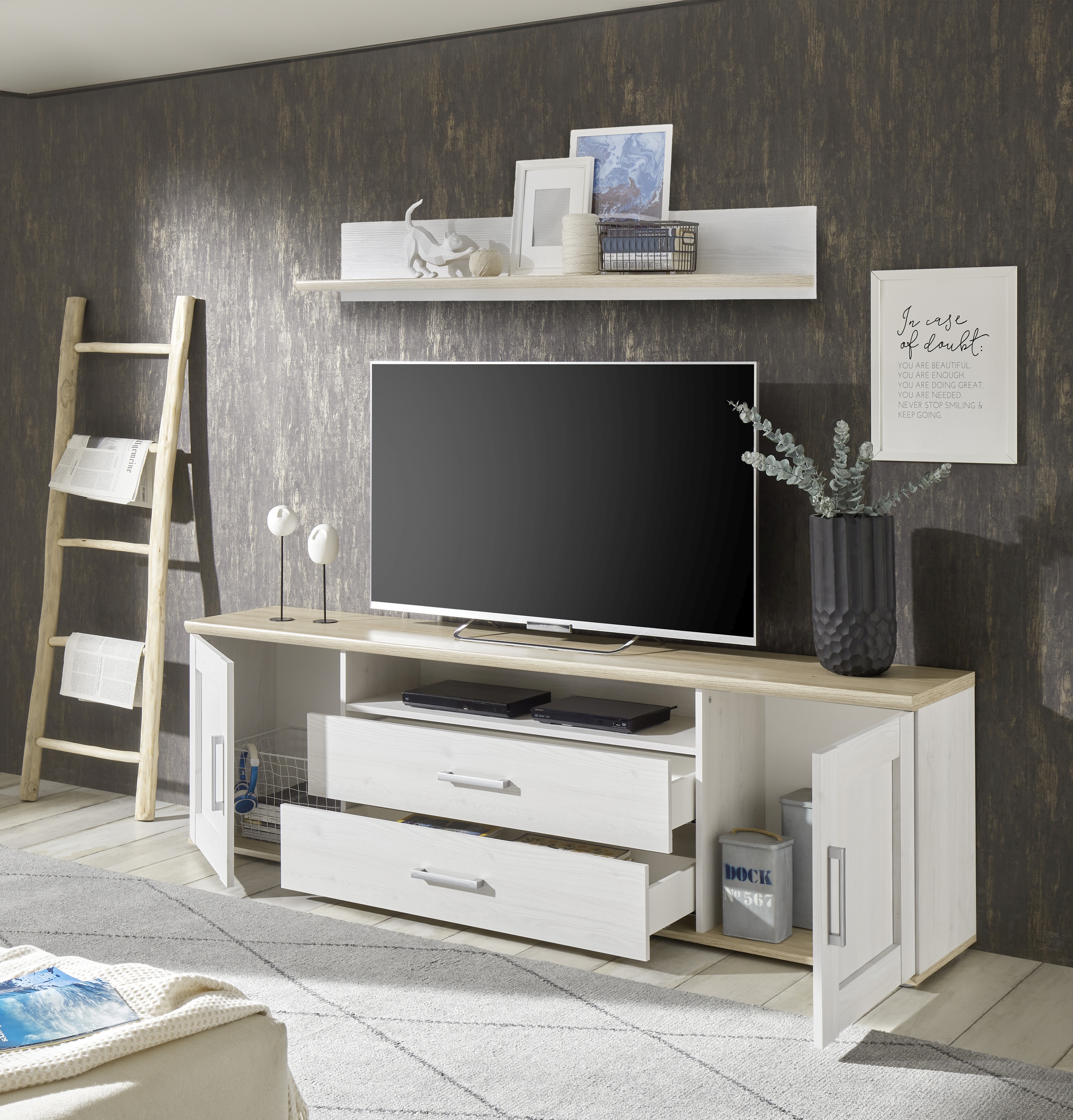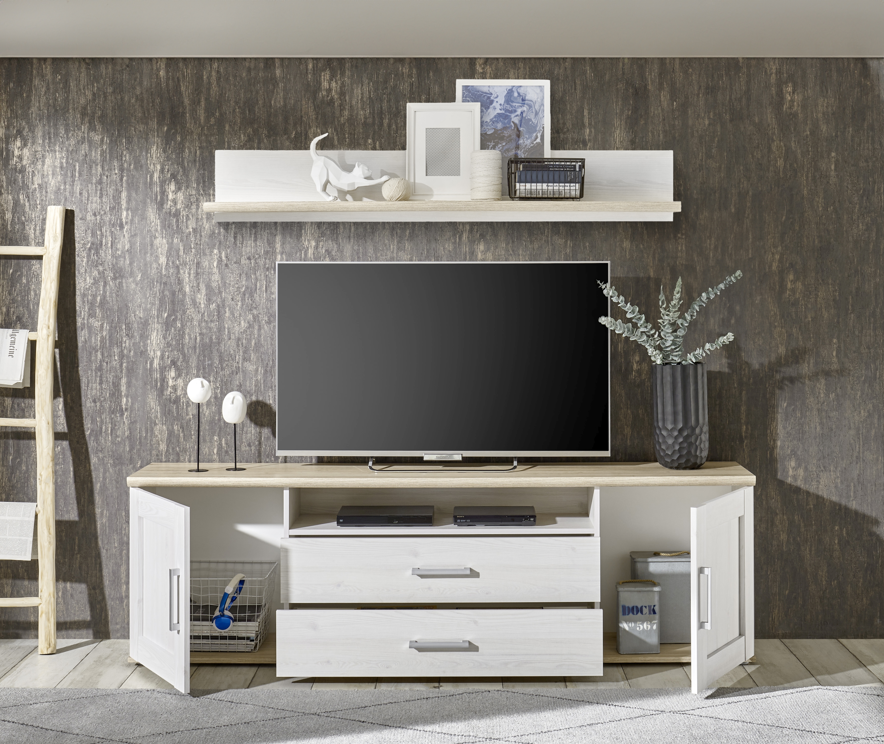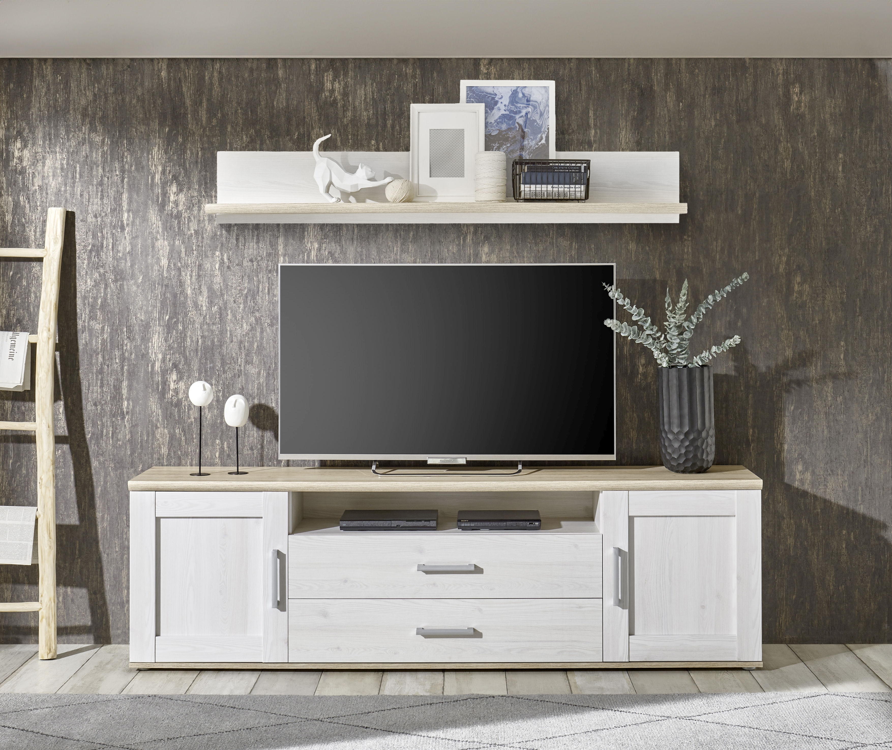 Banc TV avec étagère murale BIEL