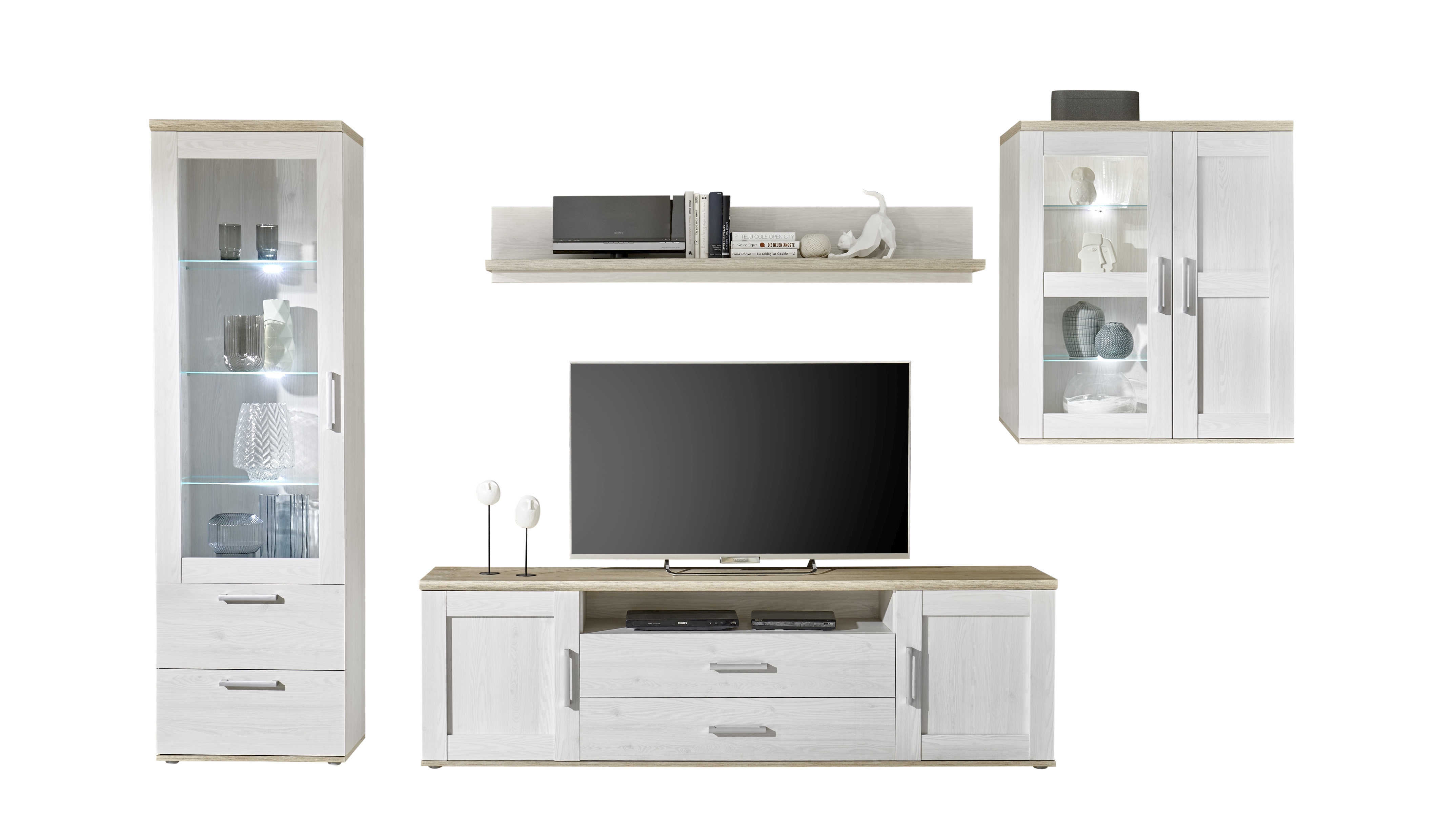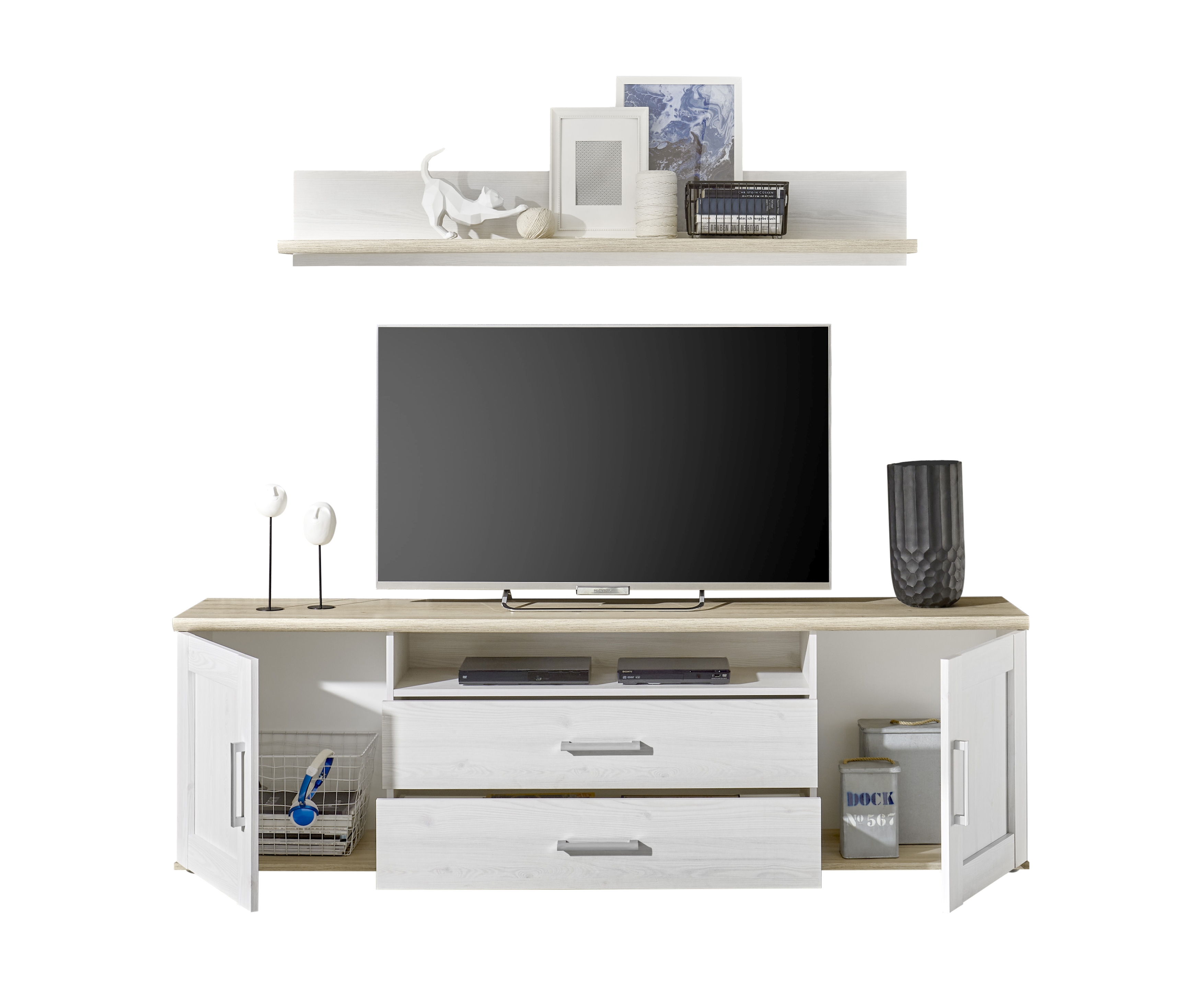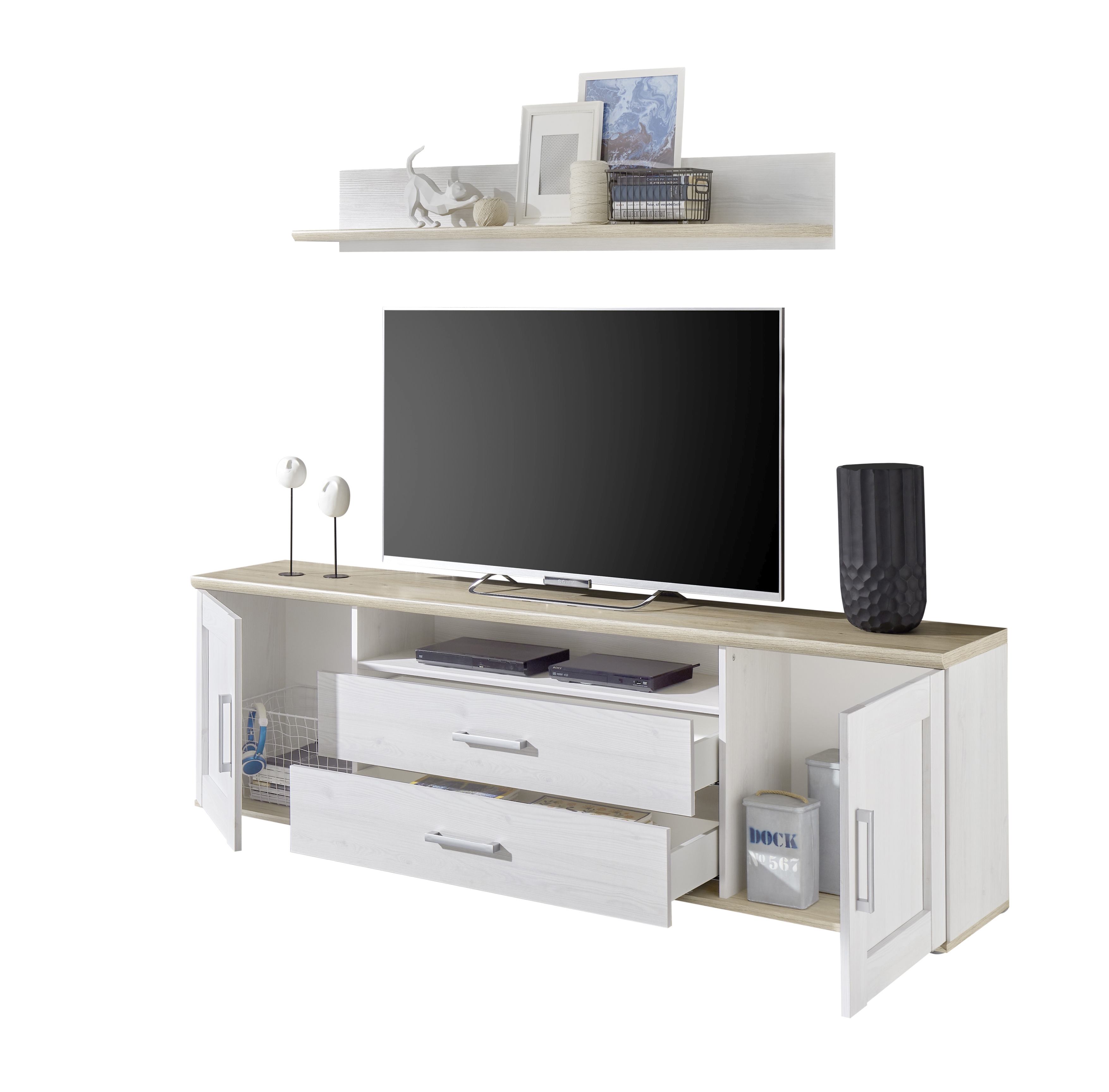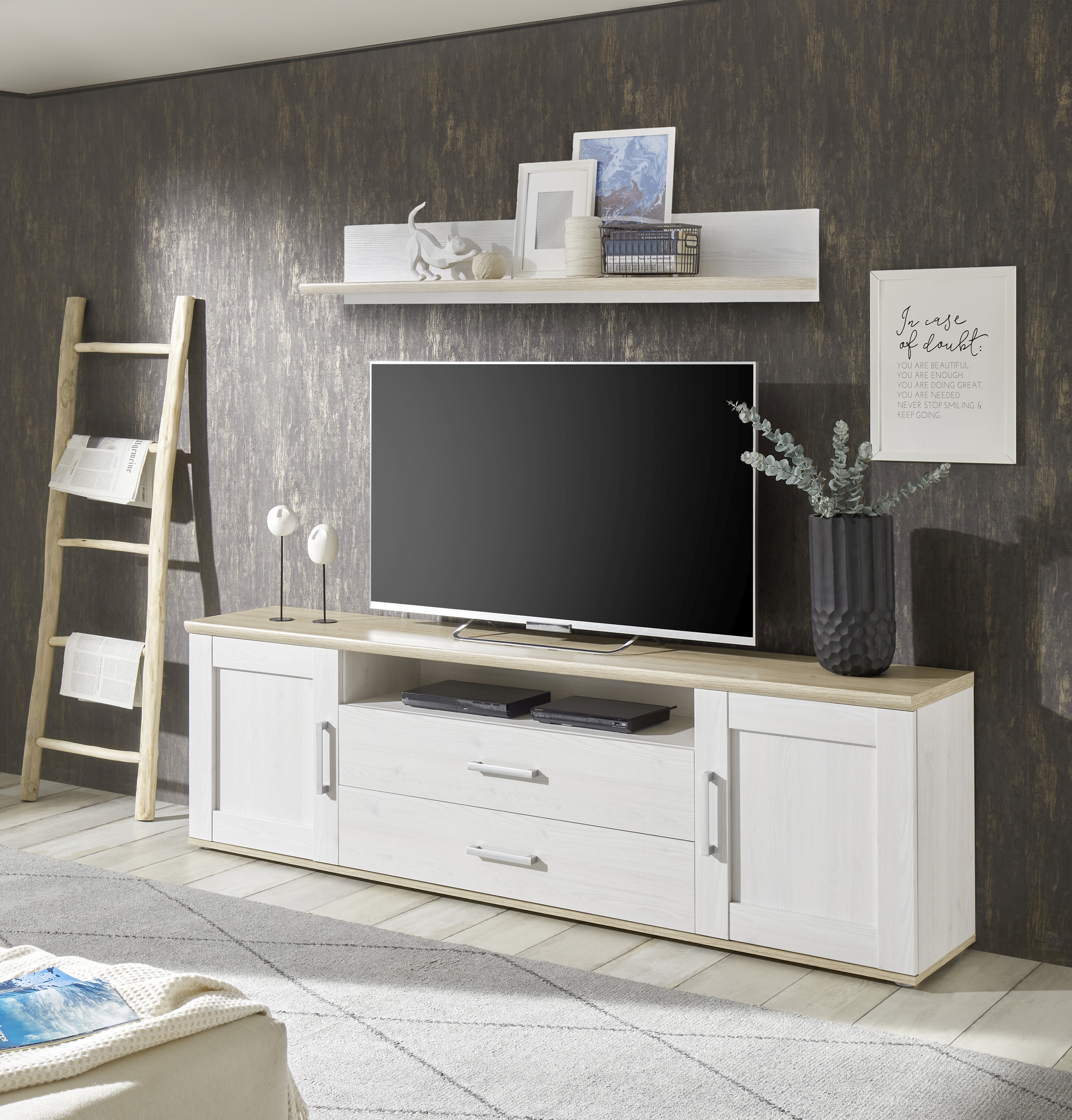 Banc TV avec étagère murale BIEL