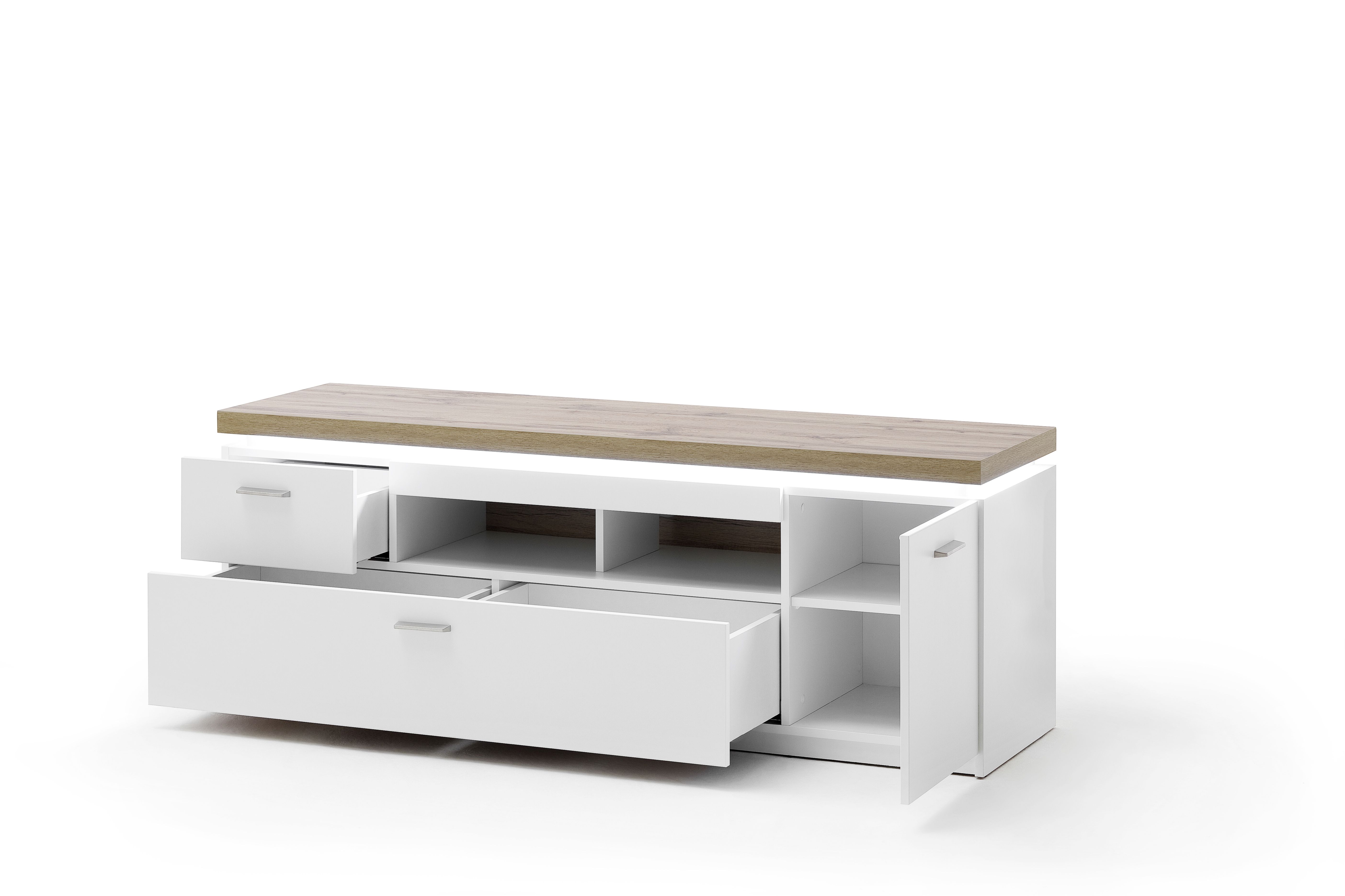 | Ausstattung Kommoden Phono Büro Regal: | Casiers ouverts, Passe-câbles, Portes, Tiroirs, incl. éclairage | ||