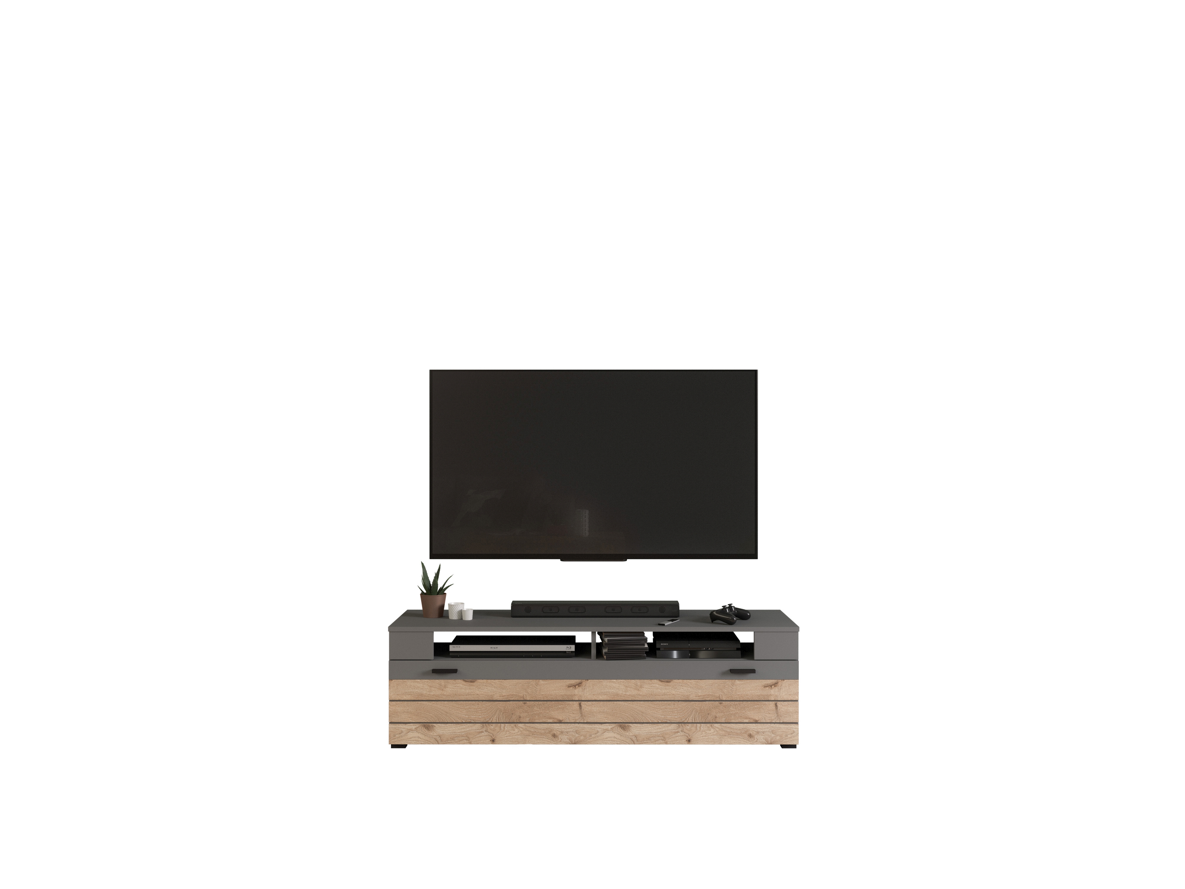 Découvrez notre banc TV stylé dans un décor chêne Nox et ton gris : le modèle idéal pour un intérieur tendance. Grâce à ses dimensions généreuses (140x43x40 cm), il offre suffisamment de place pour vos appareils multimédias tout en mettant joliment en valeur votre intérieur.
