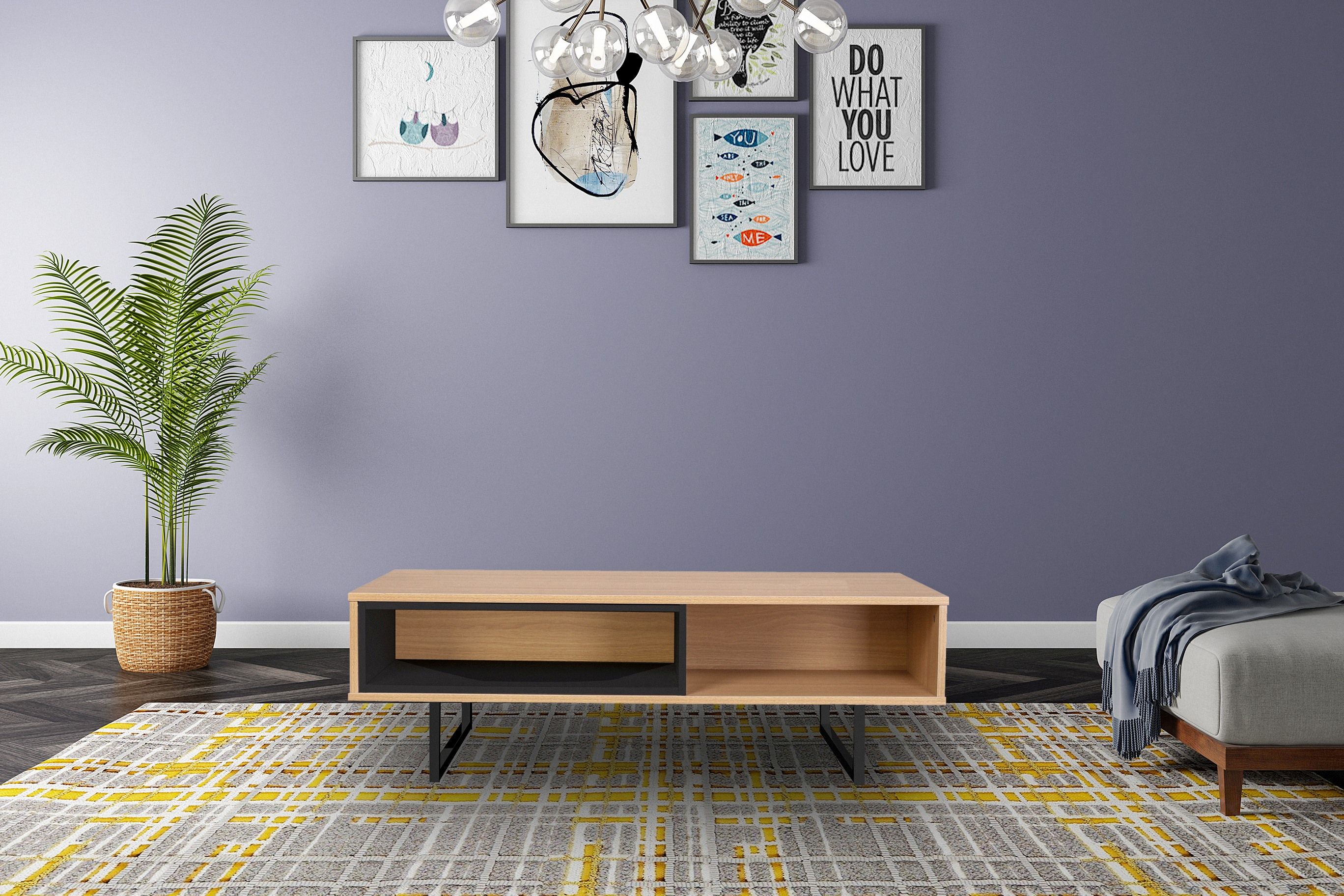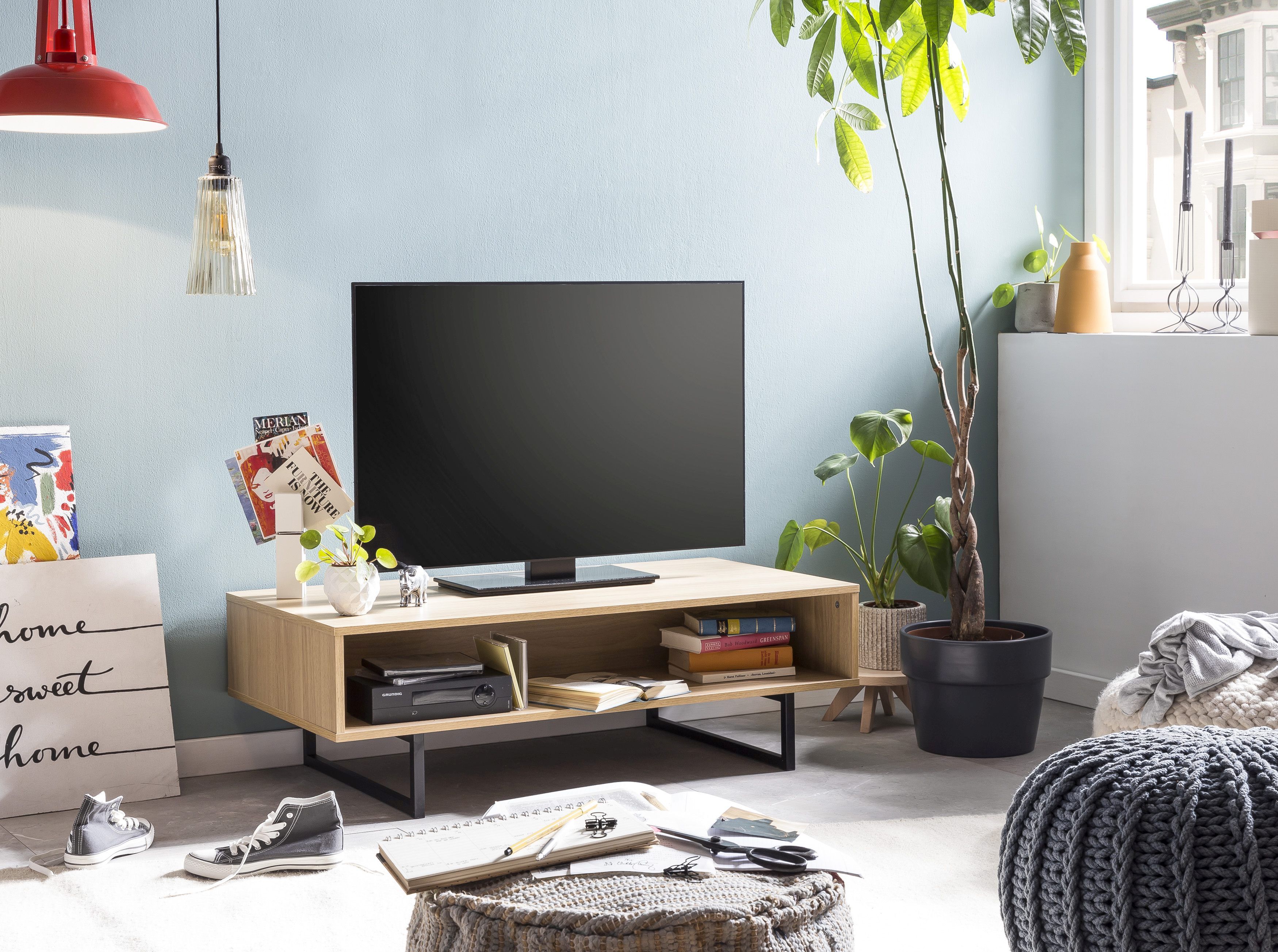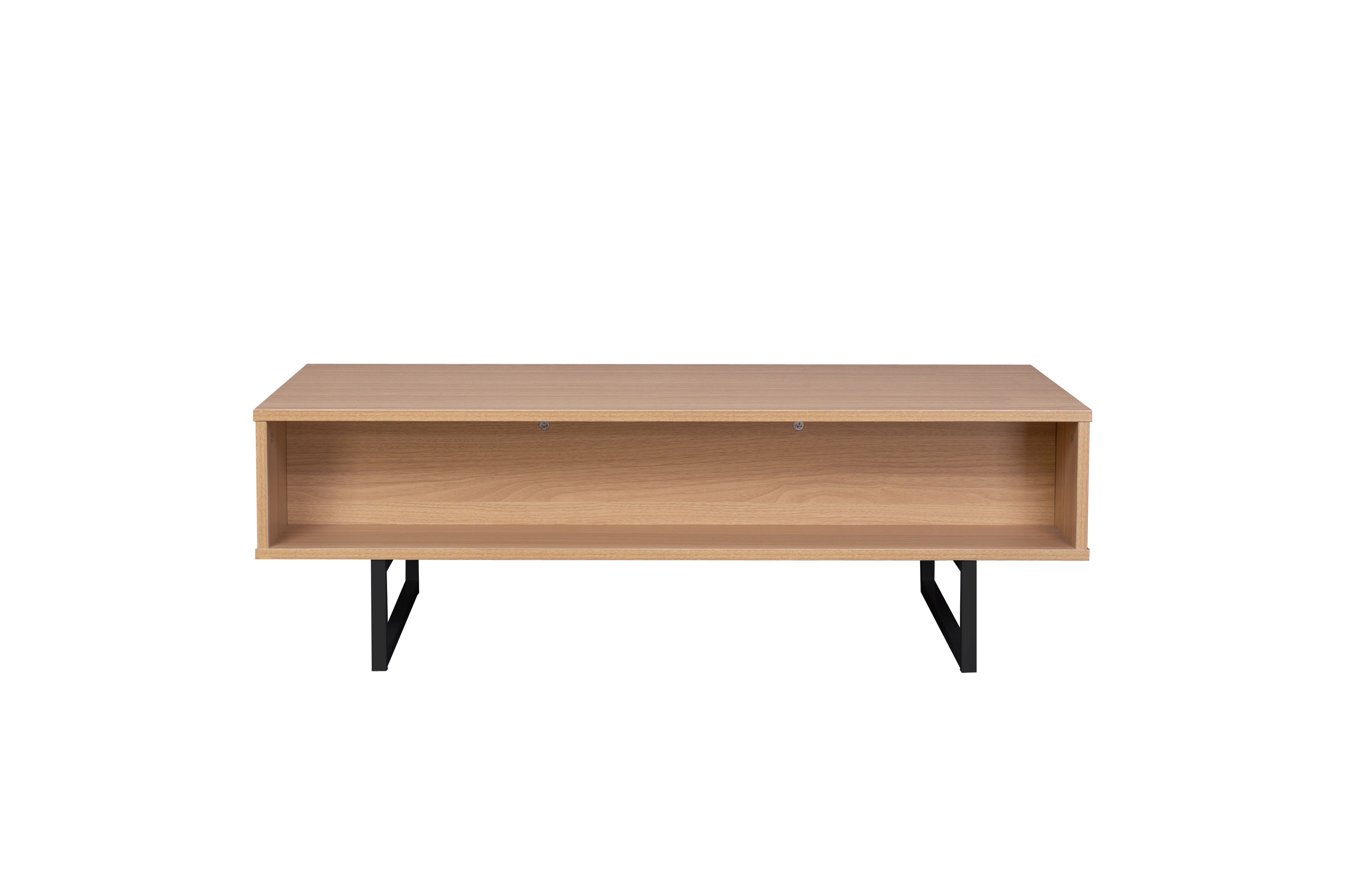 Ce bahut bas stylé va vous enchanter. Ce banc TV dispose d'un grand casier ouvert pouvant être séparé en deux compartiments grâce à un casier amovible. Une solution à utiliser à l'envi et selon vos besoins ! La surface du meuble est fabriquée en MDF et les pieds sont en métal. Vous pourrez placer votre téléviseur sur ce meuble bas. Les casiers ouverts peuvent être utilisés pour ranger la télécommande et les magazines ou pour y placer de la décoration. Le meuble bas TV n'est pas seulement chic : il remplit aussi son objectif.