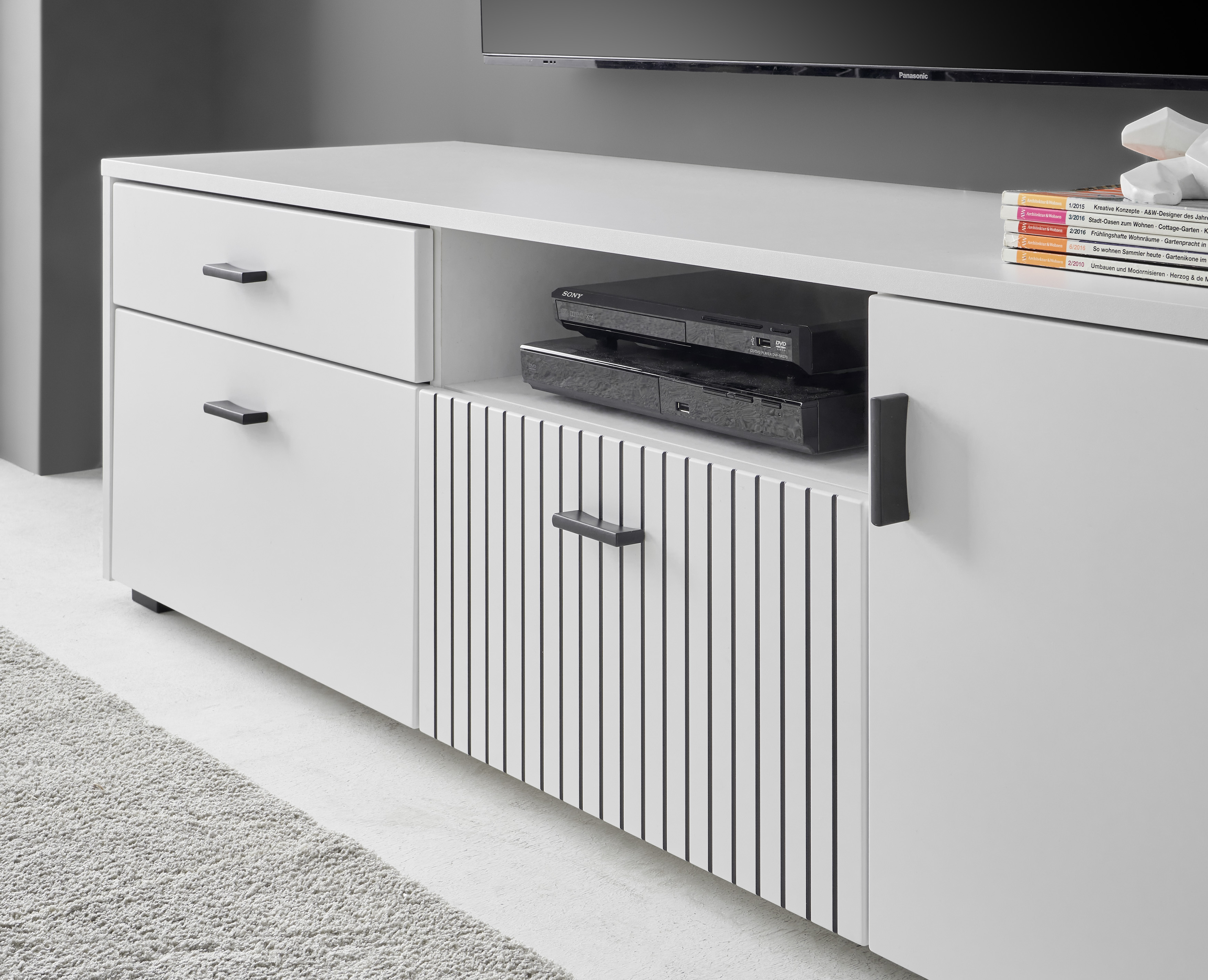 | Ausstattung Kommoden Phono Büro Regal: | Abattant(s), Casiers ouverts, Portes, Tiroirs | ||