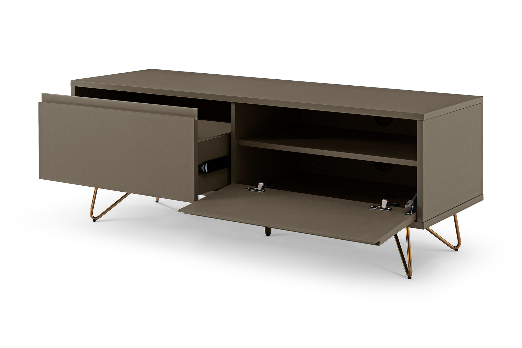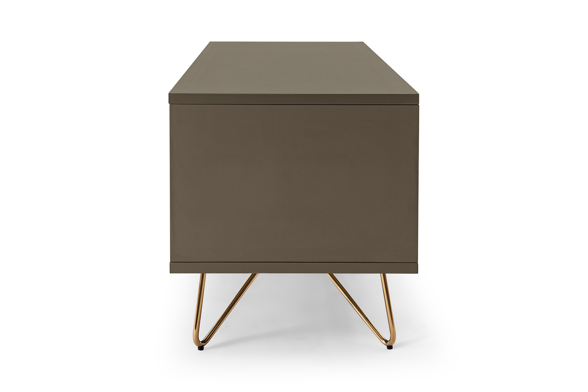 Ce meuble TV au design scandinave attirera tous les regards dans votre salon. La combinaison entre teintes sobres et pieds en métal doré fait de ce banc TV un meuble très particulier. Grâce au tiroir coulissant et au casier derrière l'abattant, vous disposerez de beaucoup d'espace de rangement stylé pour les objets du quotidien. La tablette dans le compartiment de rangement peut être retirée si nécessaire. Le design scandinave moderne de ce banc TV sera toujours tendance et se combinera à merveille avec votre ameublement déjà existant.