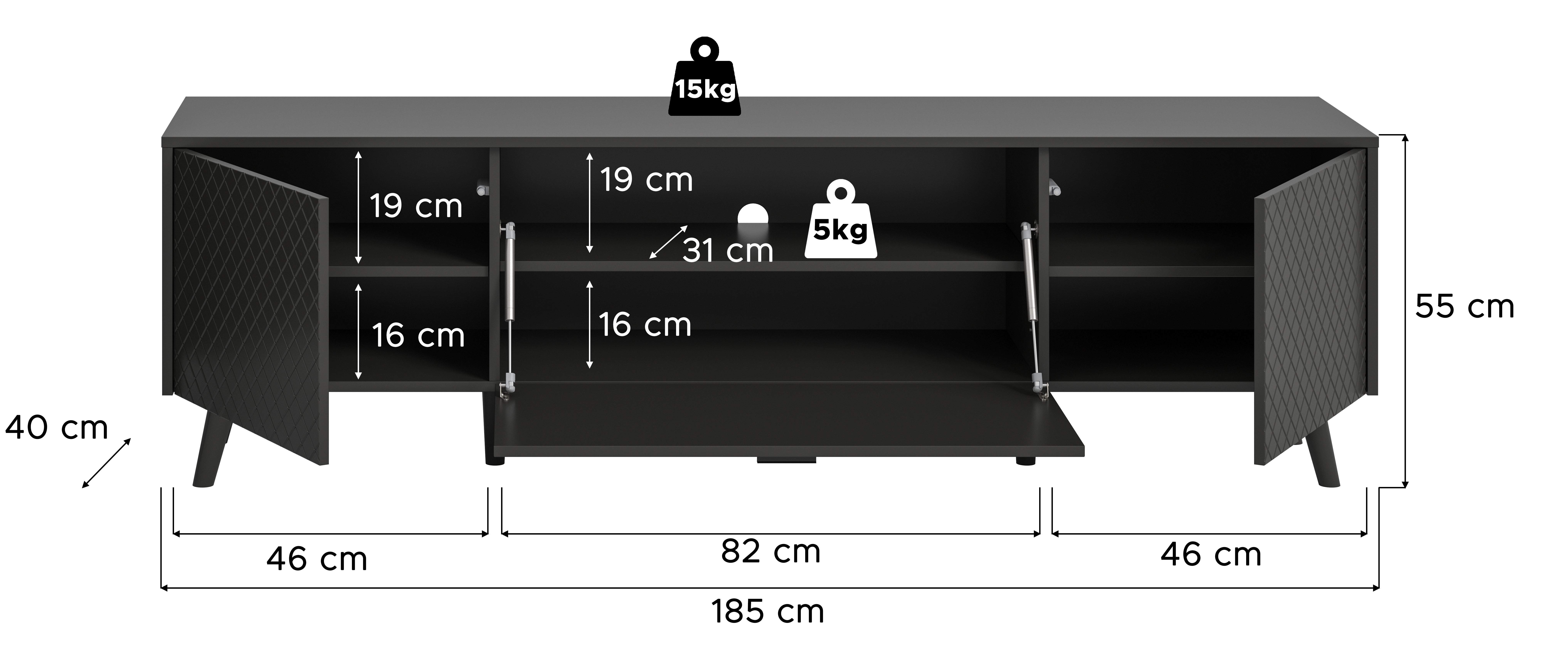 Dimensions : | L/H/P env. 185/55/40 cm |