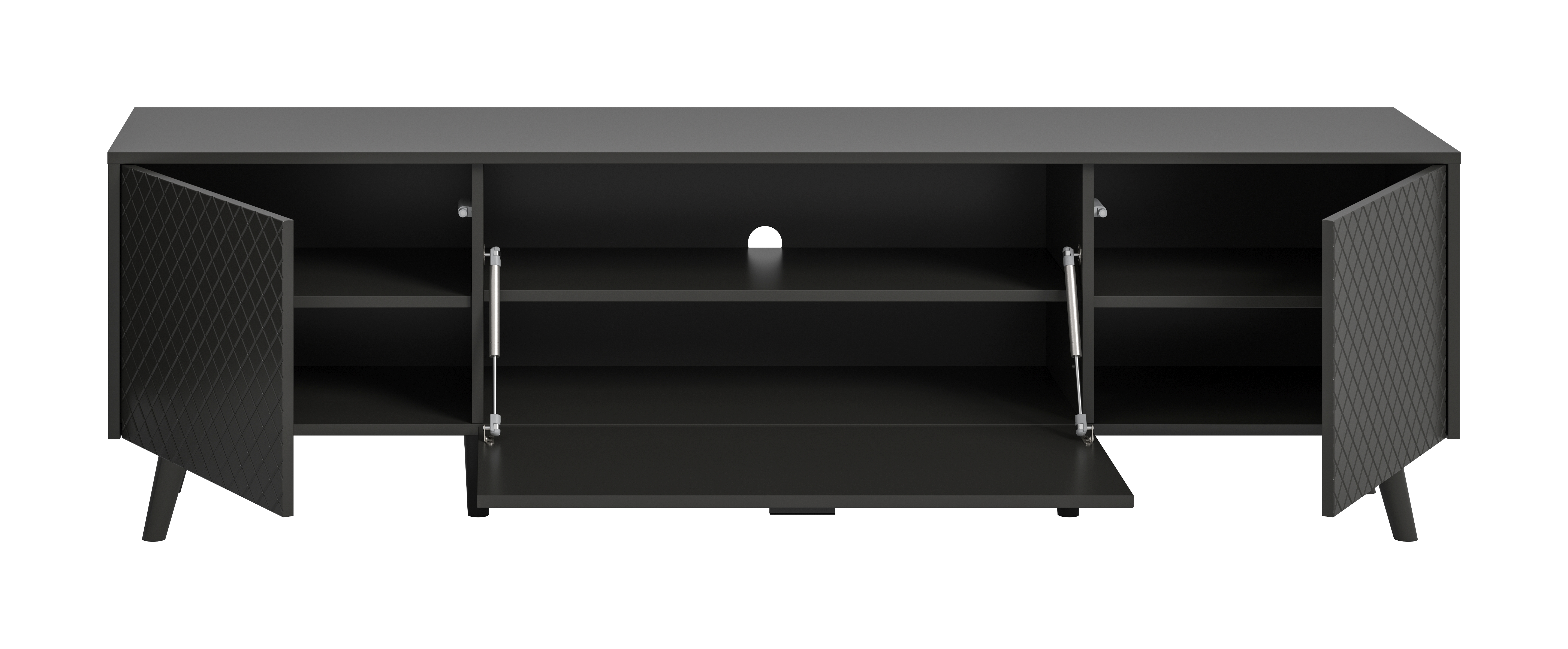 Découvrez le banc TV parfait pour votre salon ! Avec ses dimensions généreuses (185x55x40 cm), ce meuble se compose de deux portes, d’un abattant et de six compartiments au total. Les trois tablettes amovibles et réglables en hauteur offrent une utilisation flexible adaptée à vos besoins. Sa façade en MDF de qualité avec motif rainuré en forme de losanges allie design tendance et fonctionnalité. Idéal pour accueillir vos équipements TV et éléments de décoration, ce meuble apportera une touche chaleureuse et élégante à votre salon.