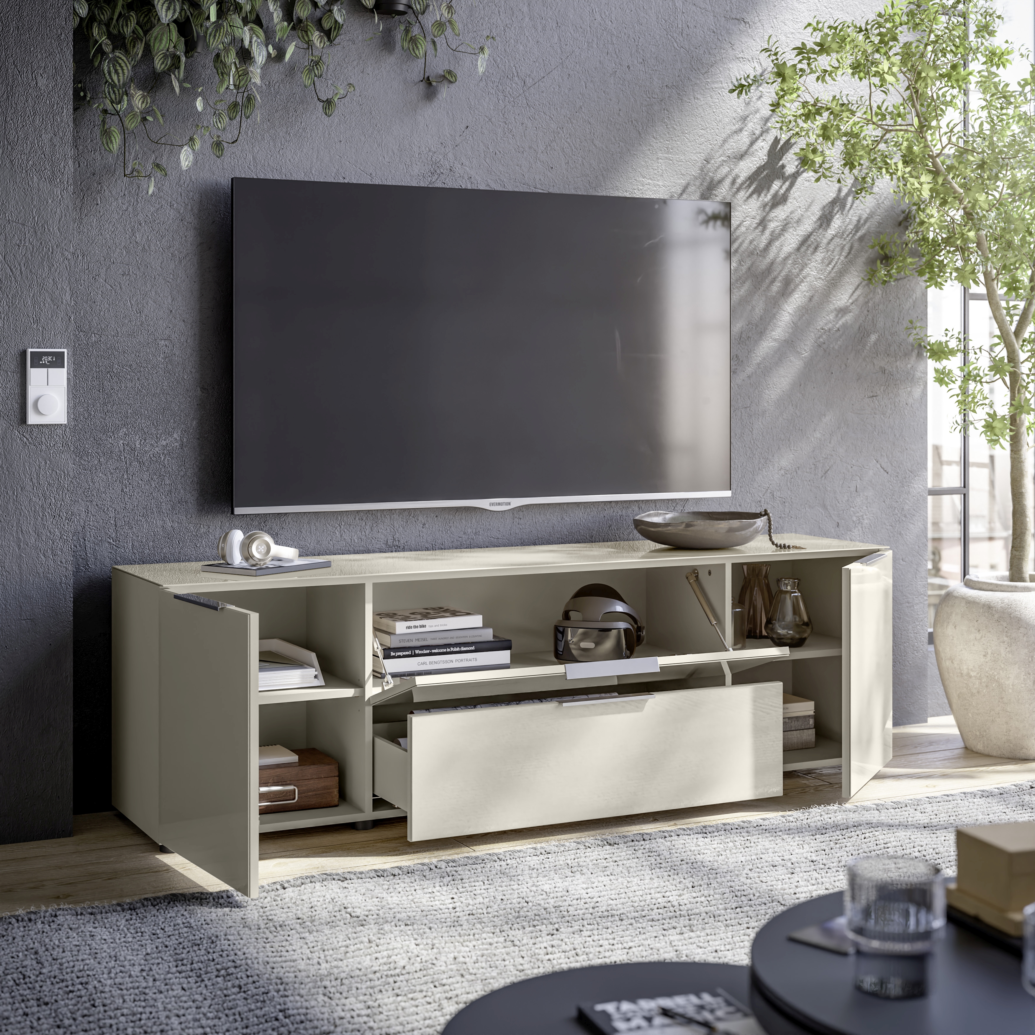 Caisson : ton cachemire, panneaux de particules surfacés et mélaminés (PPSM), tablette en verre lisse