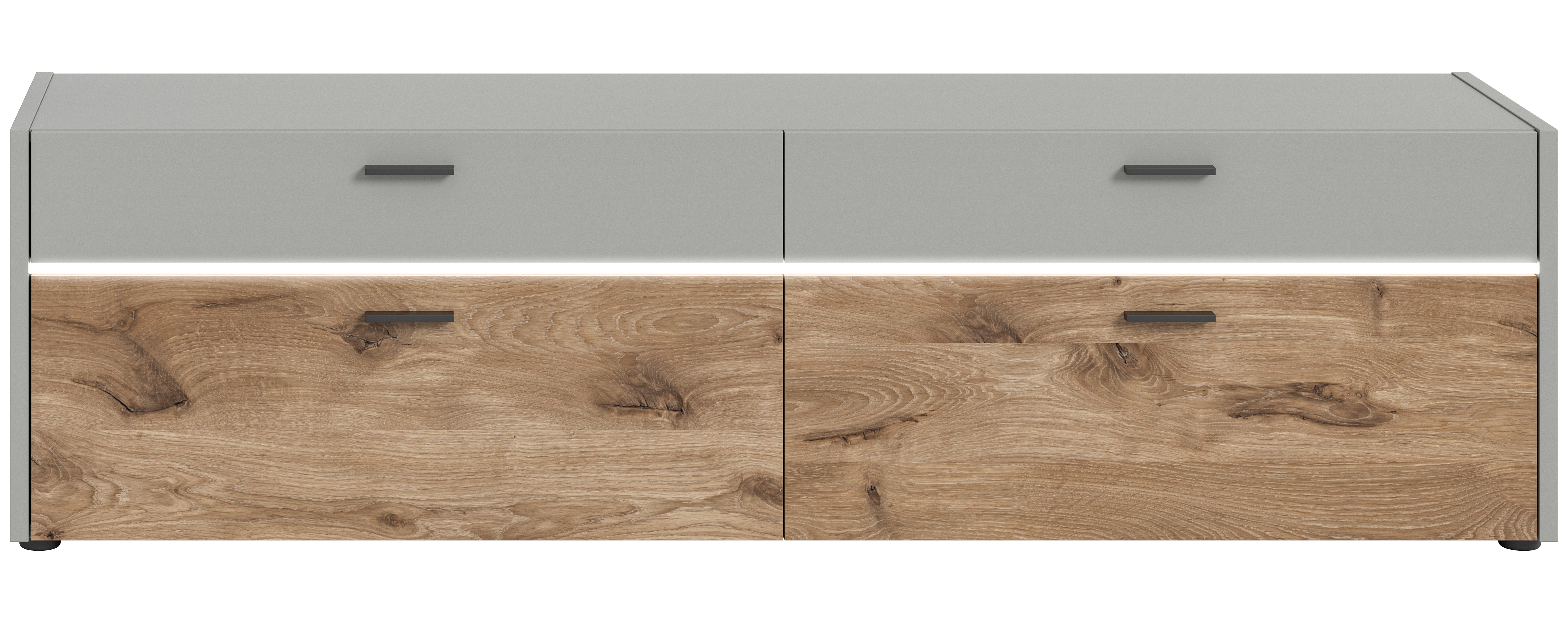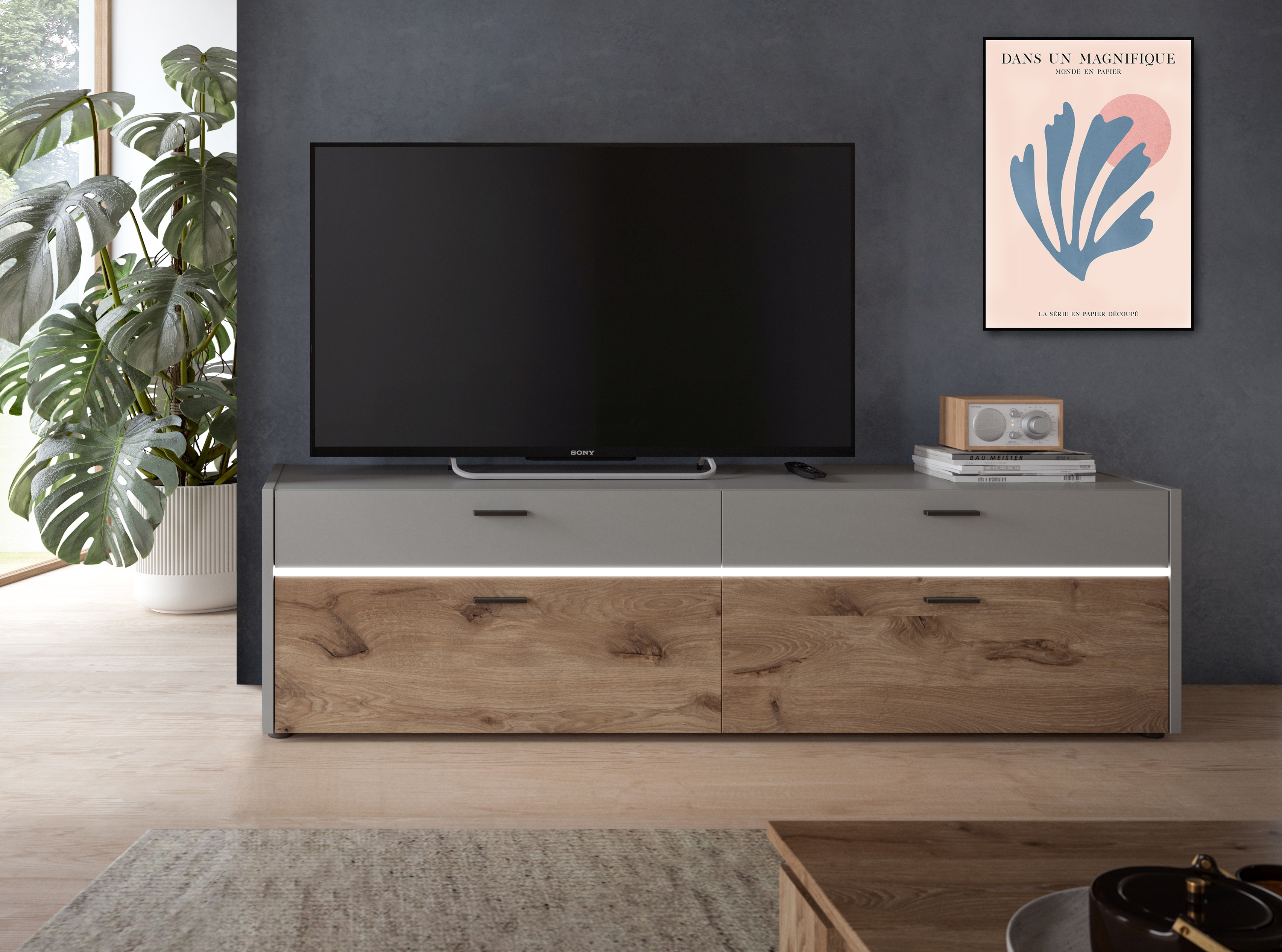 Notre banc TV (dimensions 185x51x43 cm) se caractérise par un élégant décor ton gris clair ; il complètera parfaitement votre séjour grâce à son joli design et son côté pratique. L'éclairage de façade dimmable, pouvant être contrôlé à l'aide d'une télécommande, baignera votre pièce dans une luminosité agréable. Grâce à ses chants ABS robustes, ce meuble promet longévité et stabilité. Découvrez dès maintenant ce banc TV de qualité pour aménager votre salon de façon élégante.
