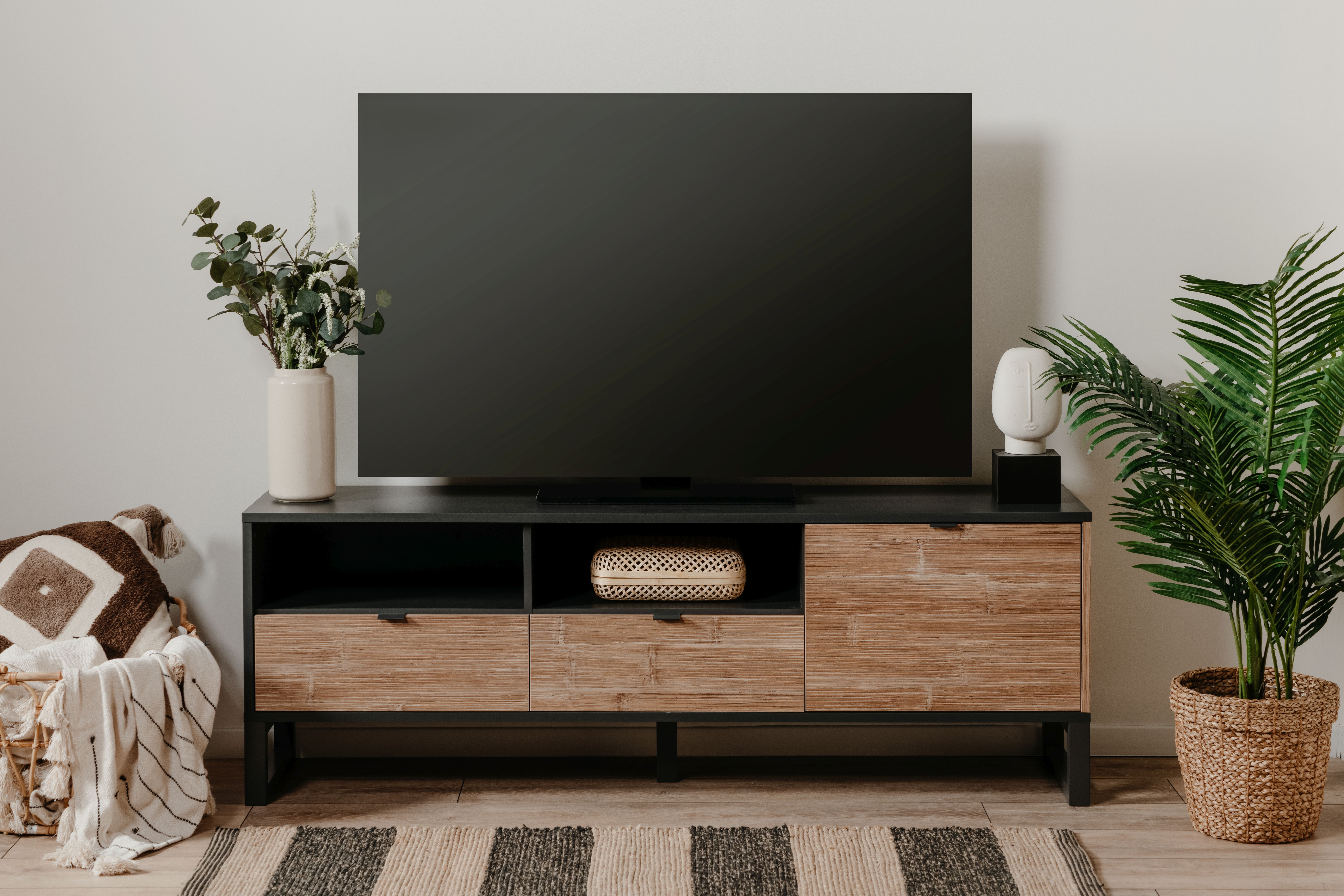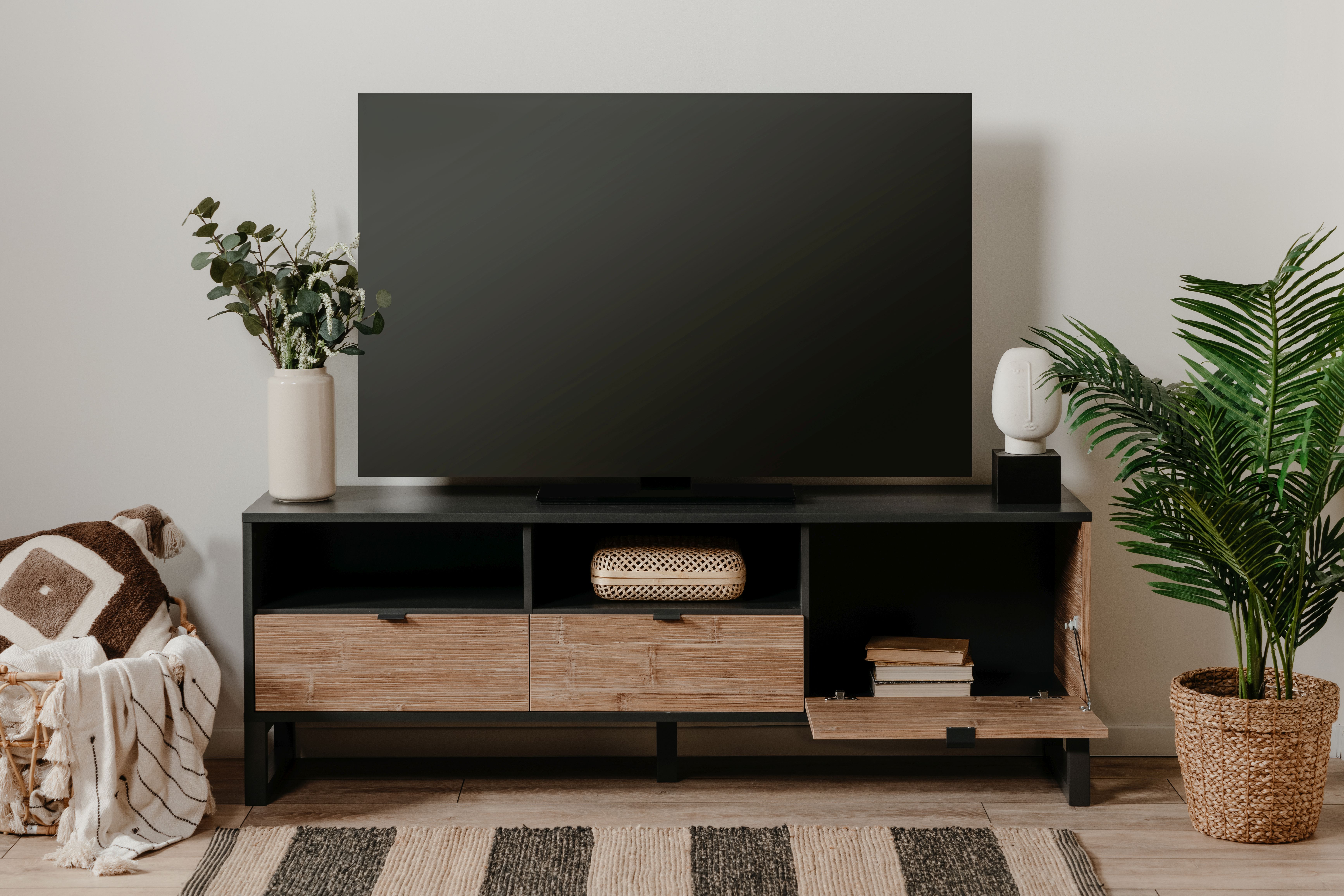 décor bambou et MDF (panneaux de fibres de bois de densité moyenne) ton anthracite