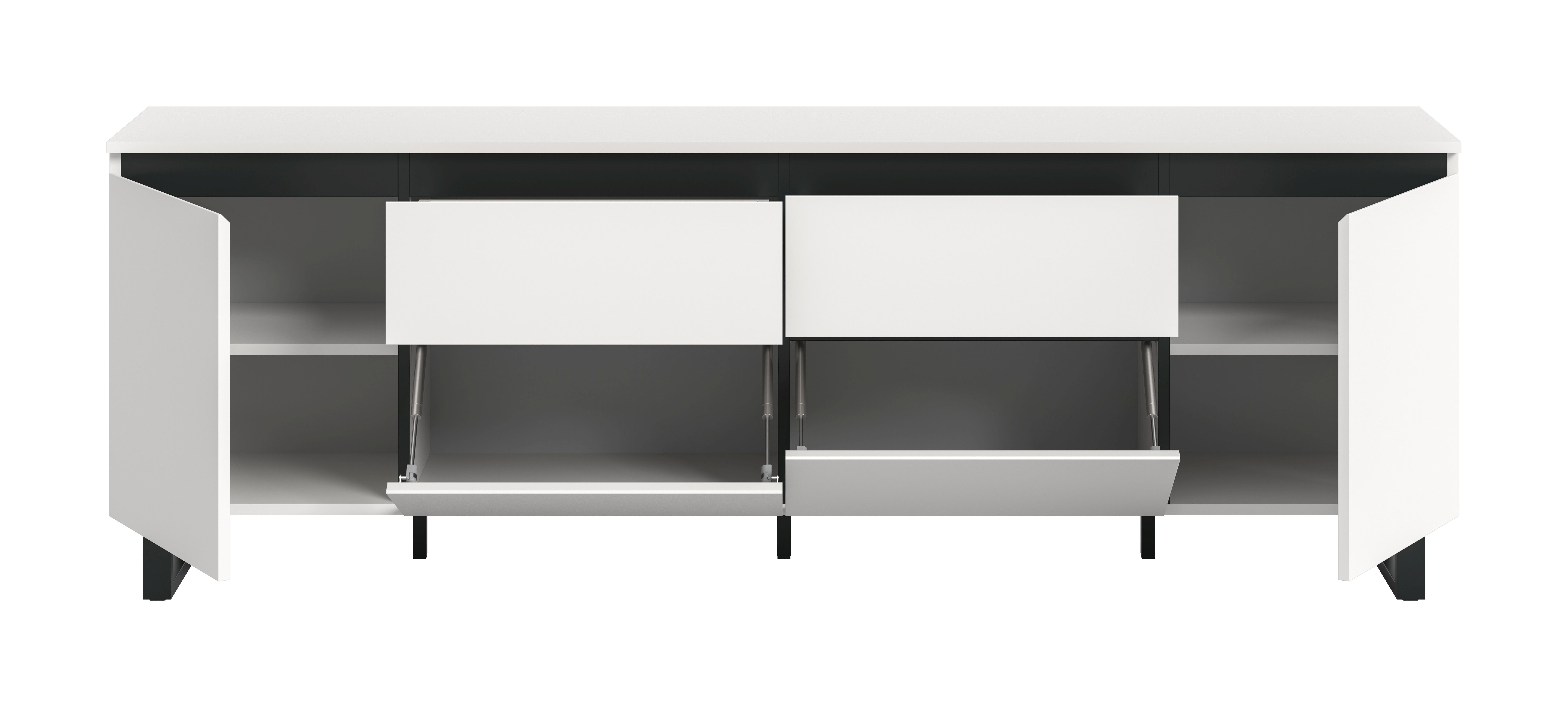 Ce banc TV en décor blanc (dimensions : L/H/P : 188 x 65 x 36 cm) offre un vaste espace de rangement avec deux portes, deux tablettes amovibles réglables en hauteur, six compartiments, deux abattants et deux tiroirs : la solution idéale pour vos appareils multimédias, livres et accessoires. Sa surface soigneusement travaillée et facile d’entretien lui confère un look moderne et élégant. Ce banc TV est parfait pour faire régner l’ordre tout en apportant une touche stylée à votre pièce. Sa construction robuste garantit stabilité et longévité. Facile à combiner avec d’autres éléments, il constitue un complément idéal pour votre salon. Créez une ambiance à la fois pratique et harmonieuse grâce à ce banc TV élégant.